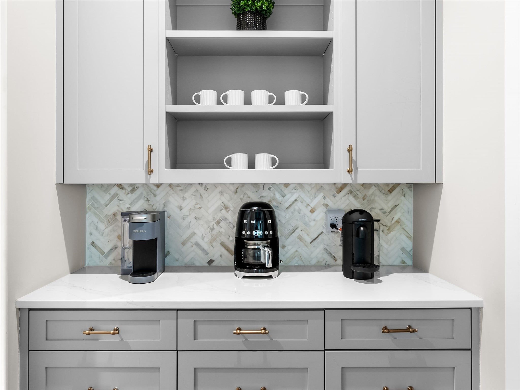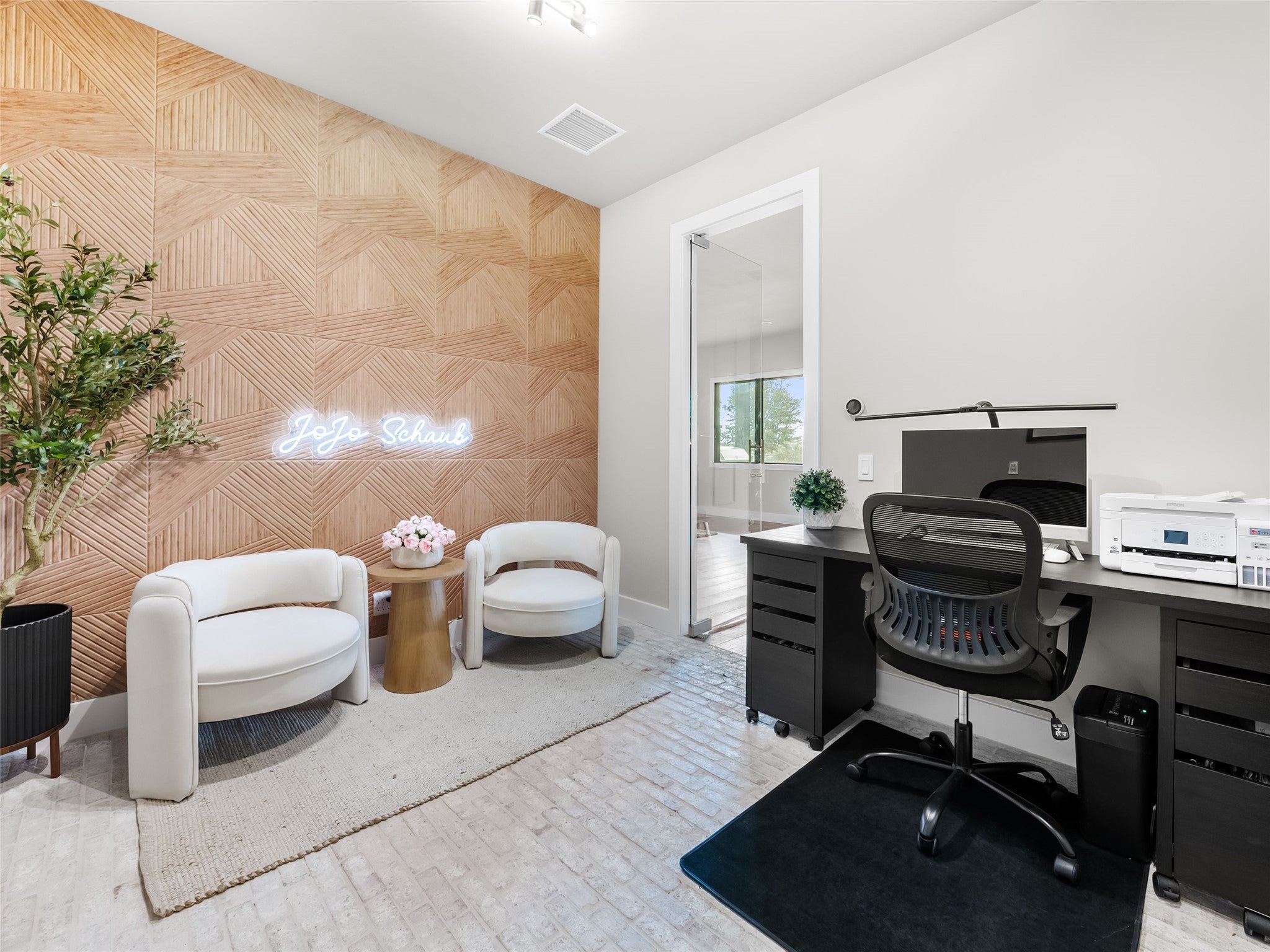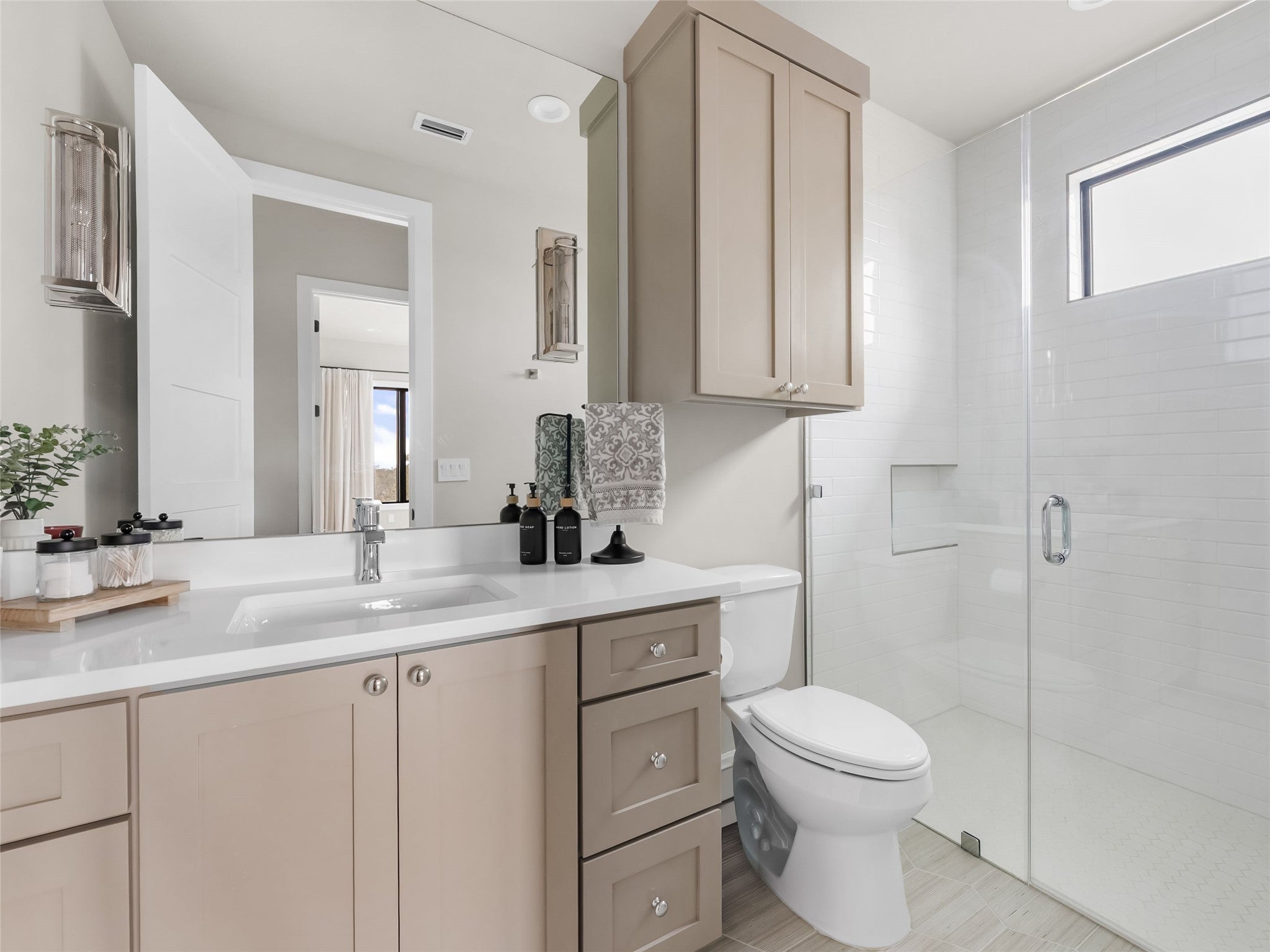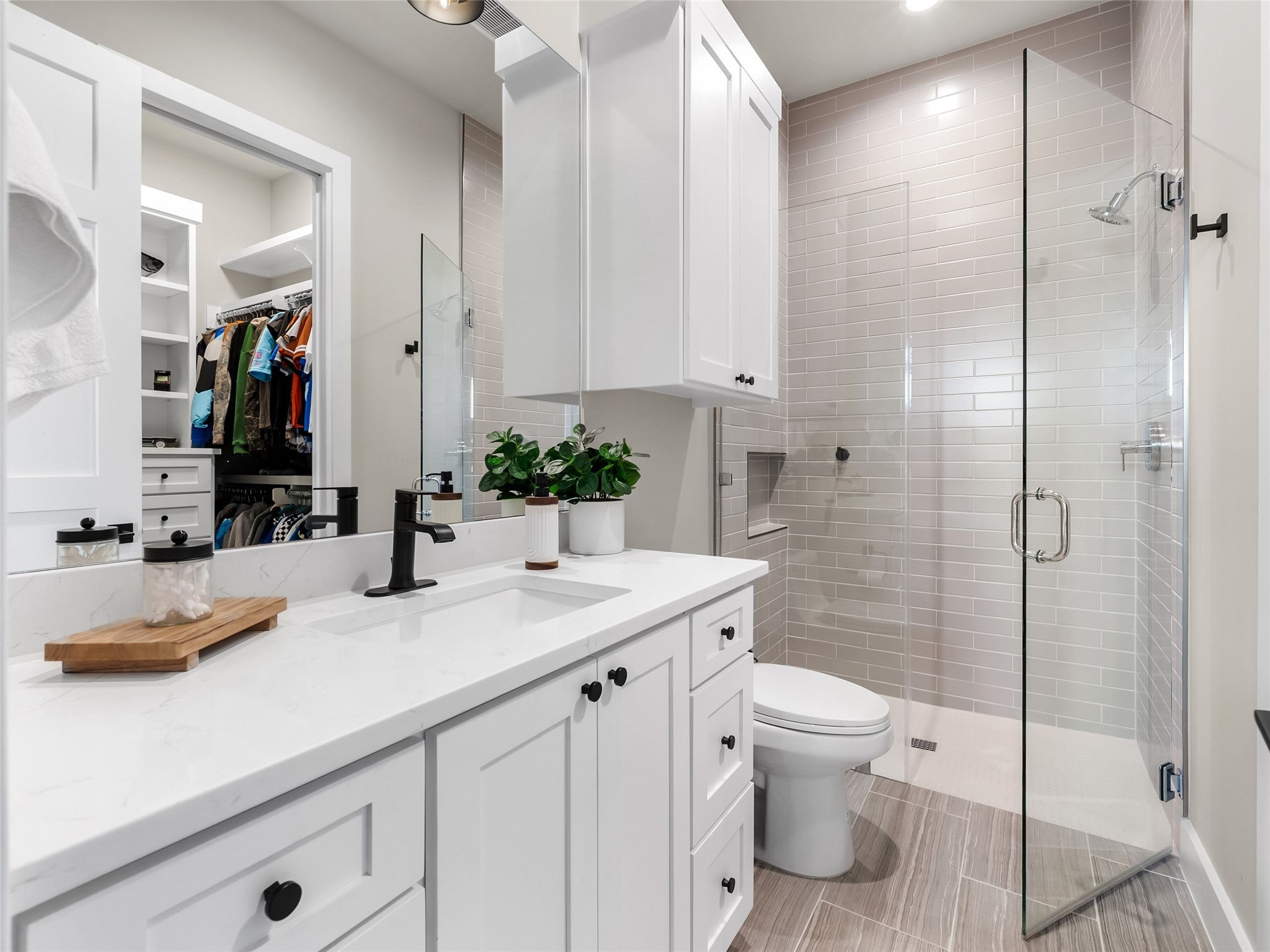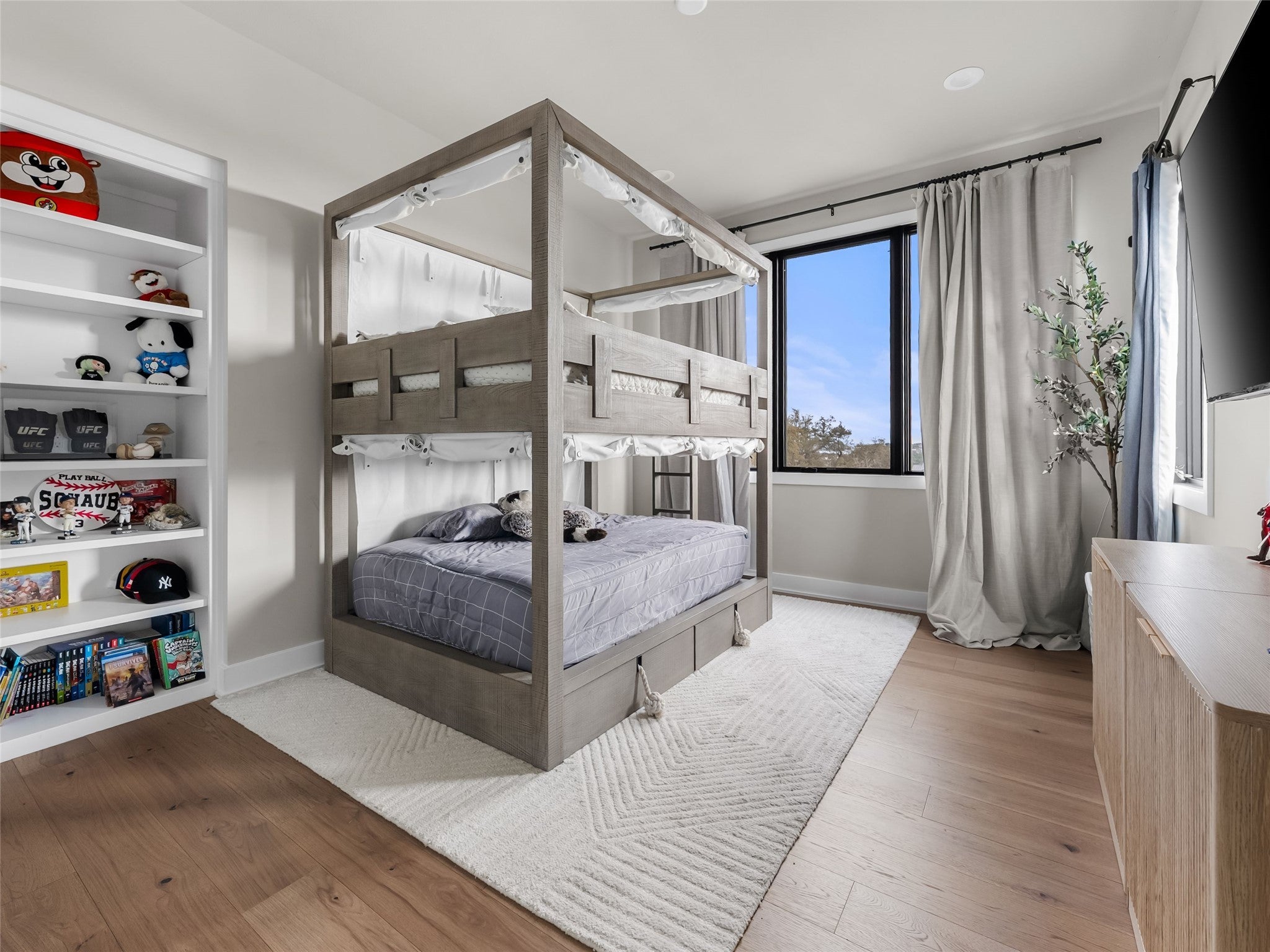 Set within The Peninsula, a gated enclave of Rough Hollow, The Bliss is a custom 2021 residence that balances refined design with effortless livability. Positioned on just under an acre in one of Lakeway’s most desirable communities, this 5-bedroom, 5,600+ square foot home was thoughtfully designed for both elevated entertaining and everyday living. Soaring ceilings with exposed wood trusses anchor the main living space, while a dramatic floor-to-ceiling stone fireplace creates a striking focal point. French oak floors, custom tile work, and expansive walls of windows fill the interiors with natural light, creating a clean and timeless aesthetic. The kitchen is both beautiful and functional, featuring Thermador stainless steel appliances, double ovens, quartz surfaces, and a generous eat-in island designed for gathering. A butler’s pantry enhances flow and makes entertaining seamless. Privately positioned on the main level, the primary suite serves as a true retreat, with large windows and a spa-inspired bath complete with a soaking tub, oversized walk-in shower, dual vanities, and spacious closets. Also on the main level are two dedicated office spaces, a guest suite, and an additional living area, offering exceptional flexibility. Upstairs, secondary bedrooms feature en-suite baths alongside an expansive additional living space. Outdoors, a Millennium pool anchors the private backyard, complemented by covered outdoor living and a fireplace, creating a peaceful setting for year-round enjoyment. Residents enjoy Rough Hollow’s resort-caliber amenities, including a marina on Lake Travis, pools, fitness facilities, trails, and parks—offering a lifestyle that is both elevated and effortless.