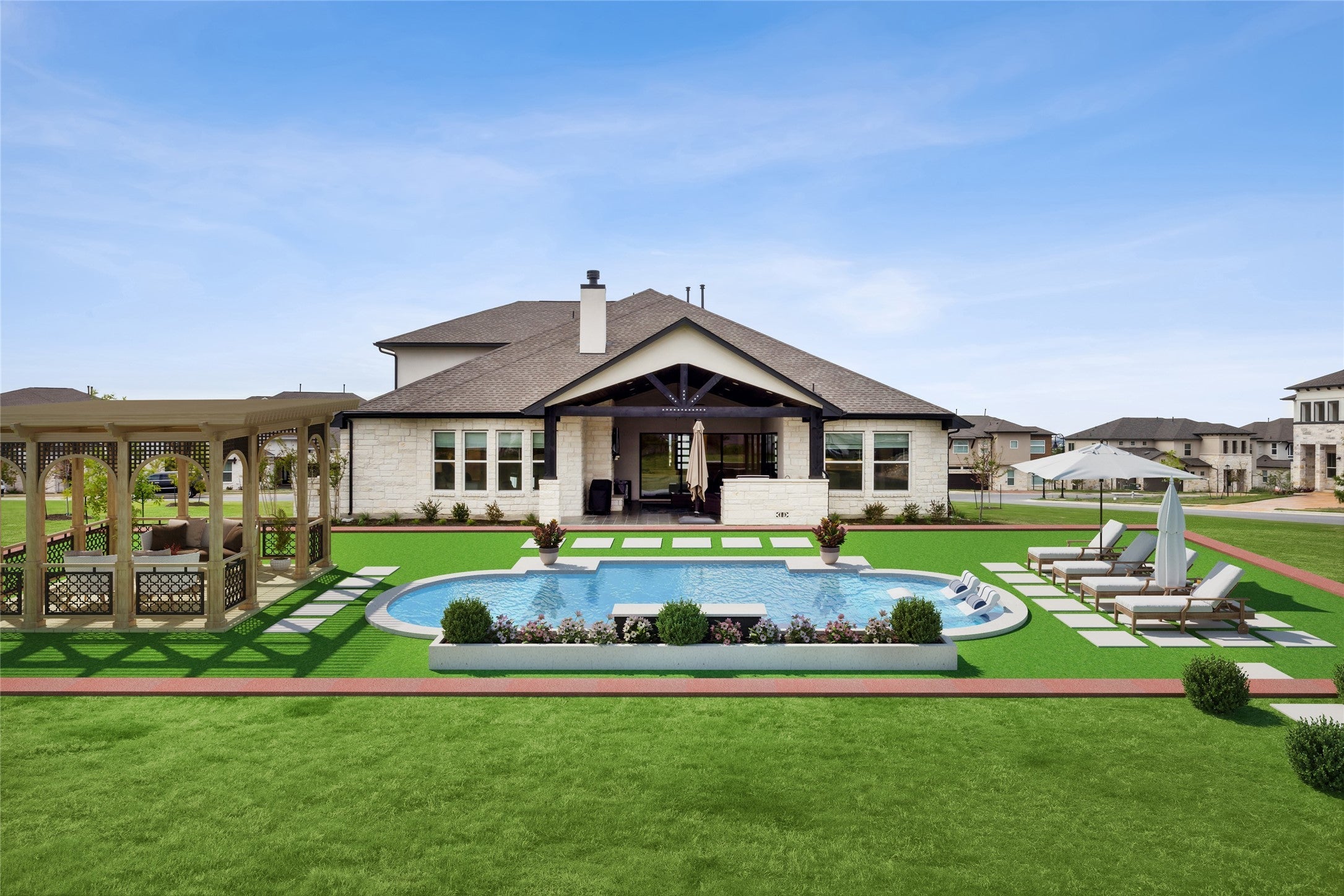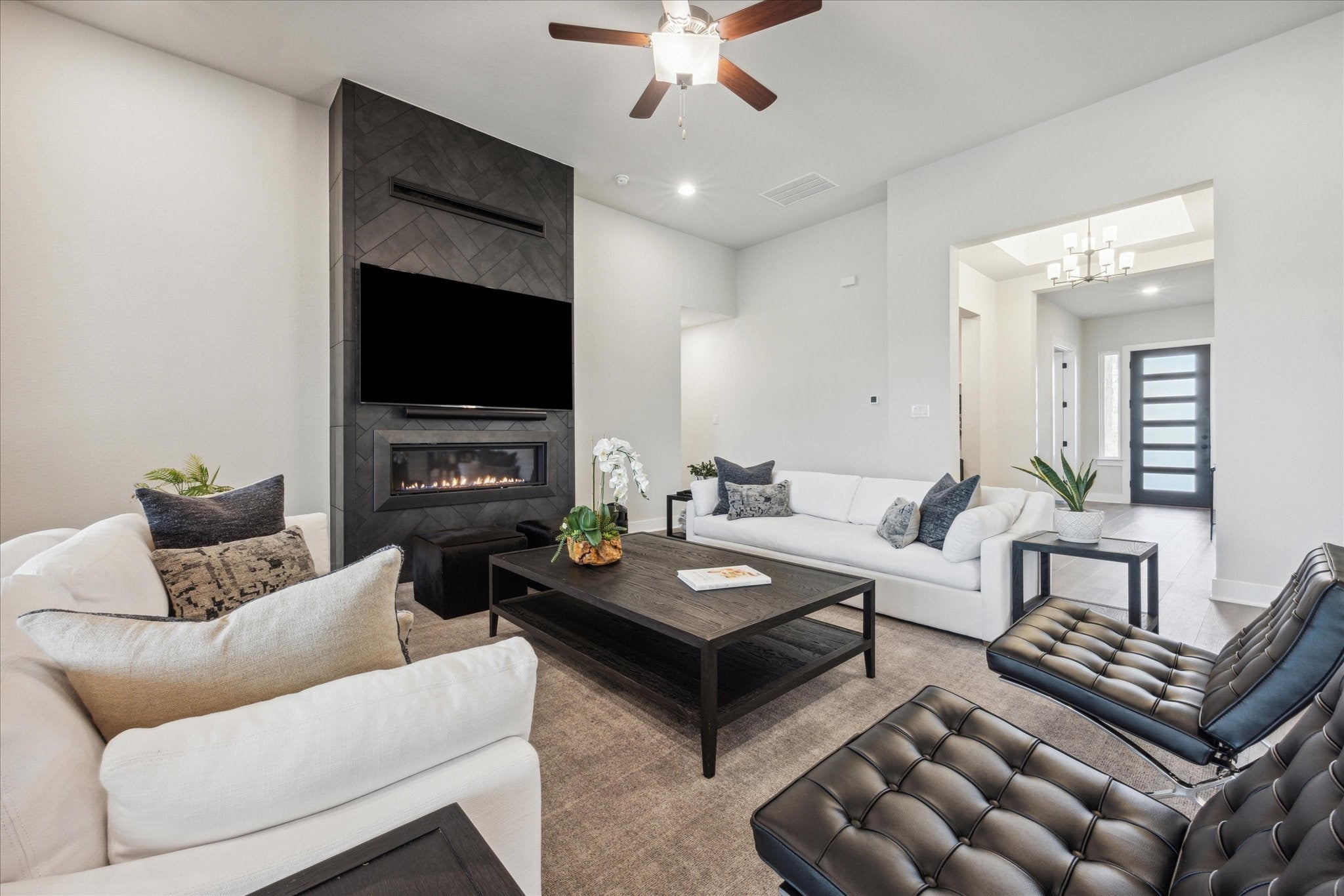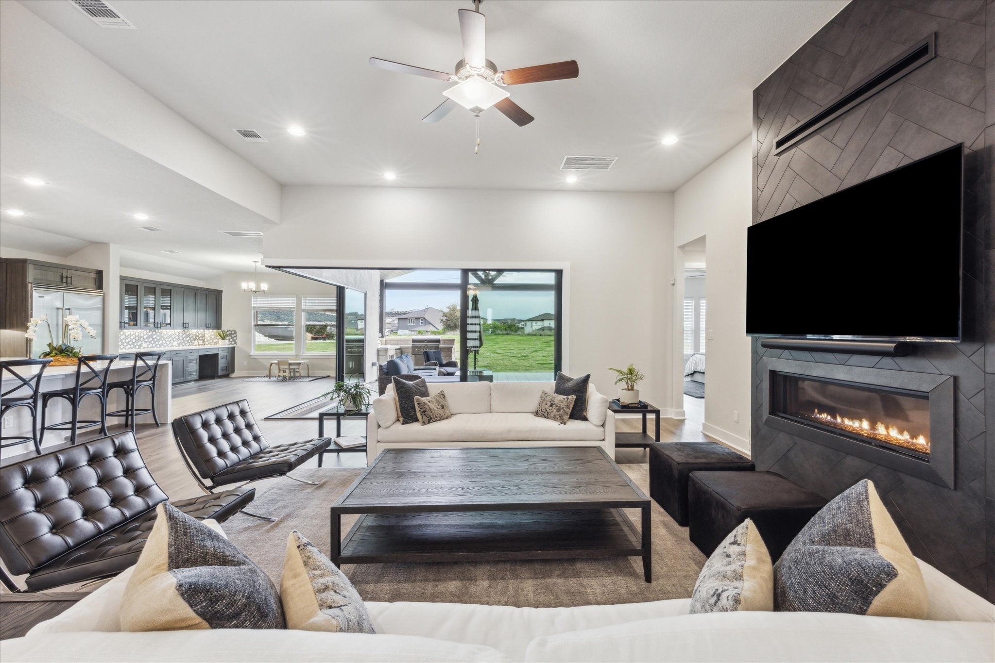 Luxury Executive Home Nestled in the sought-after Rough Hollow community lies a rare gem – a newer build of a single-family home, standing proudly on 0.75 acres. As you step inside, you're greeted by an expansive, light-filled space, boasting soaring ceilings and double sliders that beckon you towards the inviting covered patio, complete with a cozy fireplace, creating the ideal setting for hosting gatherings and enjoying the outdoors. The heart of this home, the gourmet kitchen, has been extended to provide ample room for culinary creativity, adorned with sleek waterfall counters that add a touch of sophistication. With the primary bedroom conveniently located on the main level, this home offers both comfort and practicality. Indulge in the ultimate spa-like experience within the confines of the primary suite, offering a tranquil retreat from the hustle and bustle of daily life. With a total of 5 bedrooms, 4.5 baths, and additional bonus and theater rooms upstairs, there's no shortage of space for relaxation or entertainment. The 3 car garage, featuring epoxy floors and clever storage solutions including ceiling racks, ensures that both your vehicles and belongings are well taken care of. Moreover, with insulation and temperature control, it provides a comfortable environment year-round. Every corner of this home exudes quality and craftsmanship, with upgrades that must be seen to be truly appreciated. It's a testament to the meticulous care and attention poured into creating a lifestyle that's as luxurious as it is functional. The lot is so large you can add a pool and a sport court. A must see!