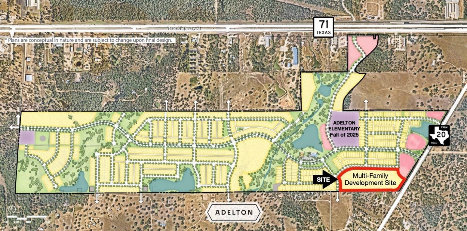Located in the Adelton master-planned community in Bastrop, Texas, where there are approvals for over 50 acres of parkland, a robust trail system and 150,000 sf of commercial space within. With frontage along three roads, this approx. 14.252 acre tract is an ideal Multi-Family Development Site only minutes to downtown Bastrop and approximately 30 minutes to downtown Austin. Utilities: Water and Wastewater – West Bastrop Village MUD, Electricity – Bluebonnet Electric, Gas – CenterPoint Energy, Internet – AT&T High-Speed Fiber at 1 GIG speed. No portion of the Property lies within the FEMA 100-year floodplain. If you're looking for a prime multi-family site in a growing, amenity-rich community, this one is worth a closer look!