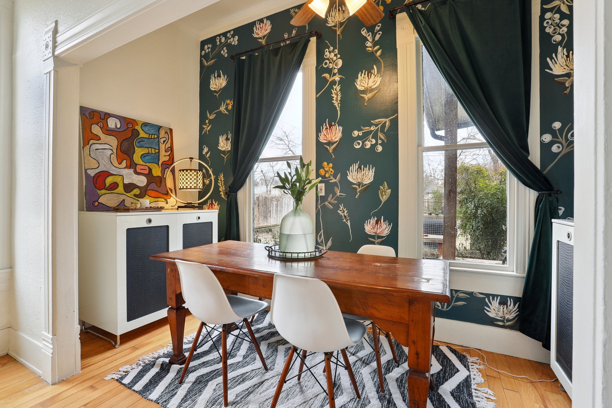 Lovingly maintained Victorian home just steps away from Main Street and a leisurely 5-minute stroll to Elgin’s recently revitalized downtown. While the home features elements of the Victorian era style, a generous wraparound porch, high ceilings, grand staircase, ornate moldings and railings, bay windows, heart pine flooring, a clawfoot tub, it also has some tasteful, modern and artistic updates. A fine example of respecting the history of the building but not failing to be current in style either. There are two dining rooms, a breakfast nook and a formal dining area. Two living rooms, one at the front of the home for entertaining guests and another in the back of the house that functions as a den. Fully fenced in yard, with a garden and shed. The wrap around porch is used year-round and is envied by the neighborhood.