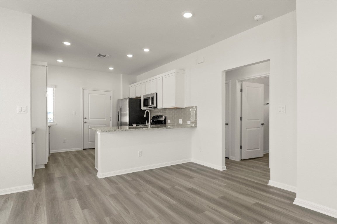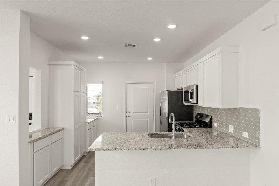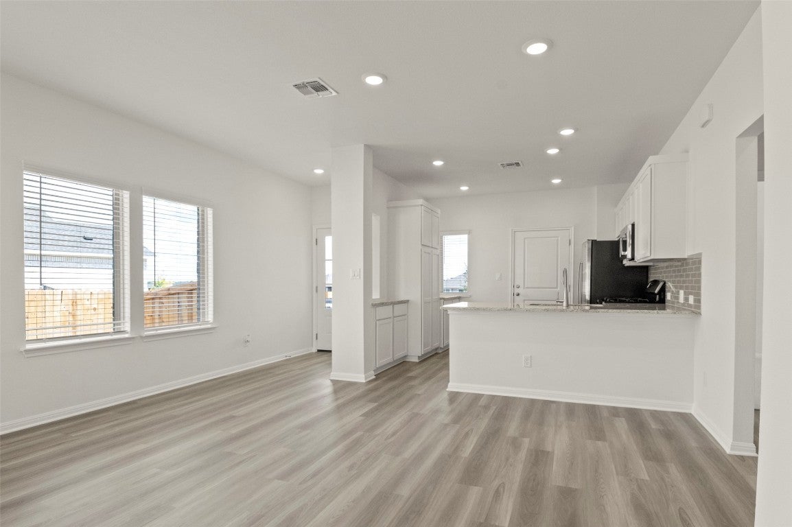 MLS# 7028583 - Built by Pacesetter Homes - Ready Now! ~ Step into this beautifully designed 3-bedroom, 2-bath home where comfort and style come together in an inviting open-concept floorplan. The kitchen and living areas are filled with abundant natural light and feature luxury vinyl plank flooring, creating a bright and seamless space ideal for both entertaining and everyday living. The kitchen is a standout with upgraded white cabinetry, stylish backsplash, upgraded granite countertops, and ample storage, offering both elegance and functionality for the home chef. All rooms are conveniently located on one level, with two secondary bedrooms thoughtfully positioned at the front of the home, providing separation and privacy for the spacious primary suite tucked away at the back. The primary bedroom offers a relaxing retreat complete with a generous walk-in closet and a spa-inspired bathroom featuring a double vanity and a sleek walk-in shower. Step outside to enjoy a large covered patio overlooking a spacious backyard, perfect for morning coffee, outdoor dining, or evening gatherings. With its modern finishes, smart layout, and move-in ready appeal, this home offers everything you need for comfortable and stylish living.