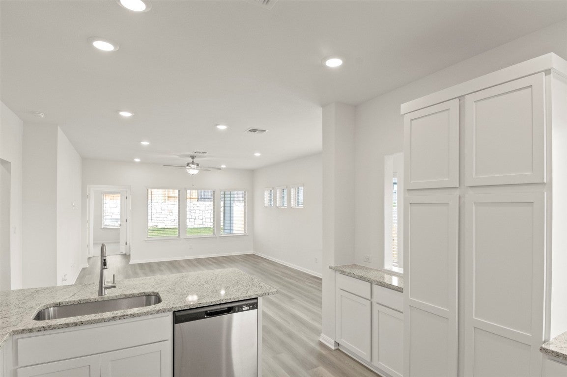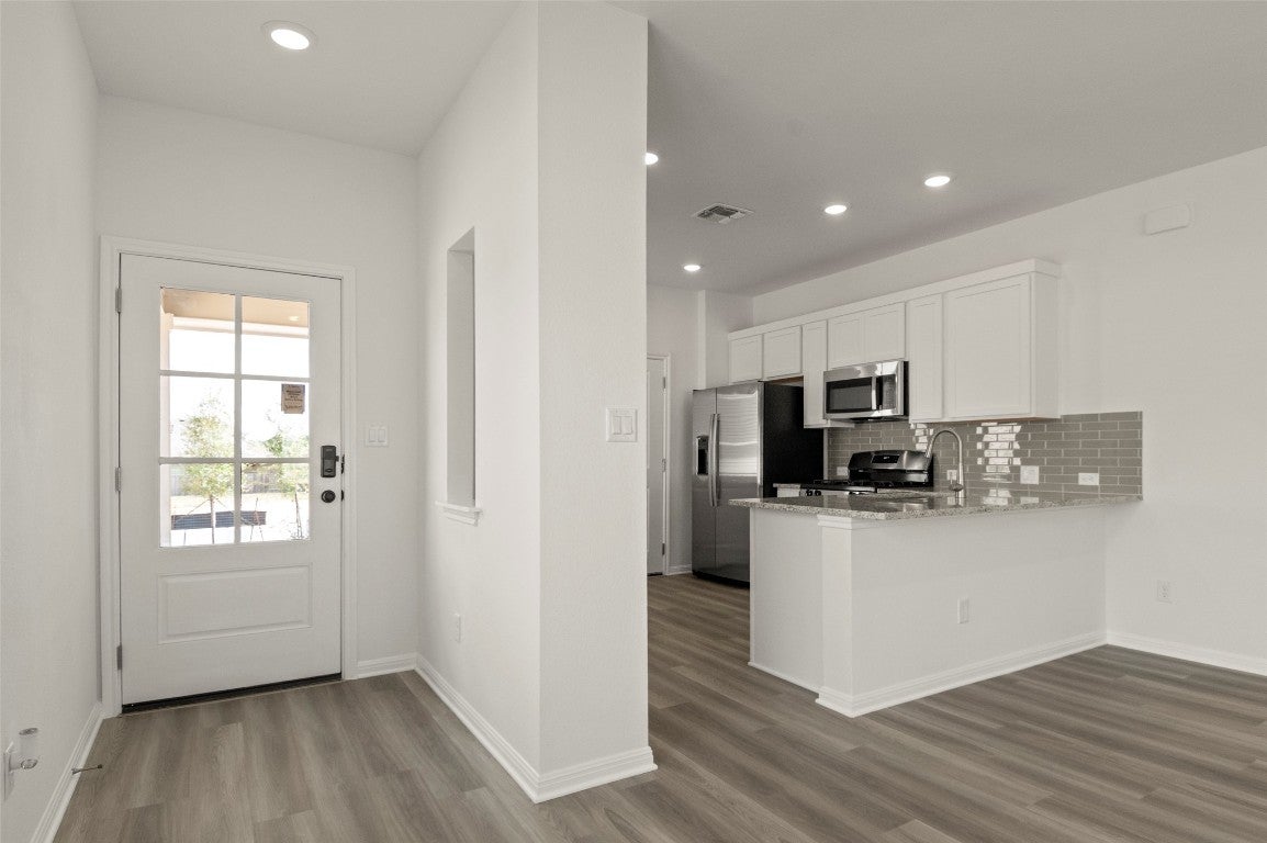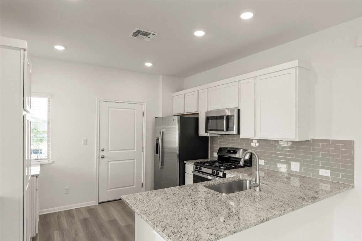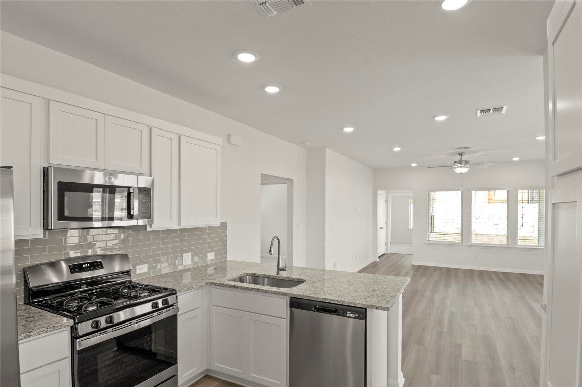 MLS# 7028583 - Built by Pacesetter Homes - Ready Now! ~ Step into this beautifully designed 3-bedroom, 2-bath home where comfort and style come together in an inviting open-concept floorplan. The kitchen and living areas are filled with abundant natural light and feature luxury vinyl plank flooring, creating a bright and seamless space ideal for both entertaining and everyday living. The kitchen is a standout with upgraded white cabinetry, stylish backsplash, upgraded granite countertops, and ample storage, offering both elegance and functionality for the home chef. All rooms are conveniently located on one level, with two secondary bedrooms thoughtfully positioned at the front of the home, providing separation and privacy for the spacious primary suite tucked away at the back. The primary bedroom offers a relaxing retreat complete with a generous walk-in closet and a spa-inspired bathroom featuring a double vanity and a sleek walk-in shower. Step outside to enjoy a large covered patio overlooking a spacious backyard, perfect for morning coffee, outdoor dining, or evening gatherings. With its modern finishes, smart layout, and move-in ready appeal, this home offers everything you need for comfortable and stylish living.