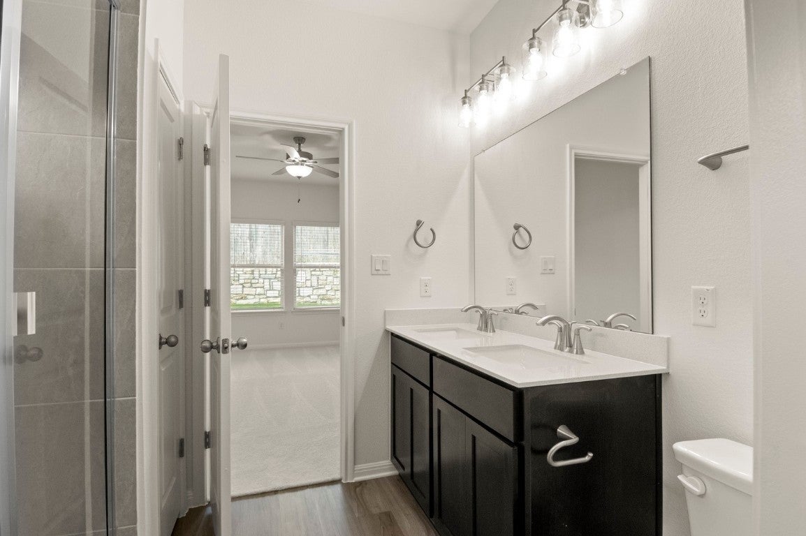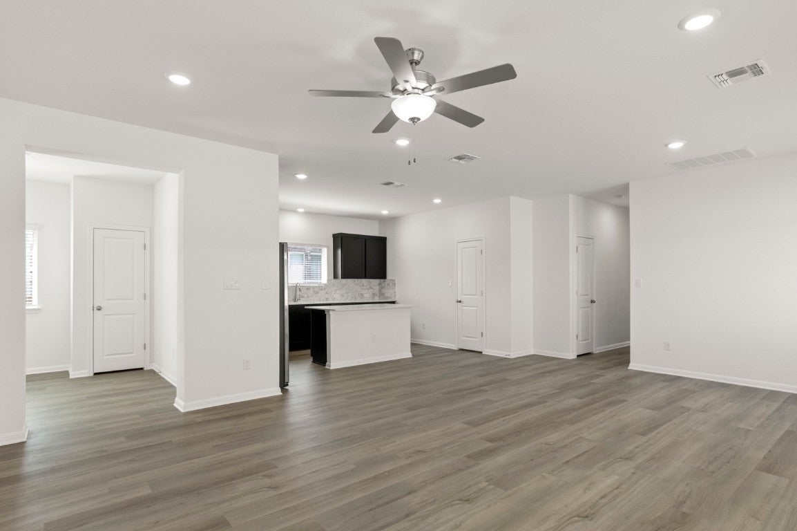 MLS# 7030647 - Built by Pacesetter Homes - Ready Now! ~ Welcome home to this inviting 3-bedroom, 2-bath residence thoughtfully designed for modern living and effortless entertaining. From the moment you arrive, the large front porch and upgraded front door set a warm, welcoming tone. Inside, the open-concept floor plan showcases spacious living and dining areas highlighted by a stunning wall of windows that floods the home with natural light. The well-appointed kitchen is a true centerpiece, featuring extensive countertop space, a large island, substantial cabinetry, and a walk-in pantry—perfect for the chef of the house and ideal for gatherings of any size. The primary suite offers a private retreat with a generous bedroom and a luxurious bathroom complete with dual vanities and a sleek walk-in shower. Two additional bedrooms provide flexibility for guests, a home office, or hobbies. Step outside to enjoy the covered back patio overlooking a large backyard accented by a beautiful stone wall, creating a serene space for relaxation or outdoor entertaining. With its thoughtful design, abundant natural light, and inviting indoor and outdoor living spaces, this home is ready to meet your lifestyle needs—don’t miss the opportunity to make it yours.