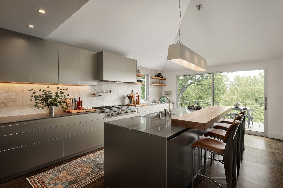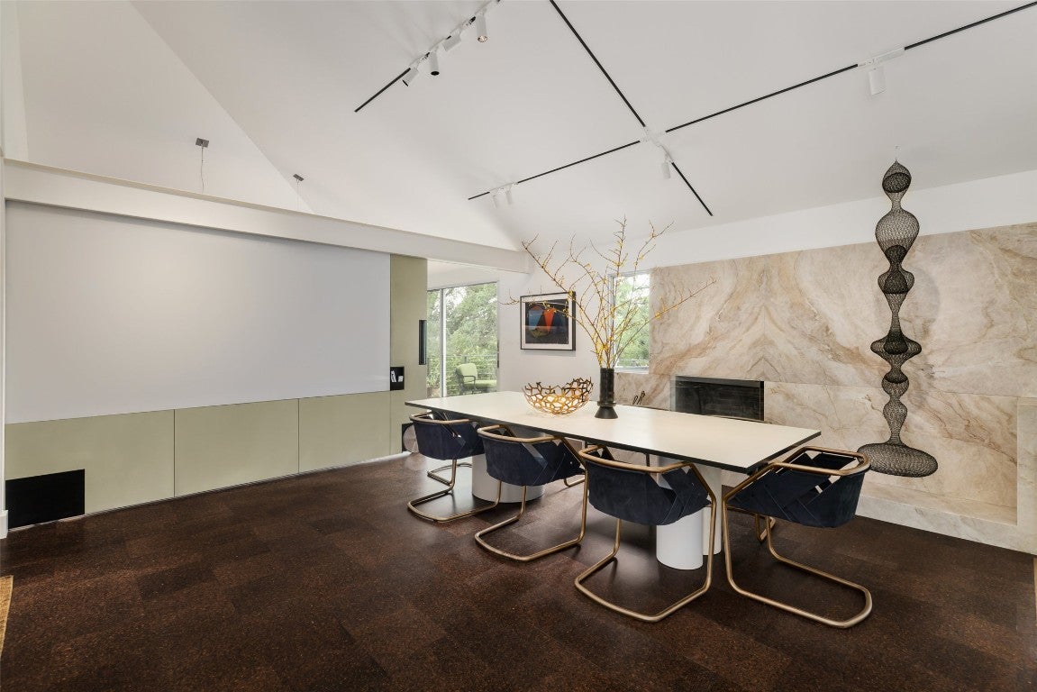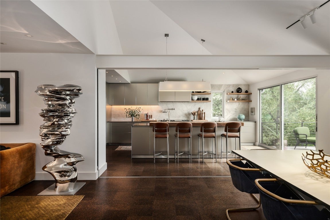 ***Rare Tarrytown Waterfront Property***Nestled in the treetops of iconic Tarrytown above a quiet Lake Austin inlet, this striking modernist residence is a masterful fusion of architecture, interior design and landscape. Hidden from the street behind a discreet facade, the home reveals its depth and complexity upon entry, unfolding into a transformative living experience. It is a retreat where intentional design, refined materials and the unique surrounding landscape converge in harmony, creating a portal into a world of tranquil beauty and artful living. The result of a meticulously orchestrated collaboration between architect Tobin Smith, landscape architect Ten Eyck, and the interior designers at Ashby Collective, this home underwent a comprehensive renovation by Dalgleish Construction that preserved the original slab and shell while reimagining every other element. The exterior was redefined with projecting balconies, a soaring double-height screened porch and a cantilevered pool and spa perched above the waterway. Just beyond, your private dock, slip, and boat await, accessible by personal tram and perfectly positioned across from serene parkland. The interior of the home reflects a cohesive vision and impeccable craftsmanship. Custom cabinetry, bespoke built-ins, and tactile richness are conceived not merely for utility, but as works of art in their own right. Designed to support modern lifestyles, the home features spaces that flow seamlessly and balance form and function, creating a flexible environment equally suited for peaceful retreat and lively gatherings. It is a timeless architectural sanctuary where every detail stands as an enduring statement of form, purpose and quiet luxury, and where the natural beauty of Lake Austin remains a constant backdrop to daily life. **Click "Virtual Tour Link" for Comprehensive List of Design Features under Documents**