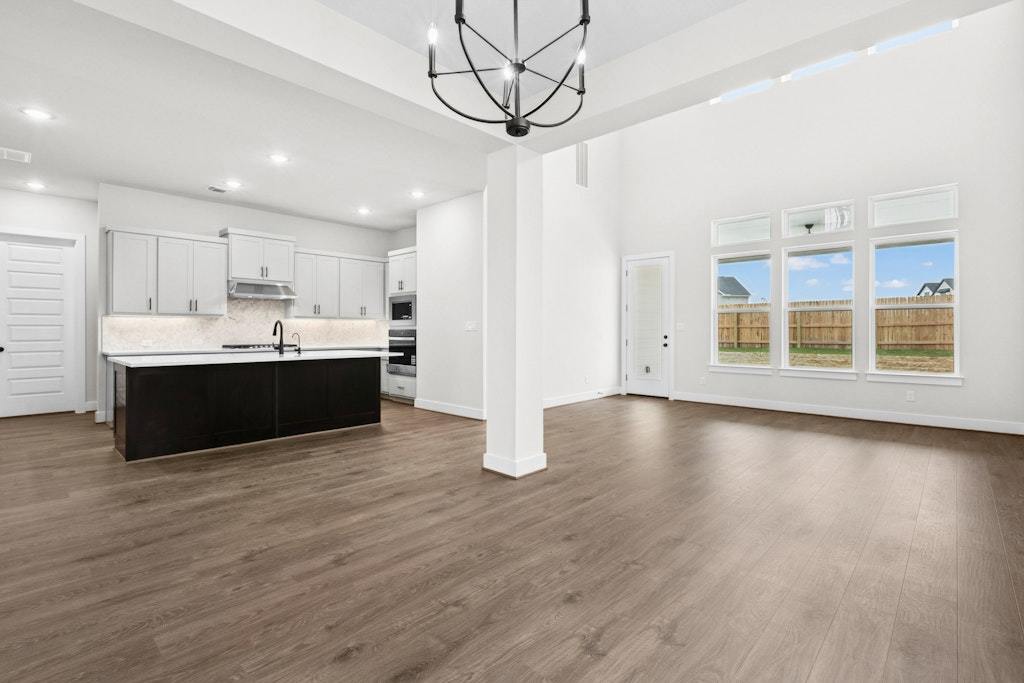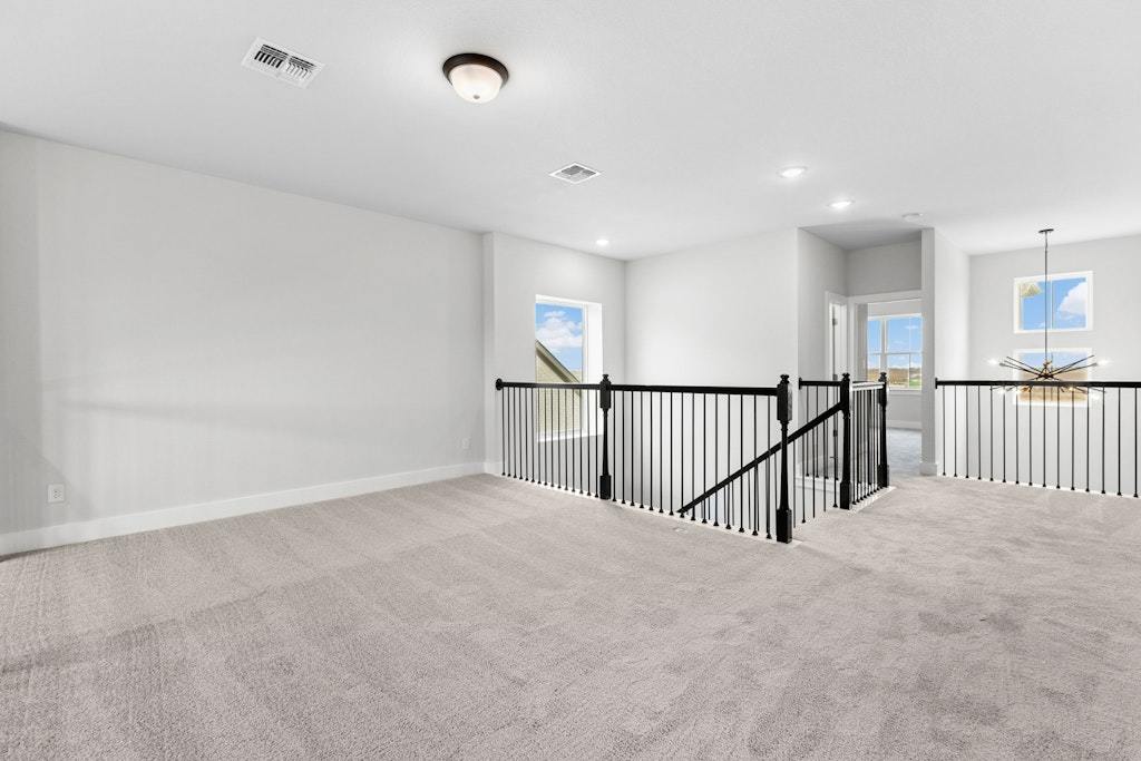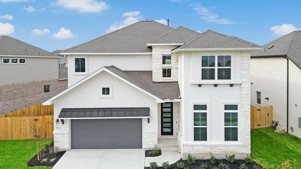 The Parmer home is a two story with approximately 3,134 sf of living space. 5 bedrooms (2 beds down) 4 bathrooms, game room, media room, covered patio, and a 2 bay garage. This home-site is approximately 8,275 sf and faces East. The spacious kitchen features built in stainless steel appliances, quartz countertops, 42" cabinets, large island, under cabinet lighting, cabinets hardware, and more. The flooring is hard surface throughout the main areas, tile in the bathrooms, and carpet in the bedrooms. Dramatic open to below family room 20' ceilings, beautiful railing at game room, and stairway. The quality construction includes; 10’ ceilings and 8’ doors downstairs, 3 sides masonry, Zip System sheathing, and much more.