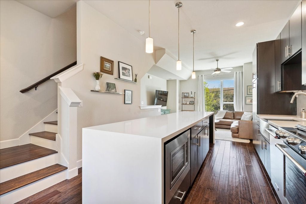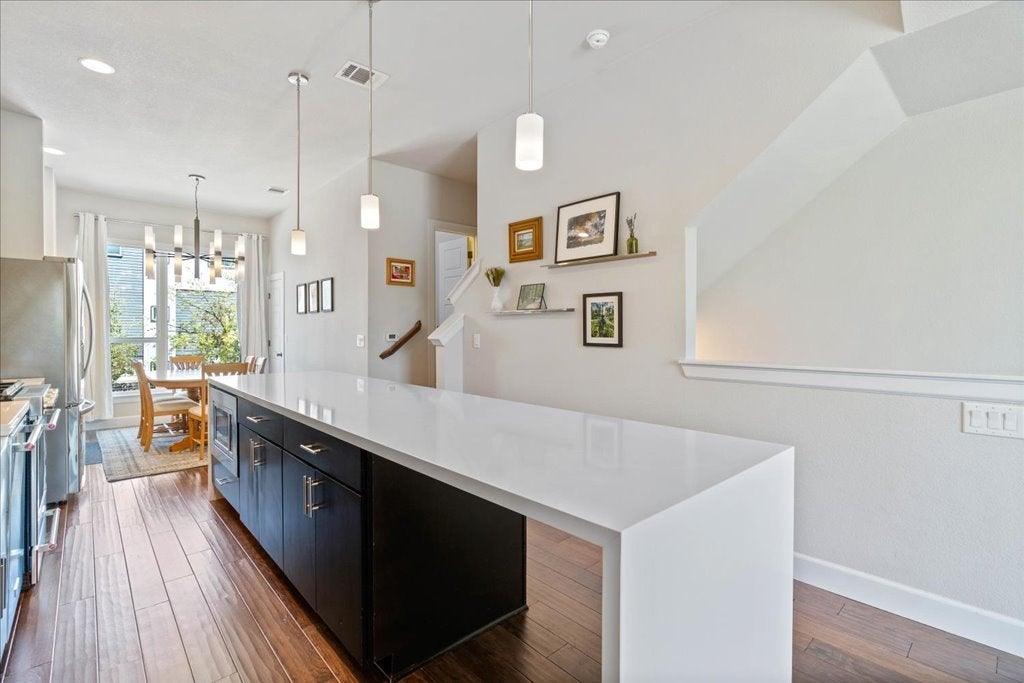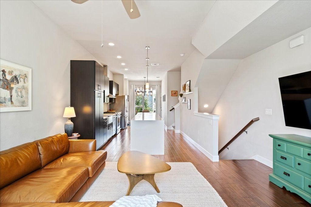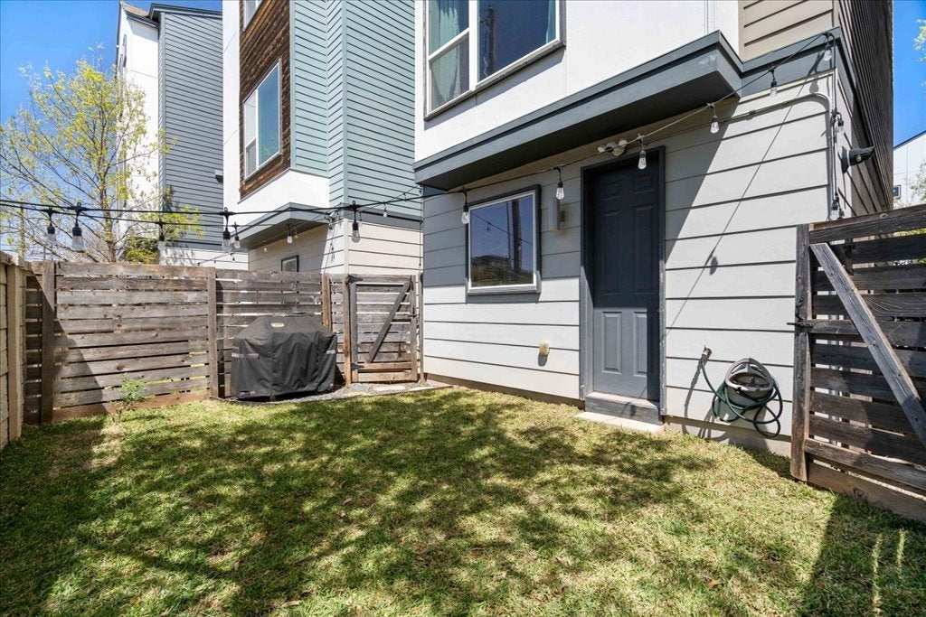 East Shore, a boutique gated community where modern convenience meets the tranquility of urban living. Located in a prime location near Lady Bird Lake, this stunning property offers unbeatable proximity to the scenic hike and bike trail with easy walking access to HEB, local food trucks, and a variety of trendy shopping and entertainment. Not to mention being less than 10 minutes to downtown and the airport! Inside, you'll discover thoughtful upgrades and top-tier amenities such as an open floor plan, custom fixtures and an expansive gourmet kitchen featuring an oversized island perfect for hosting gatherings. Modern appliances, including a new fridge and washer/dryer are accompanied by a recently replaced water heater in 2021, ensuring this home is as practical as it is beautiful. Recent updates include a new garage door, dimmable lighting, and the installation of outdoor cameras adding an extra layer of security as well as ceiling mounted garage racks offering ample storage. Automated blackout blinds grace the downstairs windows for optimal privacy, while manual blinds upstairs ensure a good night's sleep. Additionally, your private back yard is complete with brand new sod and irrigation and steps away from the community pool perfect for entertaining. East Shore is more than a residence; it's a lifestyle choice offering community warmth and city convenience in equal measure.