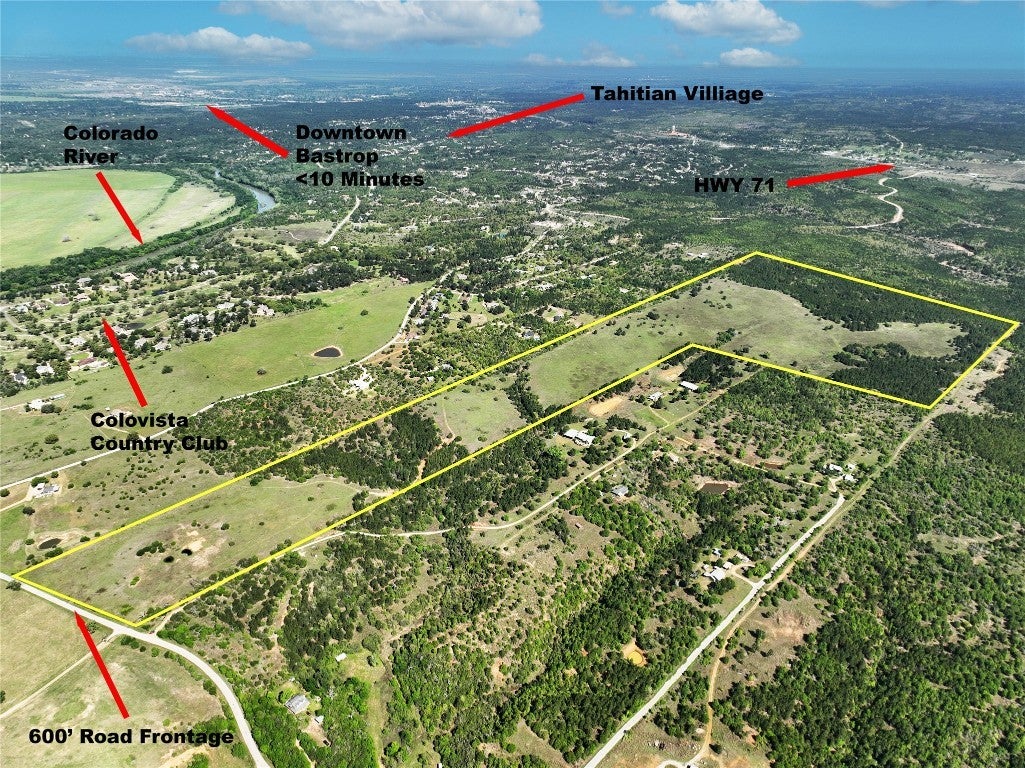 5% Down - Interest Only - Owner Financing This 142 acre tract, located just east of Tahitian Village, Pine Forest, and ColoVista Country Club, is a prime opportunity for residential development in the booming Bastrop County market. With just 5% down and interest-only owner financing available, this is an ideal chance for investors and developers looking for flexibility and favorable terms. With over 600 feet of paved frontage on Crafts Prairie Road and a 4-inch AQUA waterline already in place at the road, the property is development-ready. Rolling hills, a blend of old-growth and younger pine stands, and scattered mature oaks give the land natural texture and visual appeal. Most of the property enjoys sweeping 180 Degree views of the Colorado River Valley—an uncommon feature in the area that sets this tract apart. Its elevation and layout are ideal for a mix of 1-acre lots and larger estate tracts, with room for thoughtful design and privacy. Lot comps in nearby Tahitian Village, Pine Forest, and ColoVista Country Club range from $60K to $170K per acre, with this property’s topography and views likely commanding prices toward the upper end of that spectrum. The land is less than 10 minutes to Bastrop, Smithville, and Buescher State Park, under 40 minutes to Tesla and ABIA, and just 50 minutes from downtown Austin. ColoVista’s golf course, restaurant, and pool are only 1.5 miles away, making this location a strong fit for both full-time residents and second-home buyers alike. Whether you're planning a high-end community or a long-term investment with income potential, this property offers the access, infrastructure, and natural beauty to make it a success.