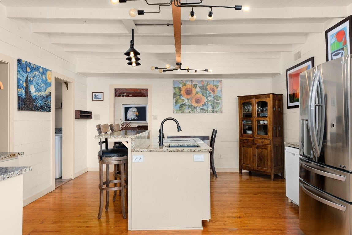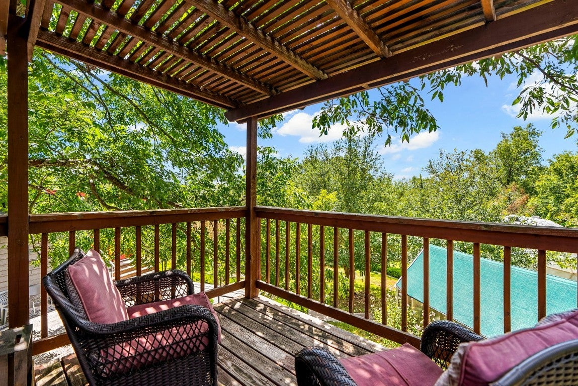 Are you looking for a home that offers an experience too? Your own private getaway could be your own home. Walk right out your back door & spend the day in a hammock by the water or fishing by kayak because this waterfront home with its uniquely terraced grounds is exactly that: your own private getaway. One of the few properties along the Colorado River where you can easily walk down to the water, it's great for all sorts of water activities or to just soak in the beauty of nature all around you as majestic trees tower above. Paved walkways & steps make getting about & to the water easy. Each with breathtaking views of the water & nature, the terraces provide beautiful spaces for guests to have separate conversation areas. A small amphitheater is a great place to host meetings or intimate home concerts. For years, the current owner has operated a successful AirBnB business from this property. While promoting it to encourage visitors, both the main house & the garage apartment had consistent & steady bookings. The main house has the master suite with 2 master bathrooms on the first floor. The master suite itself can be closed off with its own exterior entrance. Upstairs are 2 bedrooms & a full bath with a view over the water. A half-bath downstairs is close to the back door, giving easy access to it from outside. The garage apartment fits a queen-sized bed on the main level & 2 twin beds in the loft above it. Outside, a large deck between the two homes is shaded by a gorgeous, mature pecan tree and has an amazing view. A dome operates like a greenhouse & is home to a thriving koi pond & gardens that stay sheltered in the winter. Whether you’re looking for a retreat of your own, event space, AirBnB or your own home with an ADU rental to supplement your living expenses, this property offers you options. Want something turn-key? The seller would love to include the furnishings with the sale too. By appointment only, call for a showing today.