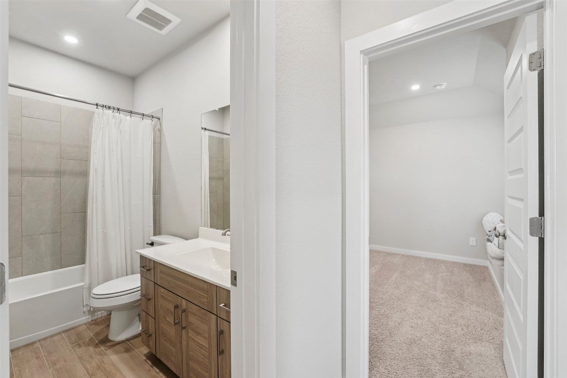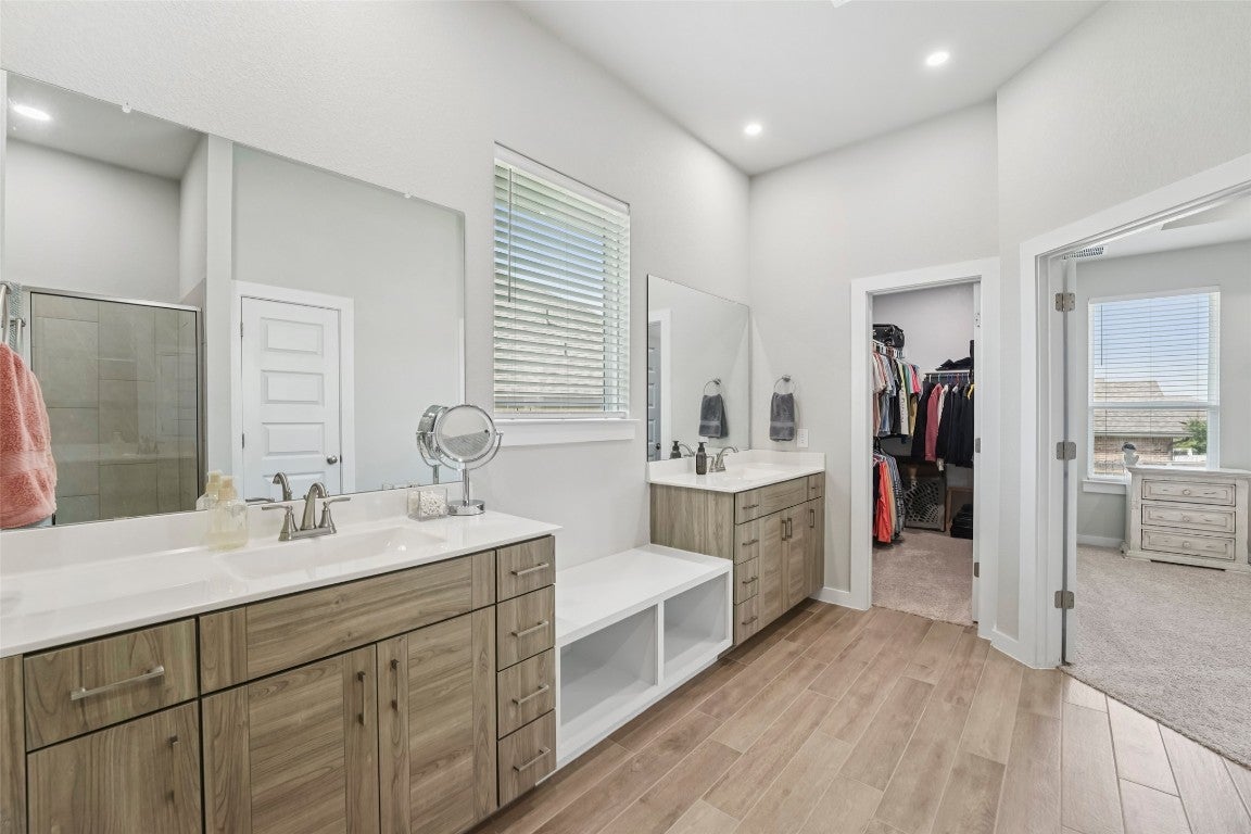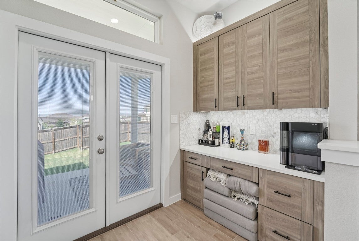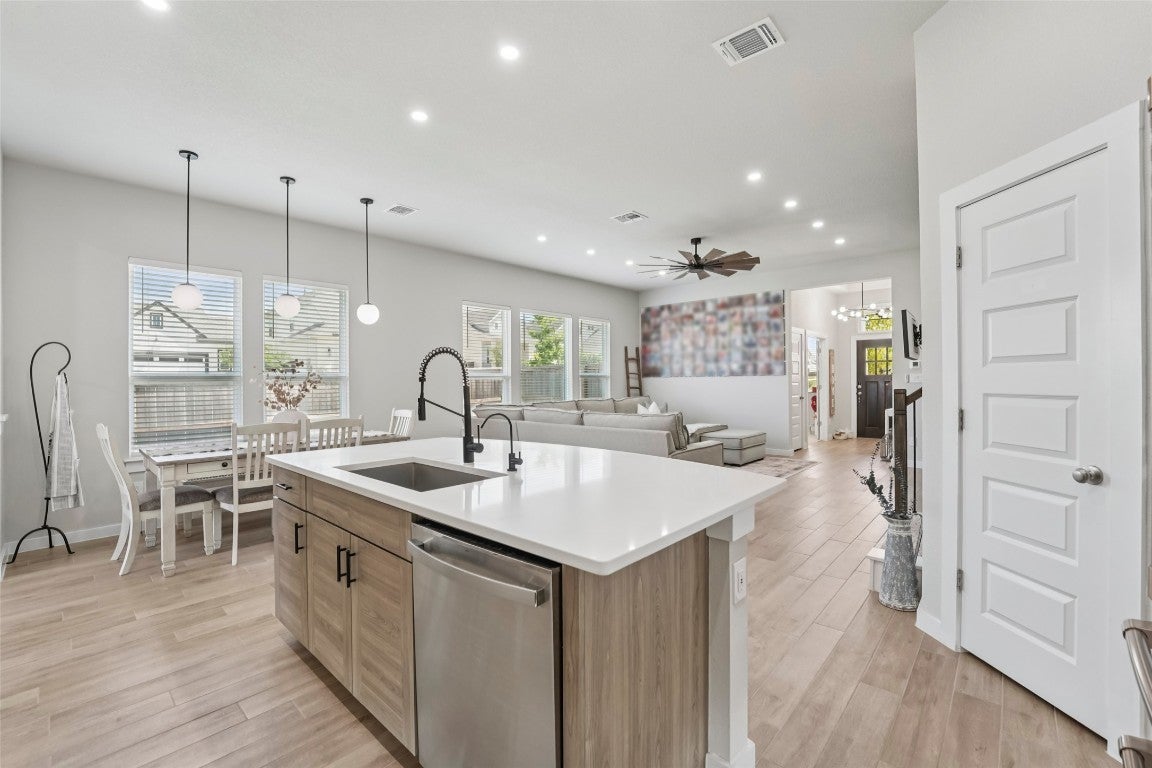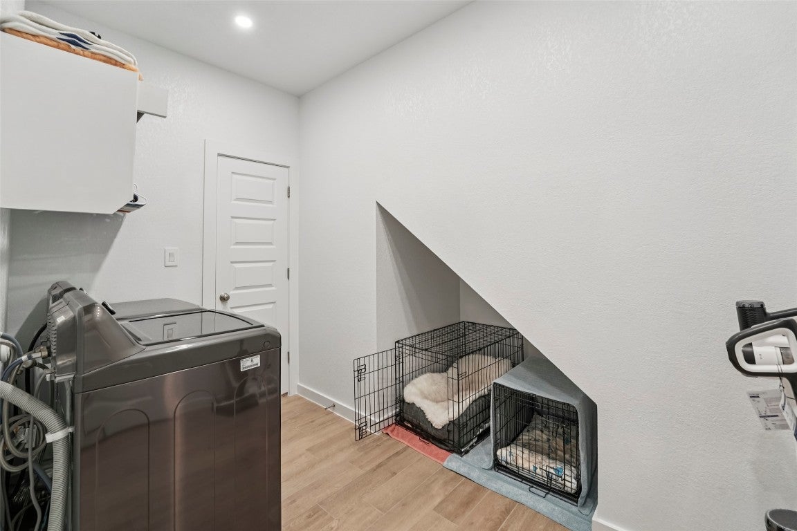 Modern comfort meets everyday functionality in this 2022-built Bryson beauty. Located on a spacious corner lot, this 4-bed, 2.5-bath home features an open layout with high ceilings, upgraded lighting, and a cozy electric fireplace in the living room. The kitchen is built to impress with aesthetic cabinets, a large island, gas cooktop, smart oven, and stylish finishes throughout. Upstairs, you'll find flexible living space, generously sized bedrooms with walk-in closets, and a private primary suite with a spa-like walk-in shower. Enjoy the perks of a three-car garage, fenced backyard, and newly added electrical features throughout. Situated in Leander’s sought-after Bryson community, with neighborhood events, trails, and more just outside your door, this home is ready for its next owner.