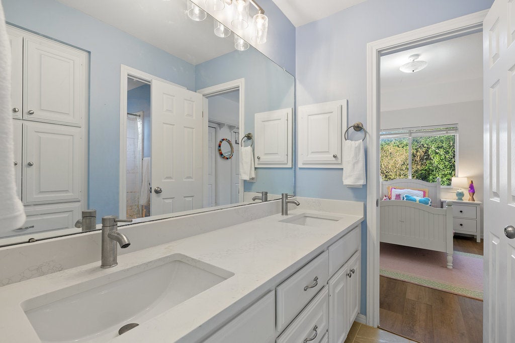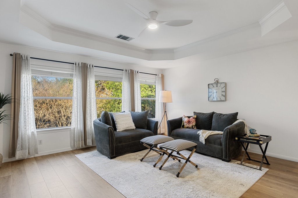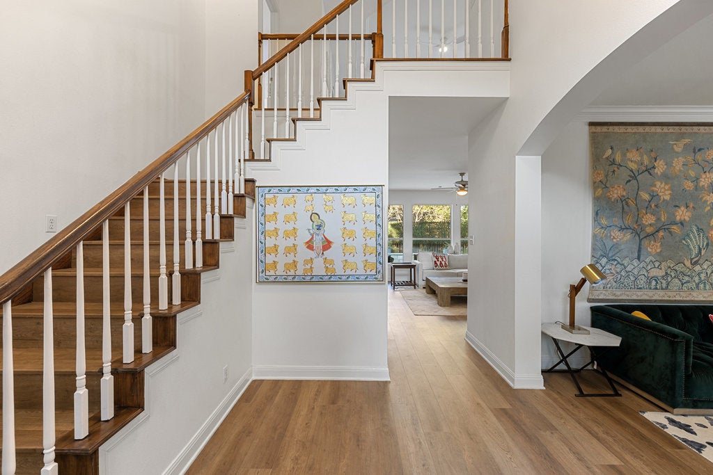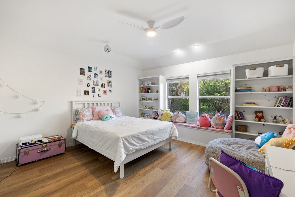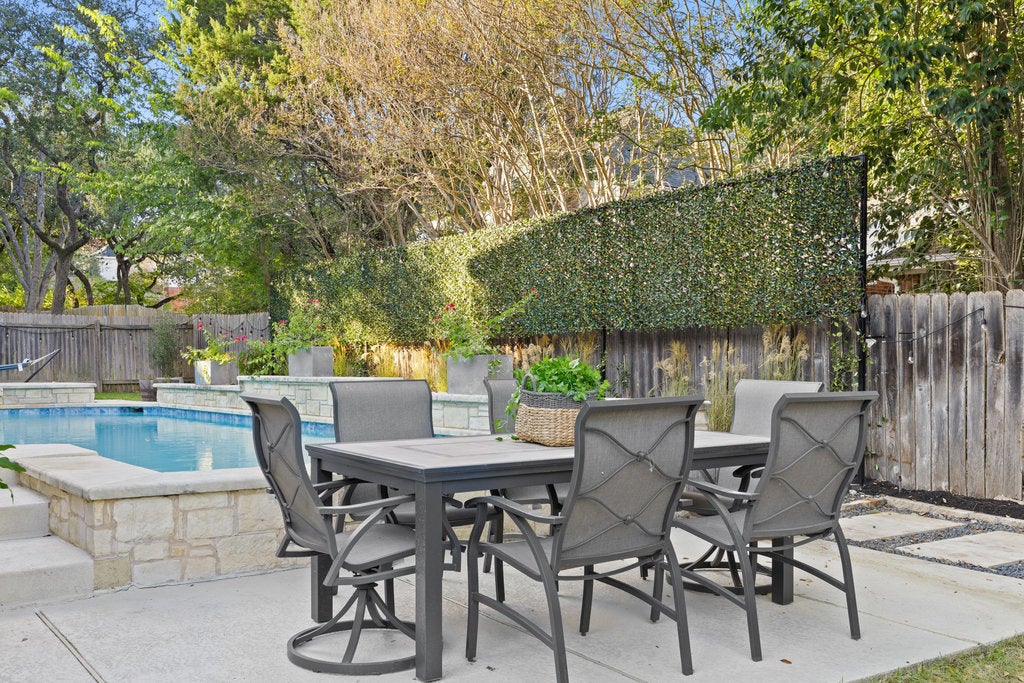 In the coveted Park at Spicewood Springs, this residence immediately sets itself apart. Manicured landscaping and a welcoming front entry hint at the refinement within. Inside, the home opens to formal gathering spaces that highlight craftsmanship and detail. Wood-shuttered windows filter natural light, while a designer chandelier adds warmth and sophistication to the dining room. The layout flows seamlessly into the updated kitchen, thoughtfully designed for those who love to cook and entertain. Granite countertops, a center island with seating, and a stylish backsplash define the space, while a breakfast nook framed by bay windows captures views of the backyard and pool. The main living room is filled with natural light, anchored by custom built-ins and a cozy fireplace, creating a welcoming rhythm that ties the main level together. Privately positioned at the back of the home, the primary suite offers a quiet haven. Spacious enough for a sitting area and with direct access to the backyard, it’s the perfect spot for morning coffee or evening unwinding. The updated ensuite bath feels like a retreat, featuring a soaking tub, walk-in shower with rainfall head, oversized vanities, walls of mirrors, and finishes that were chosen with care. Upstairs, 4 more bedrooms and 3 full bathrooms give everyone space to spread out. The game room adds a casual hangout spot, homework hub or movie night destination. Every bedroom has generous closets and natural light, and there’s even a hidden playroom. Out back, the sense of privacy is undeniable! The recently refinished patio is ready for dinners outdoors, while the newly resurfaced pool and spa shimmer against a backdrop of mature foliage.The large front yard offers another area to play and ride bikes, while a new roof and fresh xeriscape perfect the exterior. The best part? The location-blocks from the park and greenbelt, minutes from HEB, and zoned to Laurel Mountain Elementary, Canyon Vista Middle, and Westwood High.