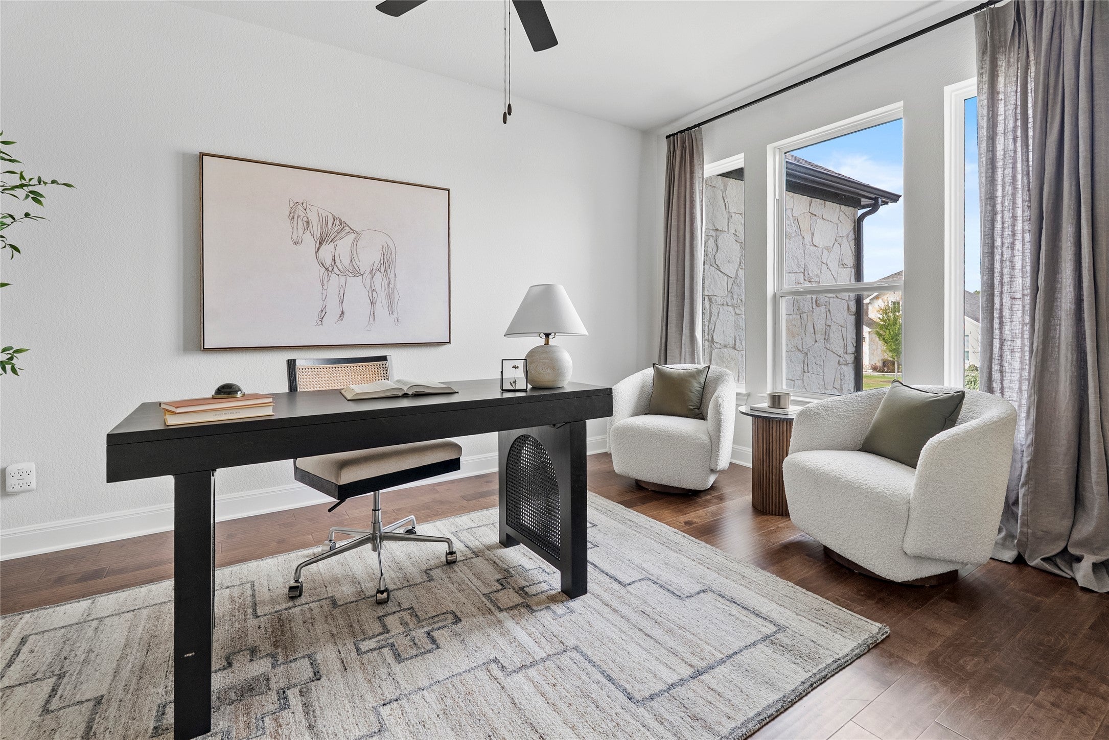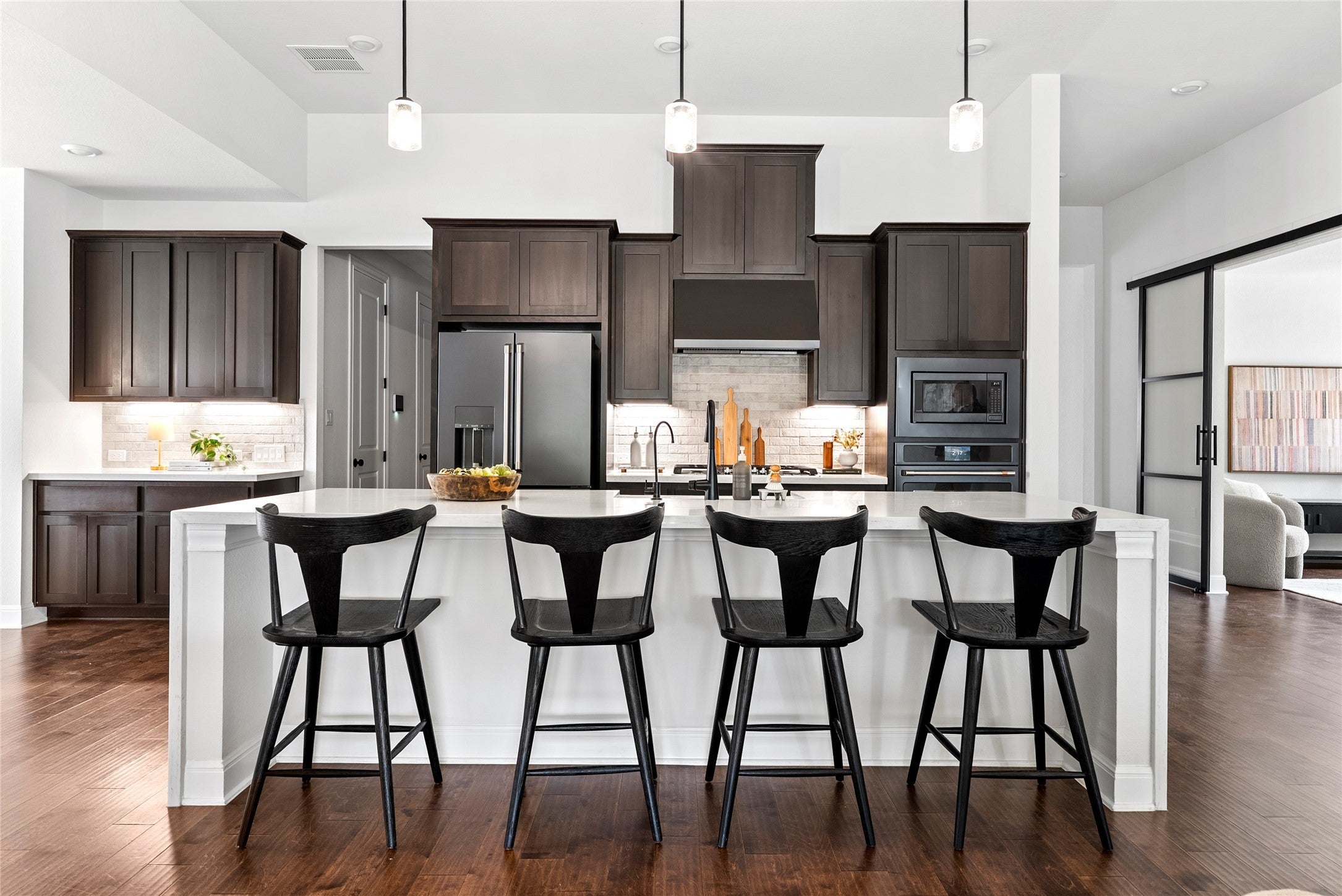 If you’ve been looking for a home that feels easy from the moment you arrive, 177 Running Bird delivers! Designed for real life, this Taylor Morrison home balances thoughtful design with everyday comfort, where quiet mornings and lively evenings feel effortless. With nearly 3,000 square feet, 4 bedrooms, 3 full baths, a dedicated office, and a 3-car garage, the layout offers room to live comfortably without feeling oversized. Open gathering spaces invite connection, while private retreats allow you to unwind. Hand-scraped hardwood floors add warmth and character throughout the main living areas, setting a cohesive tone. The kitchen anchors the home with high-end Café appliances, generous counter space, and a natural flow into the living and dining areas. It’s equally suited for slow mornings or hosting friends. Just off the main living area, a flexible room framed by French-style steel and glass doors offers versatility as your needs evolve. The primary suite feels like a true retreat, featuring beautifully selected finishes, an oversized walk-in shower, and a fully built-out closet ready from day one. Even the laundry room is thoughtfully finished with sleek cabinetry and a Samsung washer and dryer for a clean, built-in feel. Out back, an oversized covered patio offers rare privacy with no neighbors behind and Hill Country views as your backdrop. Parten Ranch adds miles of trails, open green space, an amenity center, two oversized pools, and a welcoming clubhouse. Zoned to Dripping Springs ISD and just 25 minutes from Austin, it’s connected without feeling crowded. Comfortable, intentional, and ready for its next chapter, 177 Running Bird welcomes you home.