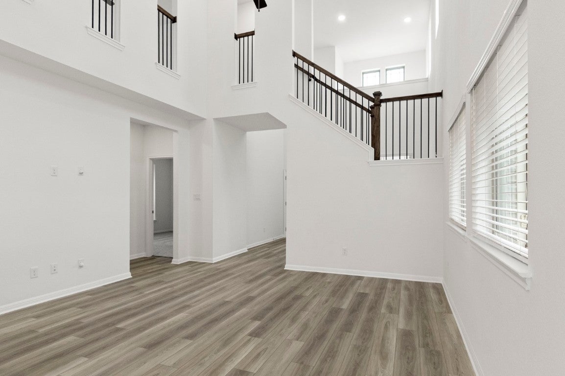 MLS# 7401799 - Built by Pacesetter Homes - Ready Now! ~ This stunning, newly constructed home in the desirable Crosswinds subdivision offers modern design, spacious living, and exceptional comfort. A grand foyer with soaring 18-foot ceilings, wrought iron stair and loft railings, and abundant windows creates a dramatic first impression, while luxury vinyl plank flooring flows throughout the main living areas. The open-concept floor plan seamlessly connects the living and dining spaces, making it ideal for entertaining or everyday living. The private primary suite is conveniently located on the main level alongside the utility room, while upstairs you’ll find two secondary bedrooms and a large multi-use loft or game room offering flexible living options. Outside, enjoy a beautifully landscaped front and backyard with an automatic sprinkler system and relax on the large covered patio with ample shade. Blending contemporary style, thoughtful design, and community charm, this home is ready for you to move in and make it your own.