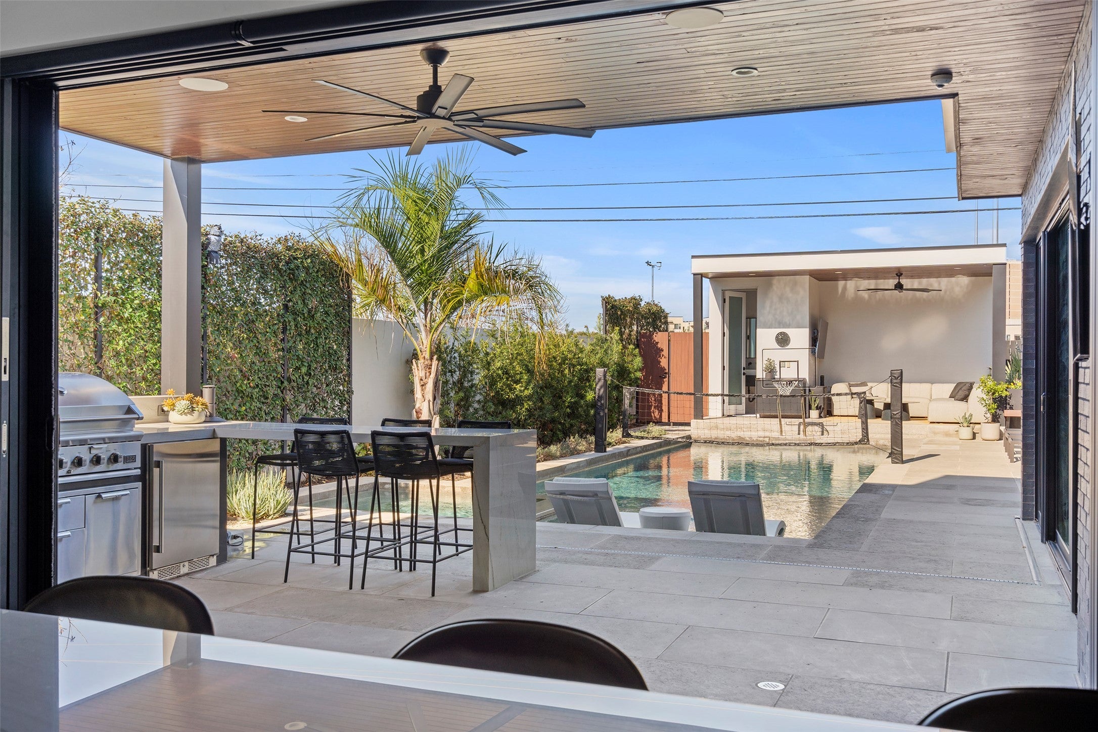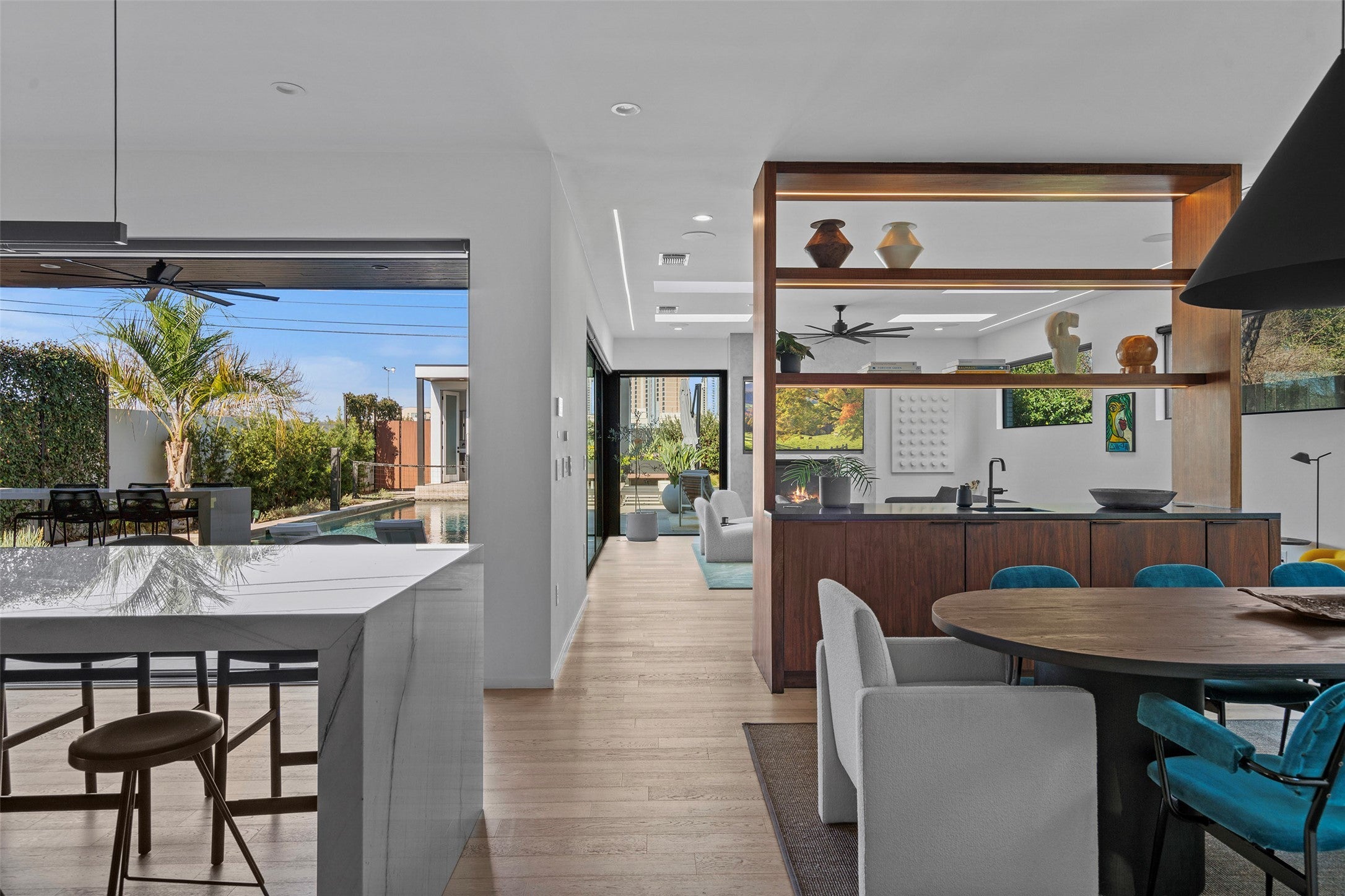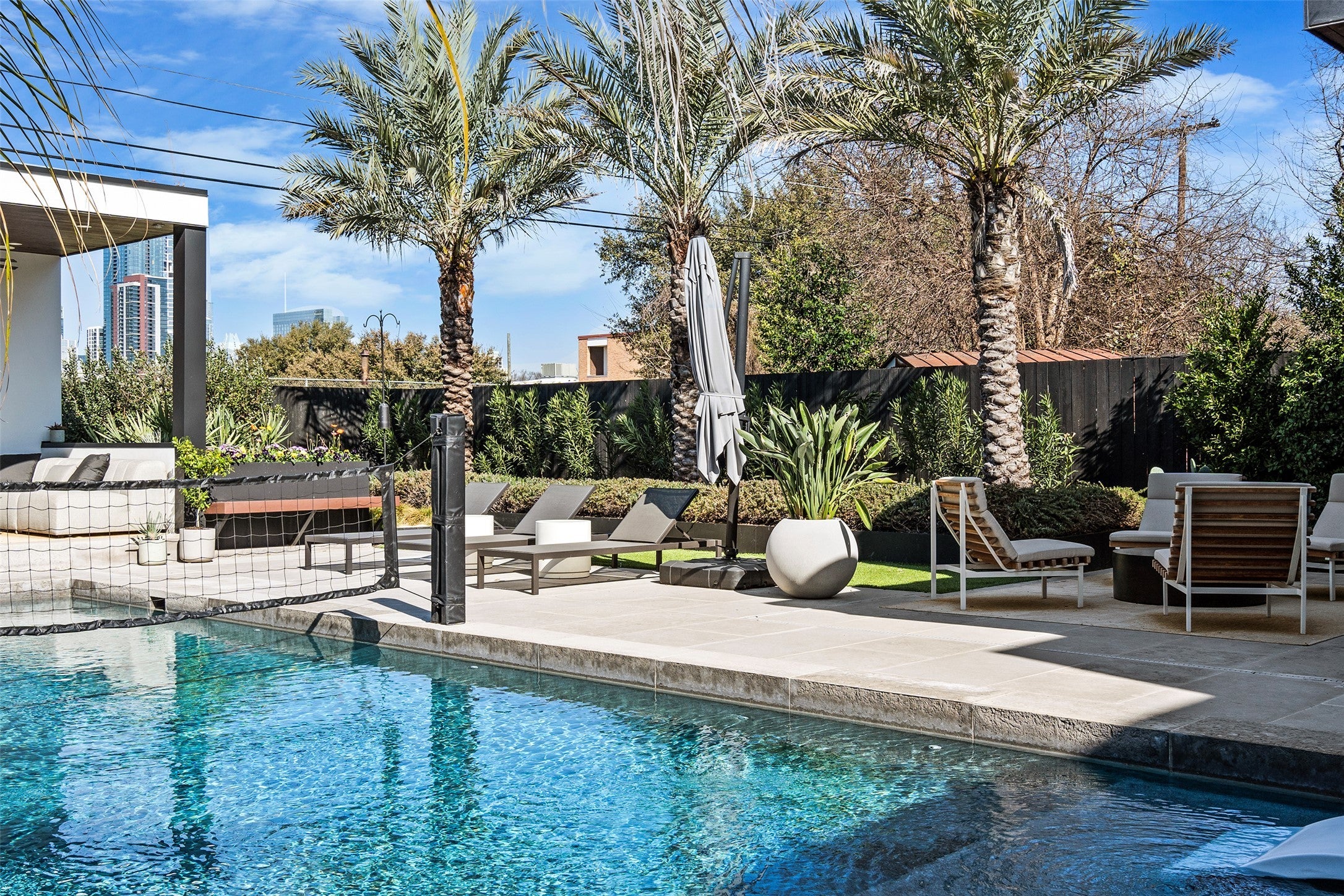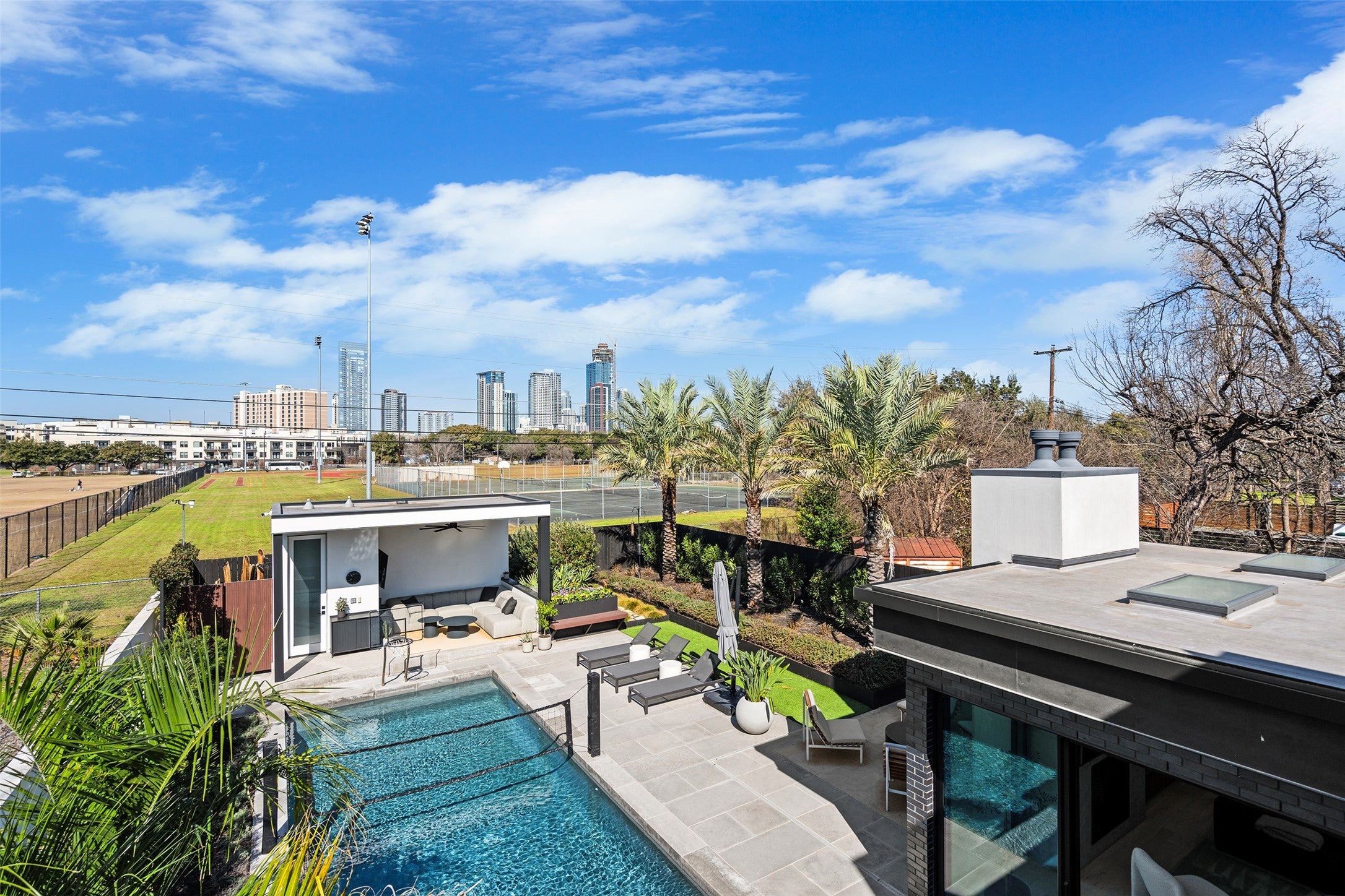 This rare modern residence in Austin's coveted Holly District is an architectural gem, designed & furnished by SLIC Design & featured in 1stDibs Introspective Magazine. It blends luxury, smart technology, & sophisticated design. Every detail, from structure to landscaping, has been meticulously crafted for an elevated living experience. The backyard is an urban oasis with a large pool, built-in spa, beach area, & smart controls for heating/chilling. Multiple seating areas, a pool casita with a half bath, full kitchen, TV setup, outdoor shower, sound system, & fireplace. Enjoy skyline & park views with privacy, created by a custom boundary wall. Over $250,000 was spent on landscaping alone. Smart Home & Security - Josh AI integration for voice-controlled music, lighting, & fans. Full security system with cameras & Door Bird video entry with remote access. Fast 2GB internet. Whole-home water filter, auto-start backup generator, dual tankless water heaters, & two variable-speed HVAC units. White oak floors, level 5 drywall, & walnut cabinetry. Motorized blinds, Sonos speakers, gas fireplace, & 77” TV cutout. Natural light pours through large sliding doors & skylights. State-of-the-Art Kitchen: Quartzite countertops, walnut cabinetry & Sub-Zero/Wolf appliances. Sliding doors connect indoor & outdoor kitchens. Luxurious Primary Suite: Downtown views, custom headboard, Sonos surround sound, motorized blackout shades, & with waterfall shower. Walk-in closet with walnut cabinetry & full-size washer/dryer. Garage & More: Finished two-car garage with epoxy floors, built-in storage, two electric car chargers, & mini-split for heating/cooling, ideal for gym or workshop. The home features bespoke pieces from SLIC Design, with $225k invested in art & furnishings (available for negotiation). Built to the highest standards, this home offers an unparalleled blend of design, technology, & luxury. Don’t miss the chance to own this one-of-a-kind property.