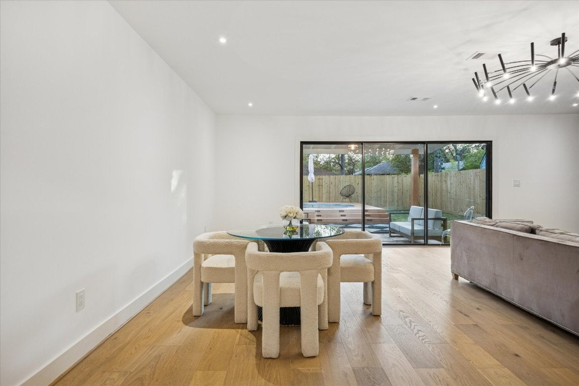 Modern Elegance in the Heart of Windsor Park Tucked within one of Austin’s most vibrant neighborhoods, this 4-bedroom, 3-bath architectural gem redefines modern living. Every detail, from the wide-plank oak floors to the open, light-filled layout, was designed to evoke both warmth and sophistication. At the center of the home, a chef’s kitchen makes a statement with its waterfall-edge countertops, sleek maple cabinetry, and a seamless flow into the living and dining spaces. Gather around the modern fireplace for intimate evenings, or throw open the 12 Foot multi-slide doors to the poolside covered patio and let the indoors and outdoors blend into one. The primary suite is privately tucked away, offering a serene escape with a spa-inspired bath, double vanity, and a spacious walk-in double shower. Three additional bedrooms—each with thoughtful touches and natural light—provide flexibility for guests, family, or a creative studio. Outside, the experience continues. A resort-style pool glistens under the Austin sun, framed by lush landscaping and designed for both relaxation and celebration. Balancing refined design with effortless comfort, this Windsor Park residence captures the essence of Austin’s modern lifestyle—stylish, soulful, and made for living beautifully.