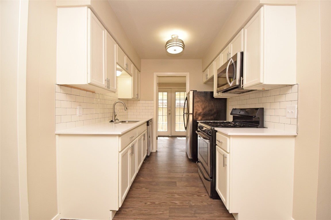 Discover a rare chance to own a beautifully updated, income-producing duplex in one of Austin’s most established neighborhoods. Both sides feature spacious 3-bedroom, 2-bath layouts, currently leased at premium market rates. Each residence showcases luxury vinyl plank flooring, plush carpeted bedrooms, and a sophisticated neutral palette enhanced by designer lighting and modern ceiling fans. Bright, open-concept living spaces are bathed in natural light through expansive picture windows. Gourmet kitchens are equipped with sleek stainless steel appliances, gas ranges, built-in microwaves, crisp white cabinetry, classic subway tile backsplashes, and cozy cafe-style dining nooks. Generously sized bedrooms offer ceiling fans and abundant storage, while French doors lead to private patios—ideal for morning coffee or evening gatherings. Each unit includes indoor laundry and a detached storage shed for added convenience. Unbeatable location just minutes from shopping, major employers, key roadways, and the vibrancy of Downtown Austin.