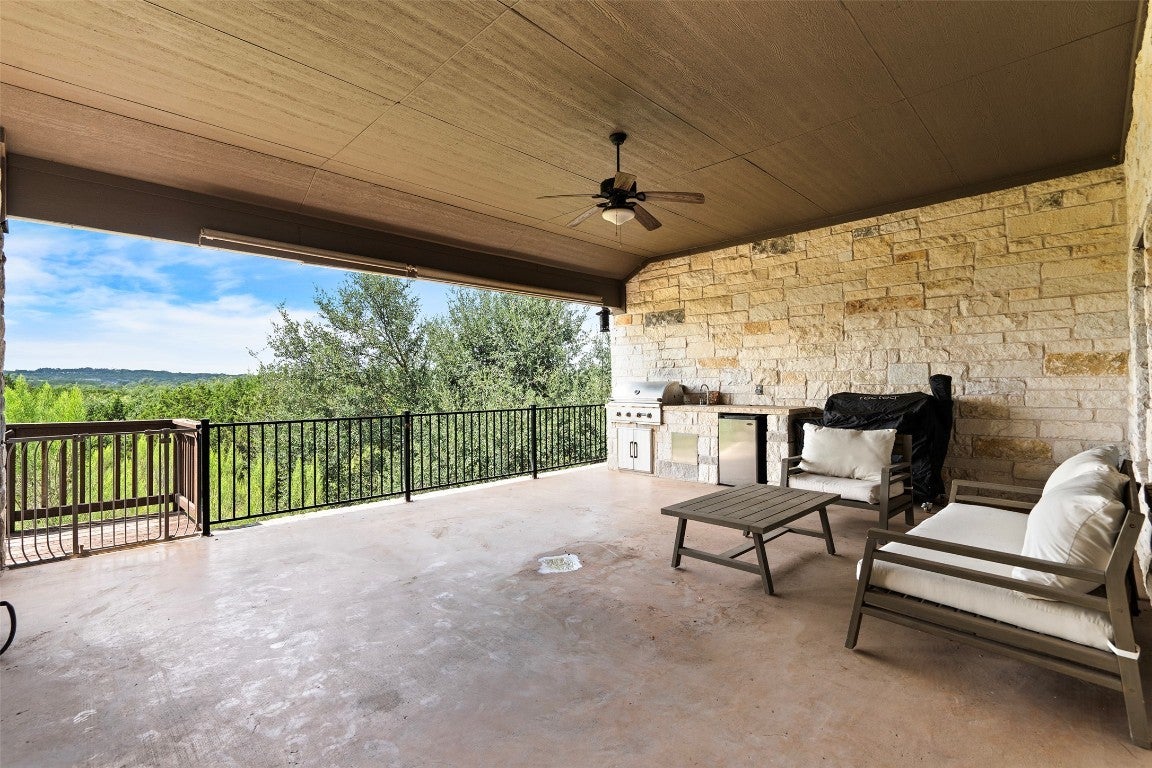 Priced to let you come in and customize the yard or other details as you see fit, this spot puts you in the heart of Driftwood's laid-back Hill Country vibe—think nearby wineries, hiking trails, and a quick drive into Austin for city conveniences without the hustle. Nestled on the quietest, most private cul-de-sac in the neighborhood, walk into this single-story home and feel the openness right away with its flexible floor plan that adapts to how you live. You'll enjoy the in-law suite with its own full bath for guests or family staying over. Step into the dedicated office just off the entry, perfect for those work-from-home days. Choose between the formal dining area or the casual breakfast room based on what suits the moment. Relax in the living room where Hill Country views pull you in, then step out to the oversized covered patio with an outdoor kitchen for easy evenings outside—complete with unobstructed sunset views every night. Wake up to those same rolling hill views from the spacious primary bedroom, complete with a garden tub, separate shower, and dual vanities. The whole interior has been freshly painted, giving you a clean slate to make it yours, while upgrades like a top-of-the-line full-house Puronics water filtration system—plus reverse osmosis at the sink—ensure pure water throughout. Outside, the flat backyard offers endless potential for renovations, and the large south-facing roof is ideal for solar panels.