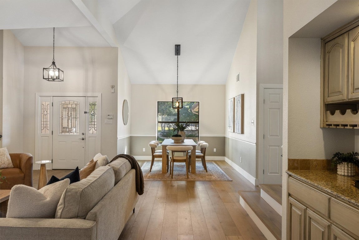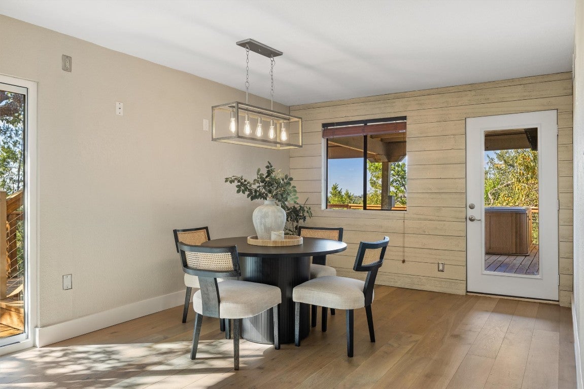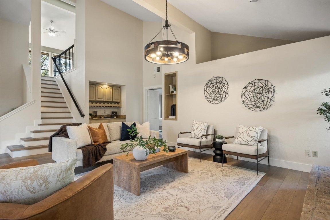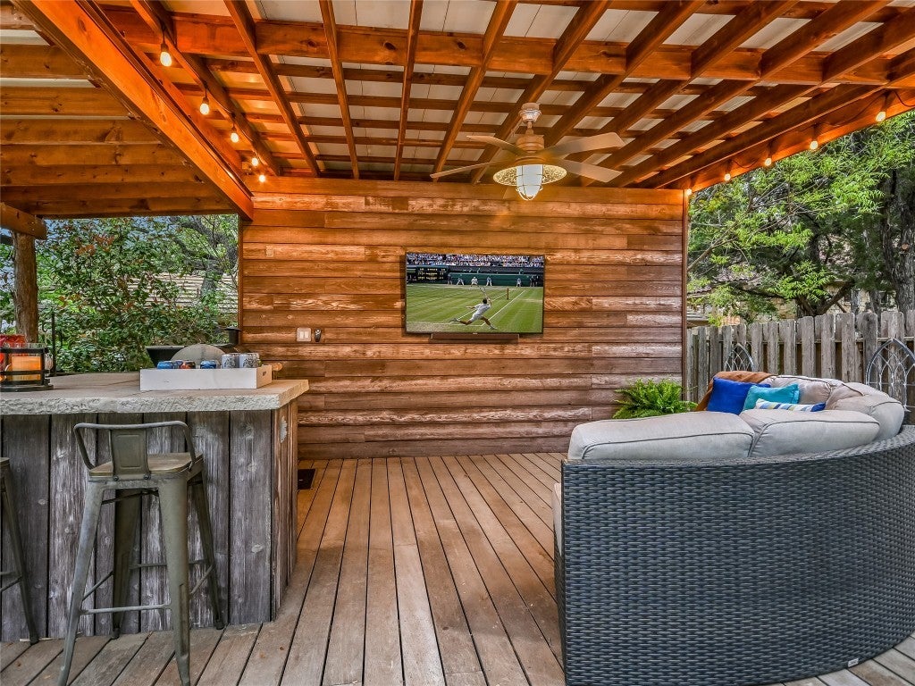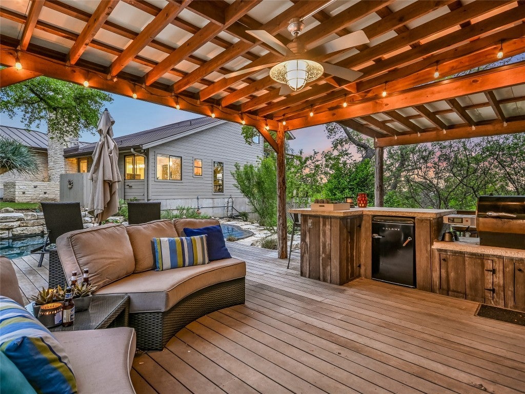Lakeway Haven with Saltwater Pool, Hot Tub & Sweeping Views Unwind in the hot tub at sunset and soak in breathtaking Hill Country views from your sweeping two-story wood deck — perfect for relaxing, entertaining, or grilling with friends and family. Take a dip in the sparkling saltwater pool while catching a game on the outdoor entertainment center’s big screen TV. Roast marshmallows under the stars at the backyard fire pit, surrounded by blooming greenery and a fruiting peach tree — a garden-lover’s paradise that feels worlds away, yet just minutes from local restaurants, shops and entertainment. Inside, modern comfort meets timeless Hill Country charm. The open-concept living area features vaulted ceilings, new white oak flooring, fresh paint, and a stunning floor-to-ceiling stone fireplace. The gourmet kitchen includes granite countertops, stainless steel appliances, a walk-in pantry, and a sunny breakfast nook with direct access to the terrace. The spacious primary suite offers patio access, an oversized walk-in closet, and a luxurious spa-style bath designed for deep relaxation. Upstairs, you’ll find a newly carpeted loft with a wet bar and upper-deck Hill Country views — perfect for a game room, home gym, office, or potential fourth bedroom. With 3 bed, 2.5 baths, & an attached 2-car garage, this home offers both beauty & function. Thoughtful upgrades include 2023 & 2024 HVAC units, an energy-efficient metal roof, professionally reinforced & refinished two story wood deck, low property taxes, & no HOA — ensuring comfort, efficiency, and peace of mind. Nestled in a picturesque Lakeway neighborhood within the highly rated Lake Travis ISD, this home blends the serenity of a private retreat with easy access to everything you love: The Hills Country Club, World of Tennis, Yaupon Golf Course, Lakeway City Park, Lakeway Marina, and scenic hike & bike trails . Experience Hill Country living at its finest — where every sunset feels like a vacation.