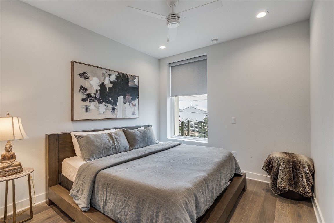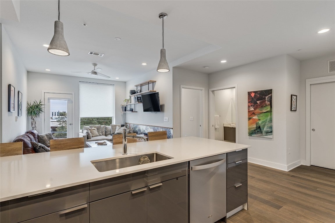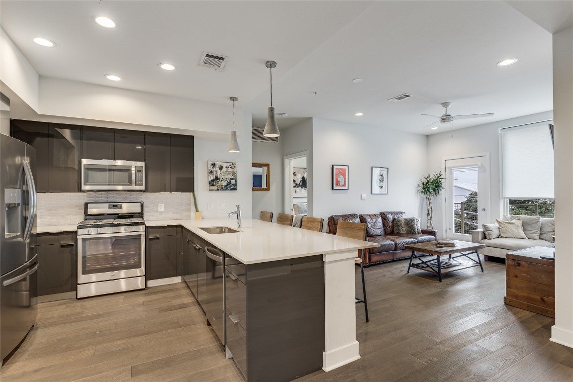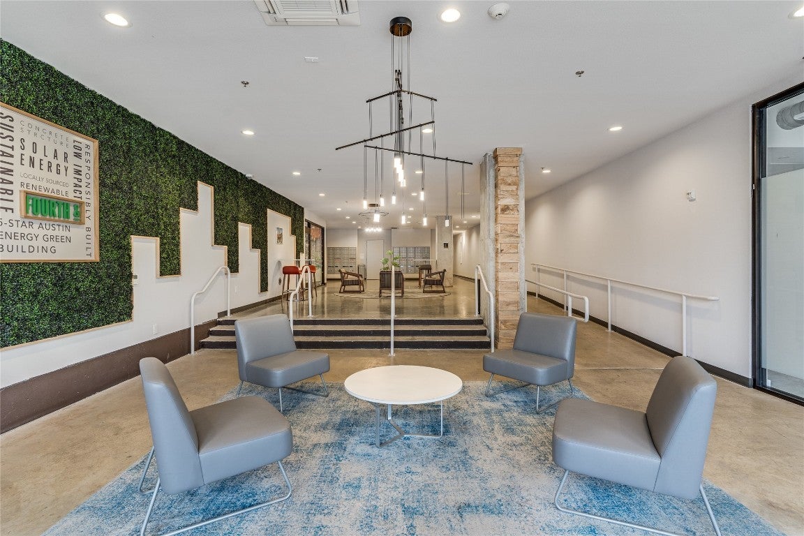 Welcome to Fourth&—Your Urban Oasis.Discover the pinnacle of urban living in Austin’s most trendy and dynamic neighborhood - central East Austin. This top-floor, 2 bedroom 2 bath unit is more than just a home —it's a statement of eco-conscious luxury, boasting a prestigious 5-Star Austin Energy Green Building rating. The unit itself offers an East-facing private balcony that floods the condo with natural light—perfect for morning coffee or evening relaxation. Sleek modern finishes create a refined aesthetic, while the open floor plan maximizes comfort and functionality. Building amenities include a pool, fitness center, grilling station, an expansive amenity deck, and conference rooms, as well as first floor commercial space. Secure access, two reserved parking spots, and a pet-friendly environment make this the ultimate urban retreat. Get the best of both worlds with a with a location walkable to East Austin’s bars and restaurants, combined with a peaceful and quiet residential building. Plus, enjoy nearby parks and pickleball courts just across the street. Short-term rentals are permitted (with a waitlist for permits).
