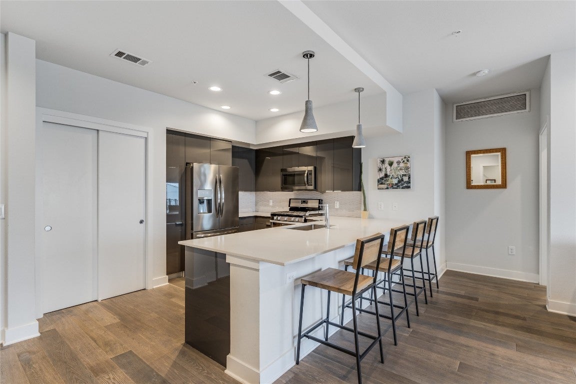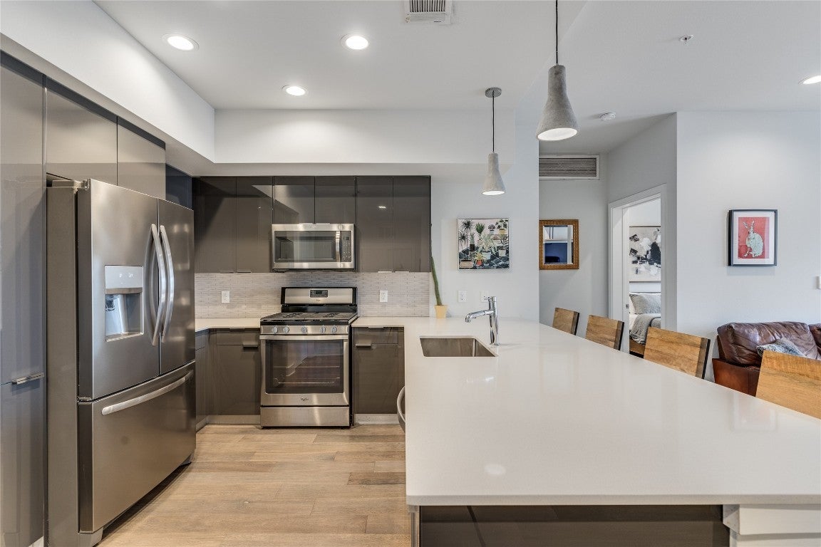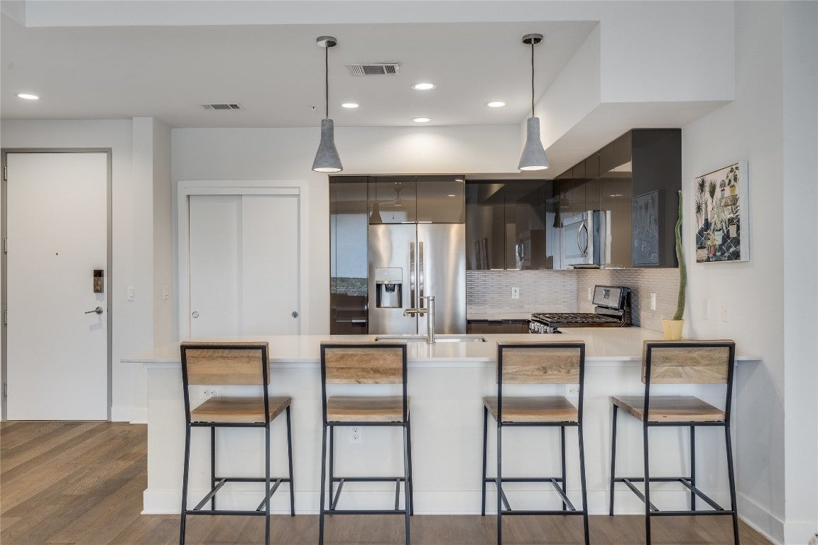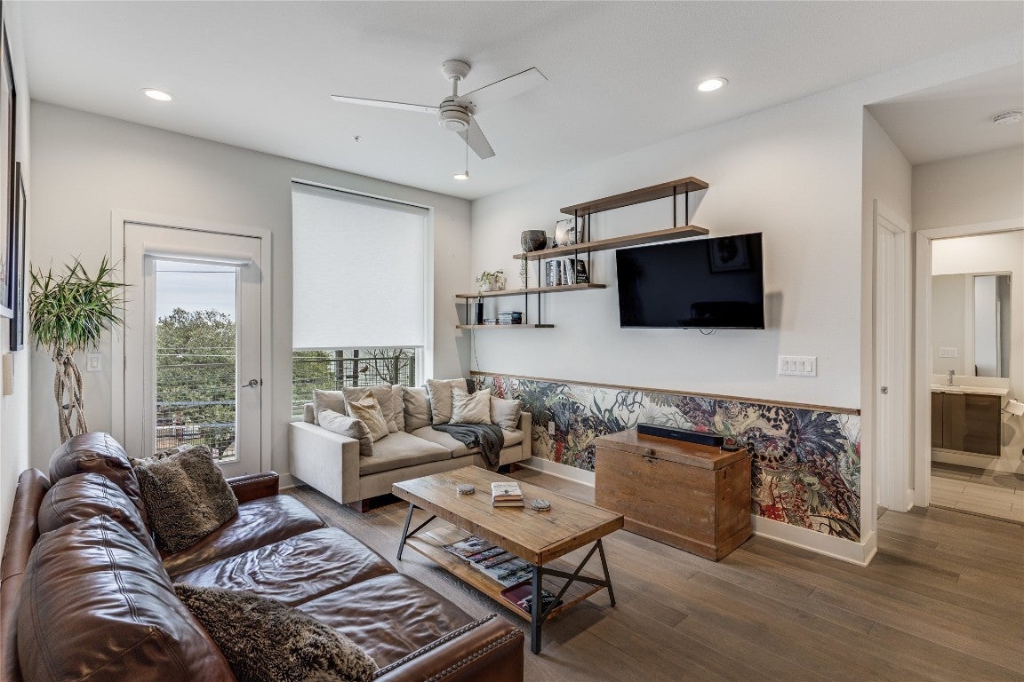 Welcome to Fourth&—Your Urban Oasis.Discover the pinnacle of urban living in Austin’s most trendy and dynamic neighborhood - central East Austin. This top-floor, 2 bedroom 2 bath unit is more than just a home —it's a statement of eco-conscious luxury, boasting a prestigious 5-Star Austin Energy Green Building rating. The unit itself offers an East-facing private balcony that floods the condo with natural light—perfect for morning coffee or evening relaxation. Sleek modern finishes create a refined aesthetic, while the open floor plan maximizes comfort and functionality. Building amenities include a pool, fitness center, grilling station, an expansive amenity deck, and conference rooms, as well as first floor commercial space. Secure access, two reserved parking spots, and a pet-friendly environment make this the ultimate urban retreat. Get the best of both worlds with a with a location walkable to East Austin’s bars and restaurants, combined with a peaceful and quiet residential building. Plus, enjoy nearby parks and pickleball courts just across the street. Short-term rentals are permitted (with a waitlist for permits).