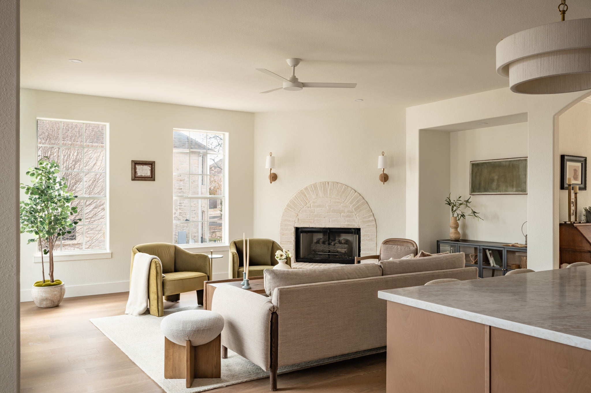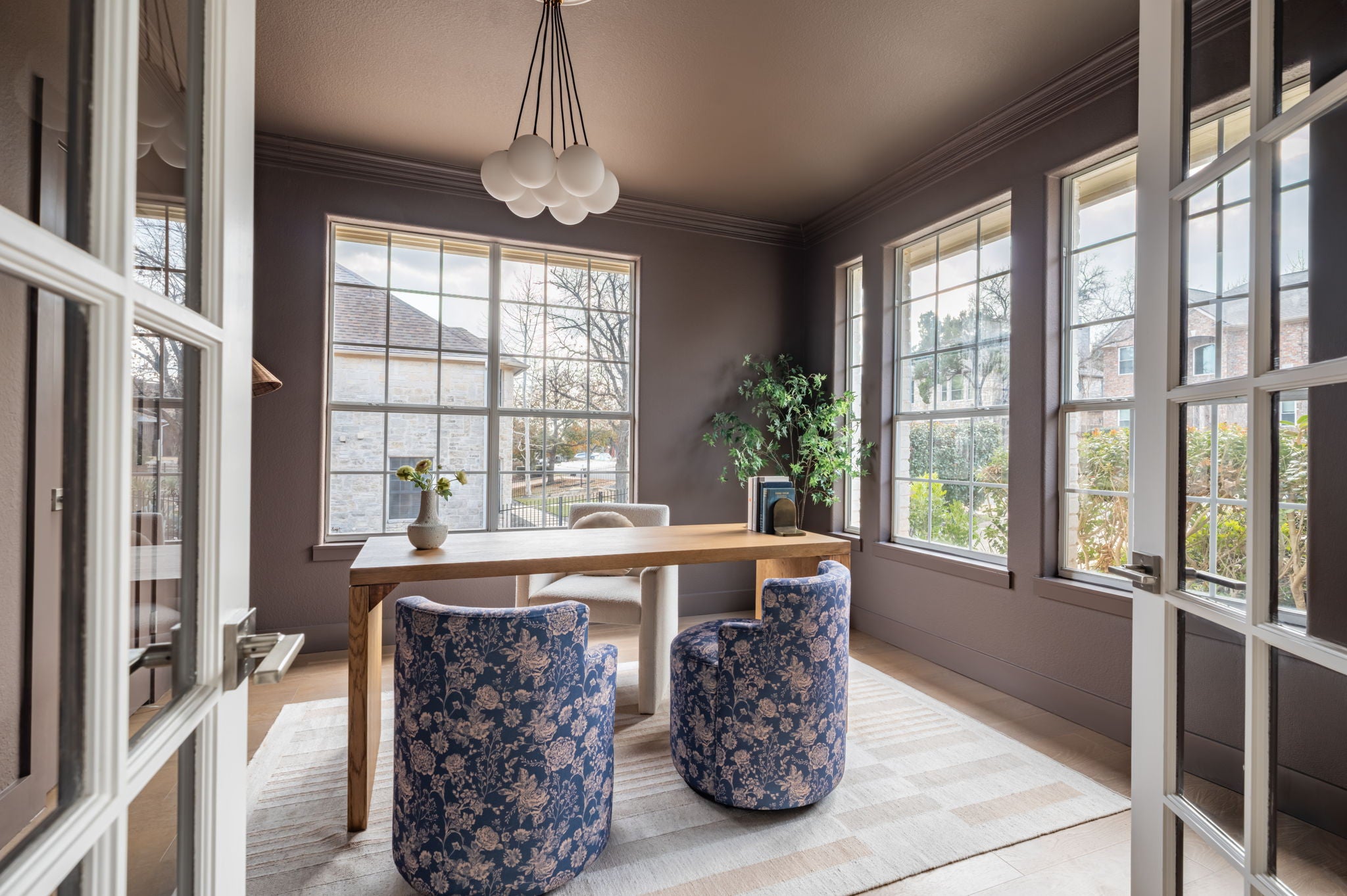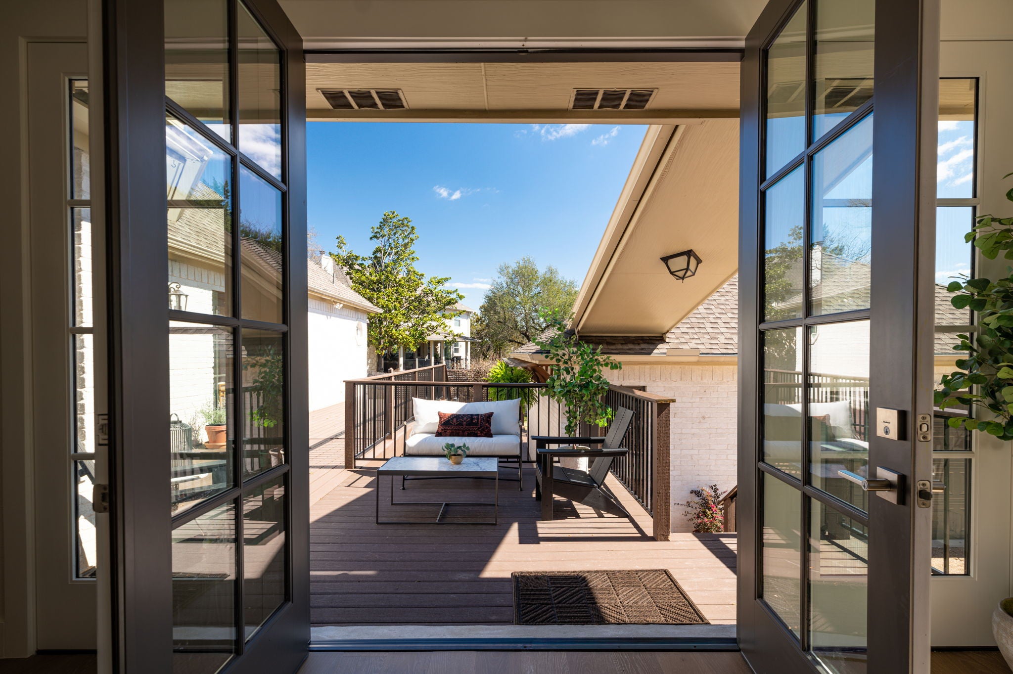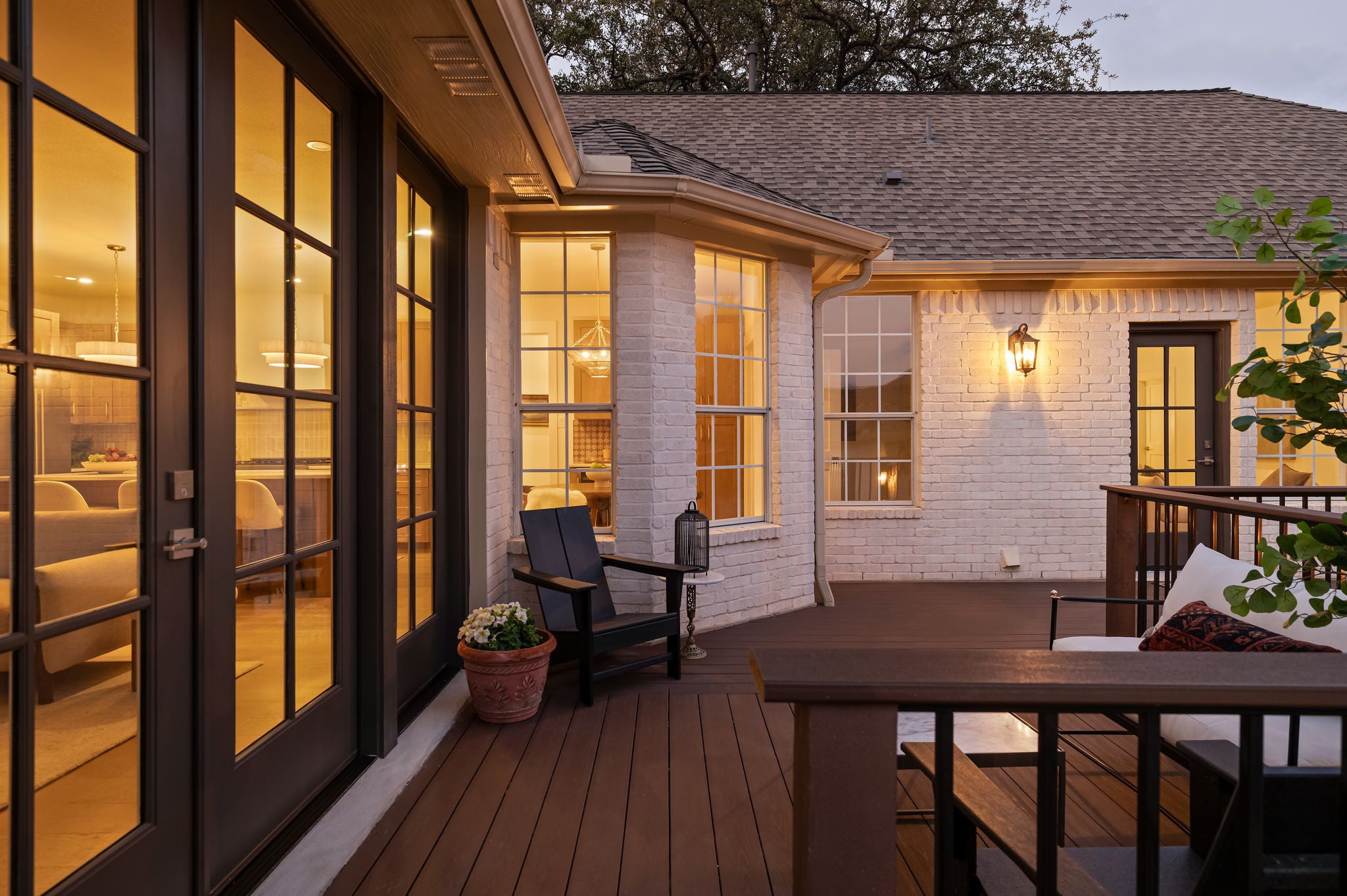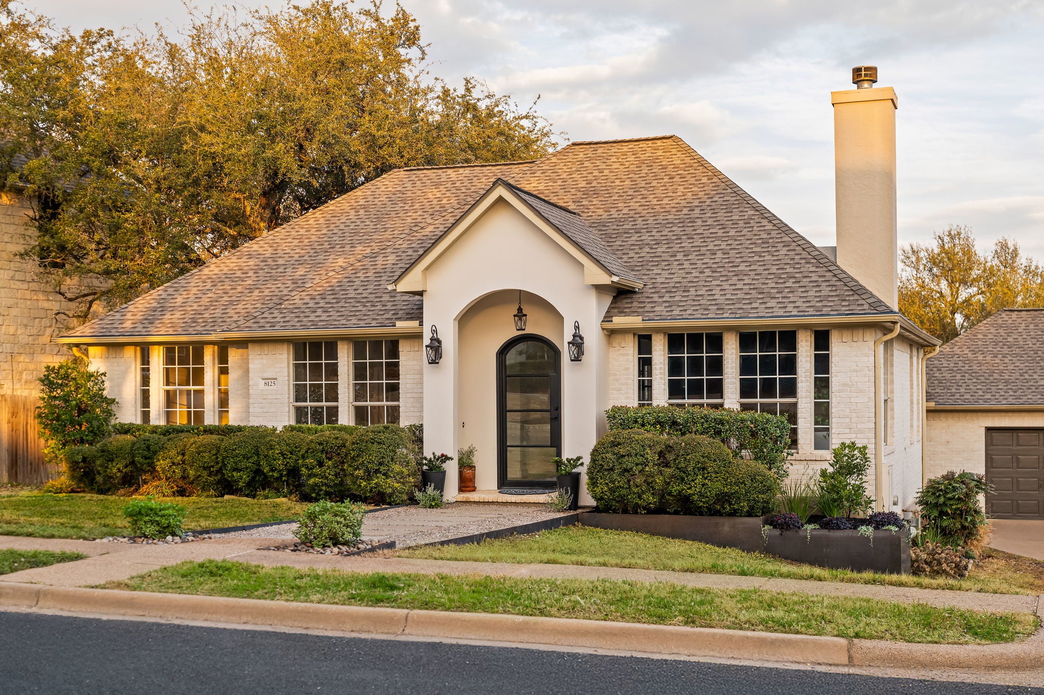 Blending French Chateau–inspired elegance with warm contemporary design, this remodeled single-story residence offers a dramatic, light-filled home office and four bedrooms in one of Northwest Austin’s most desirable enclaves—Jester in Austin—known for its scenic setting, peaceful atmosphere, welcoming community, and top-rated schools. The home features an all brick and stucco exterior and nearly $200,000 in recent upgrades, with every interior surface refined after optimizing the floorplan. Classic lines and inviting curb appeal set the tone. Reimagined by Making Modern Home, the interiors reflect a quietly luxurious yet livable feel. A grand foyer entered through a custom steel door opens to a sophisticated dining room and private office framed by French doors and a transom. The great room is filled with natural light and connects seamlessly to the outdoors through French doors. An elegant brick fireplace, integrated TV nook, breakfast area, and stylish bar create inviting gathering spaces. The chef’s kitchen opens to the great room and features warm wood cabinetry, Taj Mahal quartz countertops, handcrafted zellige tile, a professional-style 36" dual-fuel stainless range, and a generous island. Soft neutral palettes, designer lighting, wide-plank flooring, and refined moldings create a cohesive, elevated aesthetic. The spacious primary suite offers a private retreat with a walk-in closet and spa-like bath featuring a walk-in shower and freestanding soaking tub. Set on over a quarter acre lot, the backyard captures canyon views from the expansive composite deck and offers room for a future pool. A detached garage adds long-term potential, including the opportunity for a future studio above (buyer to verify). An optional, $633 membership to the Jester Club provides access to a pool, playground, tennis, pickleball and basketball courts. Greenbelt hiking nearby. Pre-Inspected and ready for your elevated Austin lifestyle!