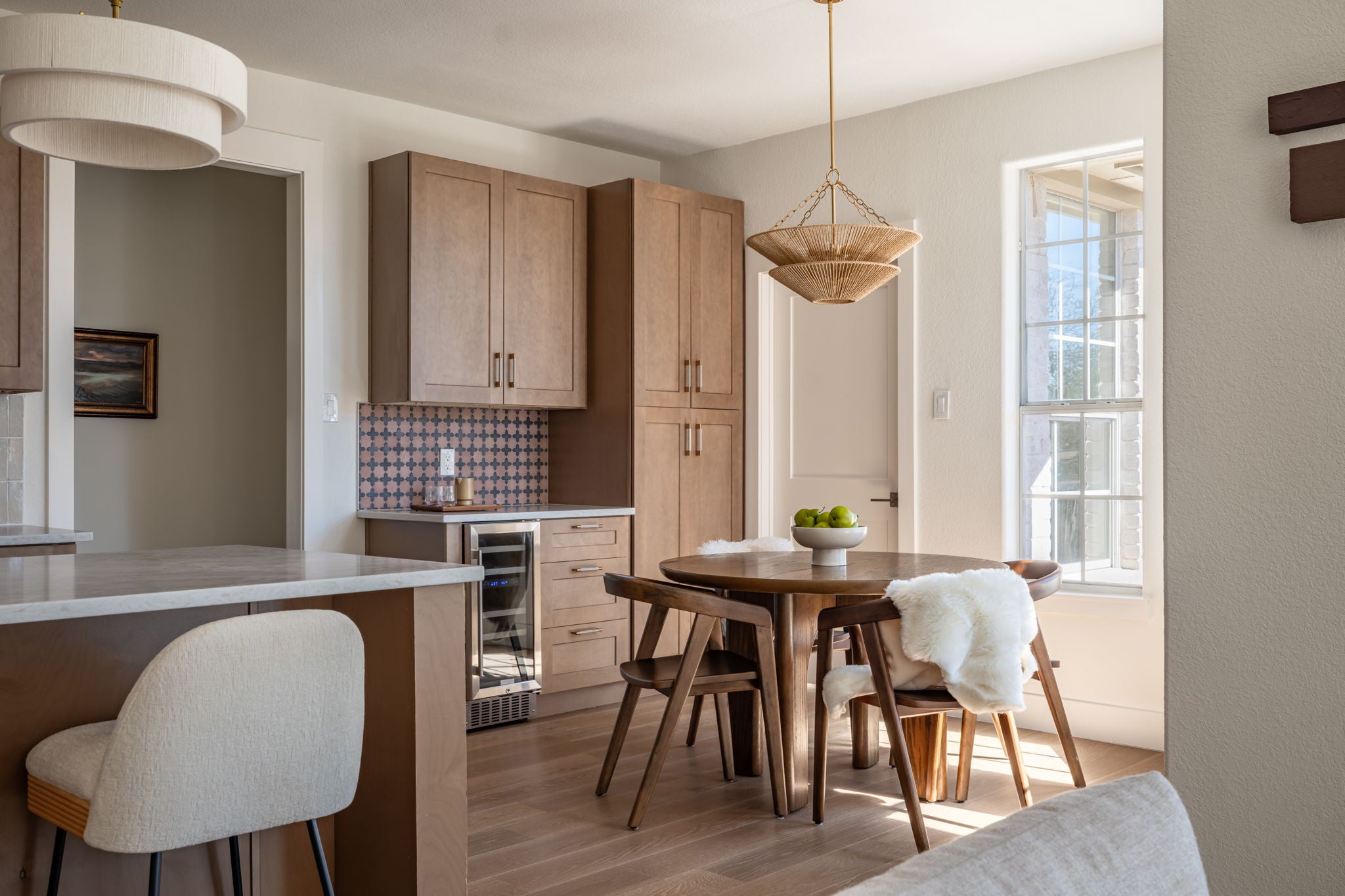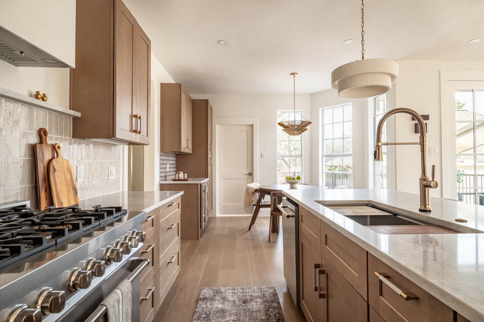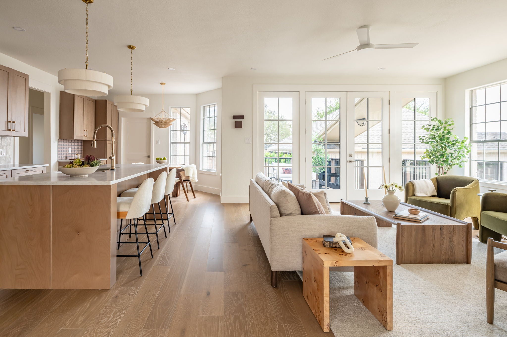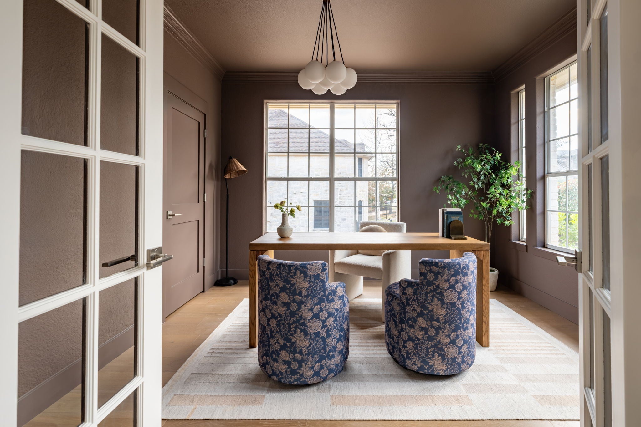 Blending French Chateau–inspired elegance with warm contemporary design, this remodeled single-story residence offers a dramatic, light-filled home office and four bedrooms in one of Northwest Austin’s most desirable enclaves—Jester in Austin—known for its scenic setting, peaceful atmosphere, welcoming community, and top-rated schools. The home features an all brick and stucco exterior and nearly $200,000 in recent upgrades, with every interior surface refined after optimizing the floorplan. Classic lines and inviting curb appeal set the tone. Reimagined by Making Modern Home, the interiors reflect a quietly luxurious yet livable feel. A grand foyer entered through a custom steel door opens to a sophisticated dining room and private office framed by French doors and a transom. The great room is filled with natural light and connects seamlessly to the outdoors through French doors. An elegant brick fireplace, integrated TV nook, breakfast area, and stylish bar create inviting gathering spaces. The chef’s kitchen opens to the great room and features warm wood cabinetry, Taj Mahal quartz countertops, handcrafted zellige tile, a professional-style 36" dual-fuel stainless range, and a generous island. Soft neutral palettes, designer lighting, wide-plank flooring, and refined moldings create a cohesive, elevated aesthetic. The spacious primary suite offers a private retreat with a walk-in closet and spa-like bath featuring a walk-in shower and freestanding soaking tub. Set on over a quarter acre lot, the backyard captures canyon views from the expansive composite deck and offers room for a future pool. A detached garage adds long-term potential, including the opportunity for a future studio above (buyer to verify). An optional, $633 membership to the Jester Club provides access to a pool, playground, tennis, pickleball and basketball courts. Greenbelt hiking nearby. Pre-Inspected and ready for your elevated Austin lifestyle!