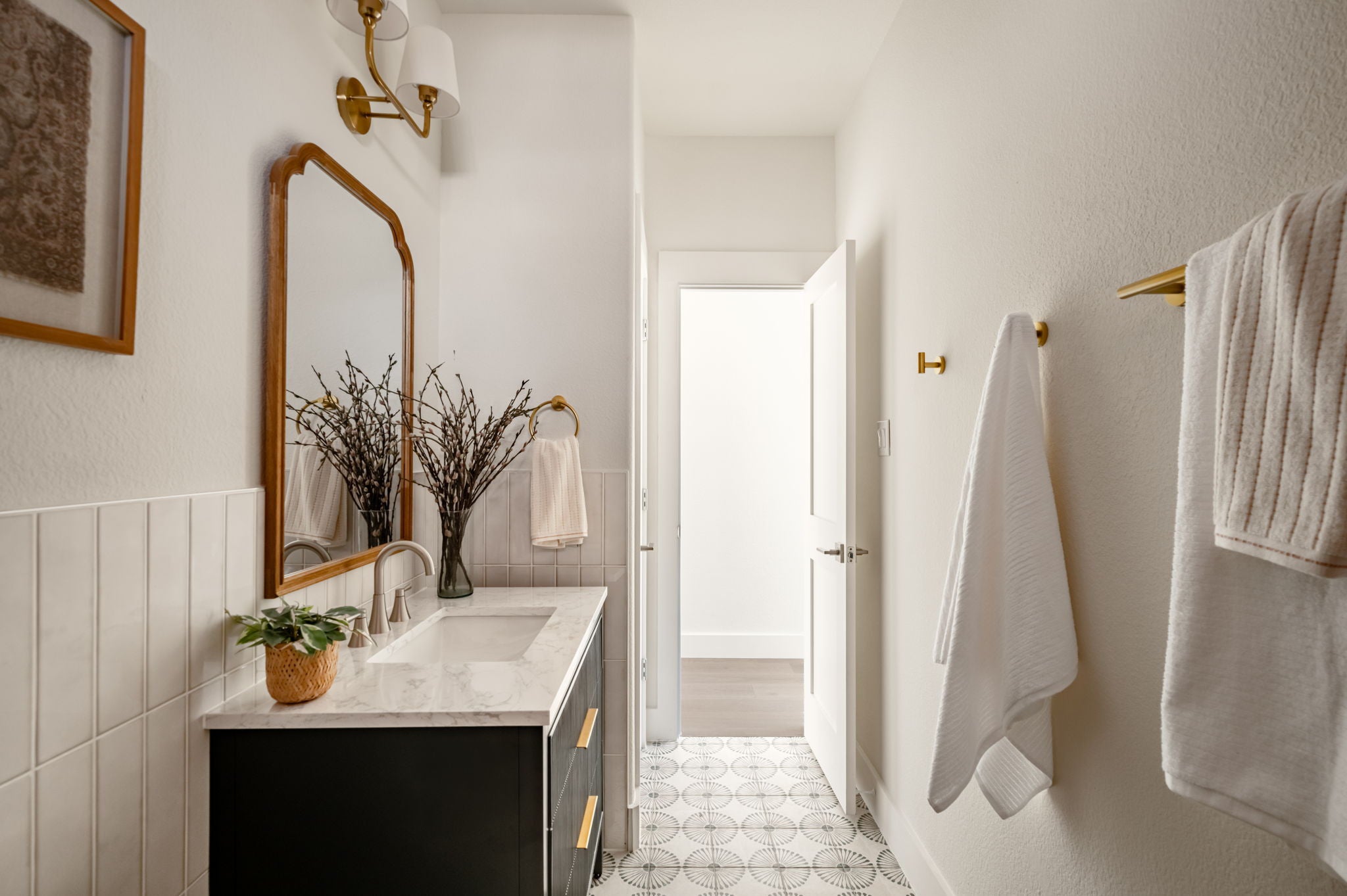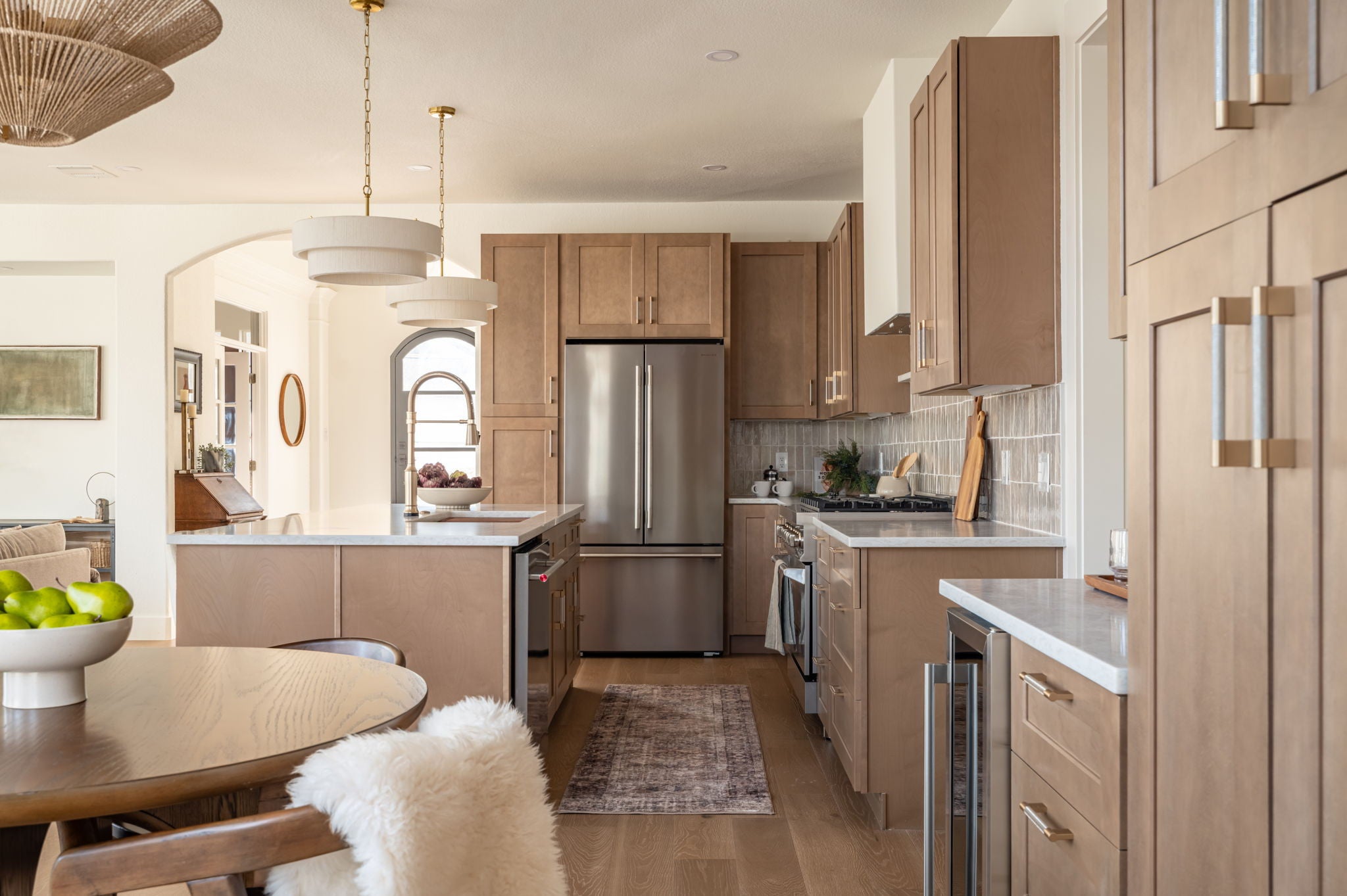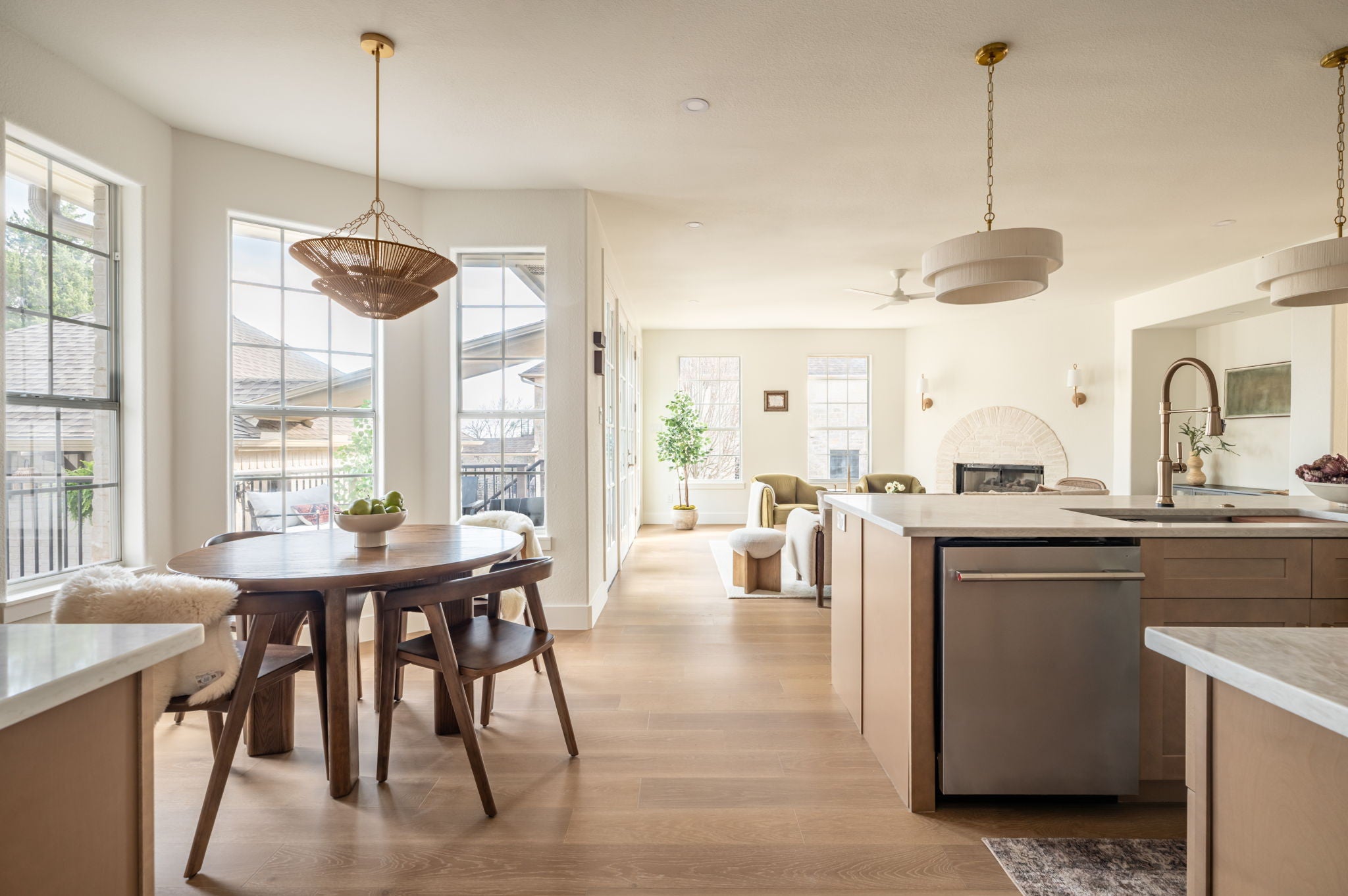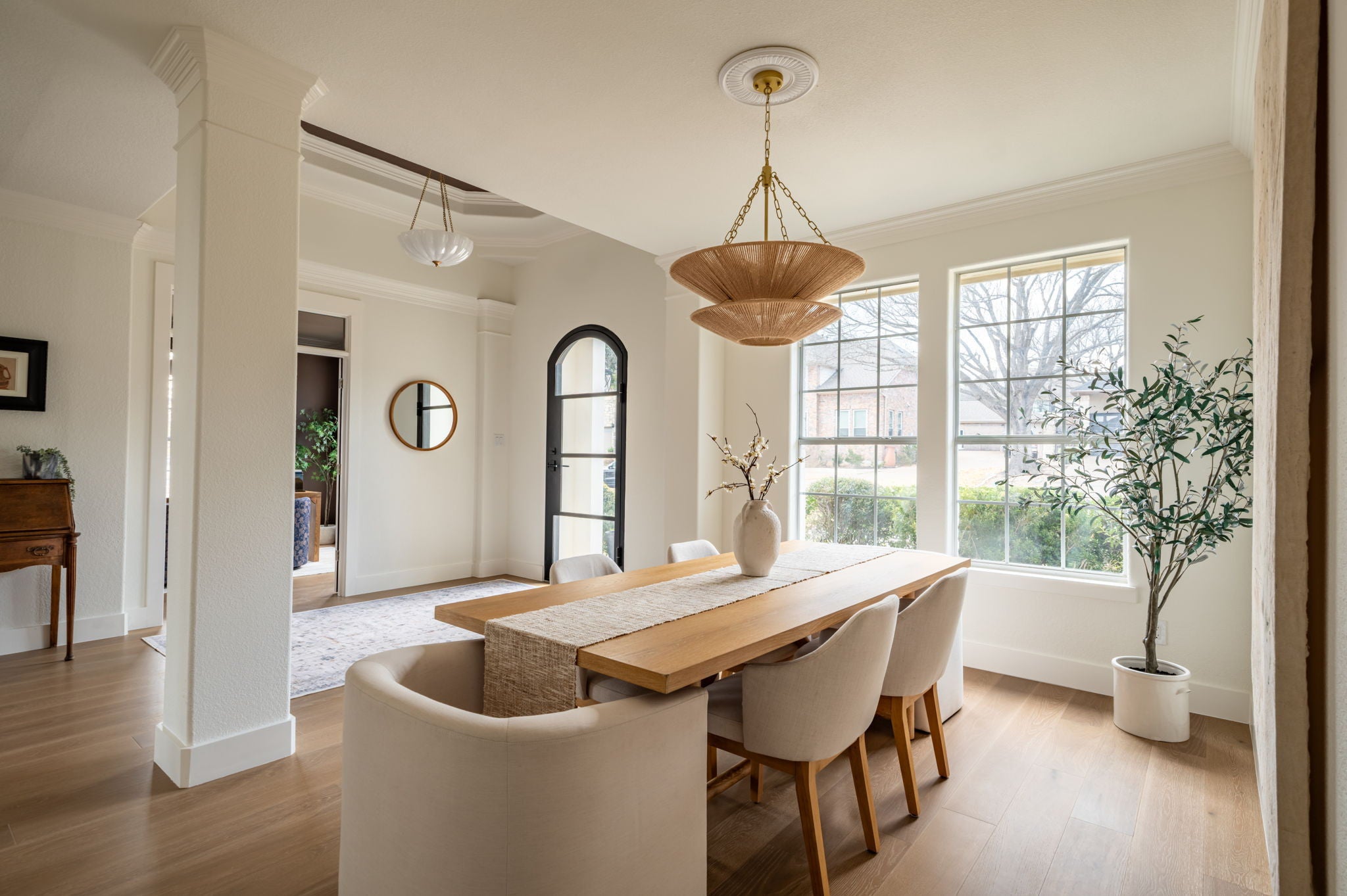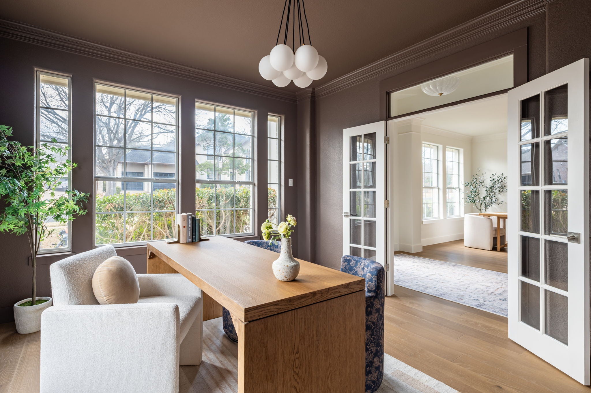 Blending French Chateau–inspired elegance with warm contemporary design, this remodeled single-story residence offers a dramatic, light-filled home office and four bedrooms in one of Northwest Austin’s most desirable enclaves—Jester in Austin—known for its scenic setting, peaceful atmosphere, welcoming community, and top-rated schools. The home features an all brick and stucco exterior and nearly $200,000 in recent upgrades, with every interior surface refined after optimizing the floorplan. Classic lines and inviting curb appeal set the tone. Reimagined by Making Modern Home, the interiors reflect a quietly luxurious yet livable feel. A grand foyer entered through a custom steel door opens to a sophisticated dining room and private office framed by French doors and a transom. The great room is filled with natural light and connects seamlessly to the outdoors through French doors. An elegant brick fireplace, integrated TV nook, breakfast area, and stylish bar create inviting gathering spaces. The chef’s kitchen opens to the great room and features warm wood cabinetry, Taj Mahal quartz countertops, handcrafted zellige tile, a professional-style 36" dual-fuel stainless range, and a generous island. Soft neutral palettes, designer lighting, wide-plank flooring, and refined moldings create a cohesive, elevated aesthetic. The spacious primary suite offers a private retreat with a walk-in closet and spa-like bath featuring a walk-in shower and freestanding soaking tub. Set on over a quarter acre lot, the backyard captures canyon views from the expansive composite deck and offers room for a future pool. A detached garage adds long-term potential, including the opportunity for a future studio above (buyer to verify). An optional, $633 membership to the Jester Club provides access to a pool, playground, tennis, pickleball and basketball courts. Greenbelt hiking nearby. Pre-Inspected and ready for your elevated Austin lifestyle!