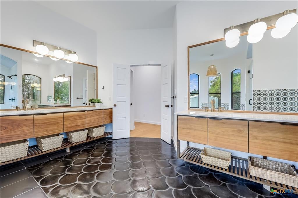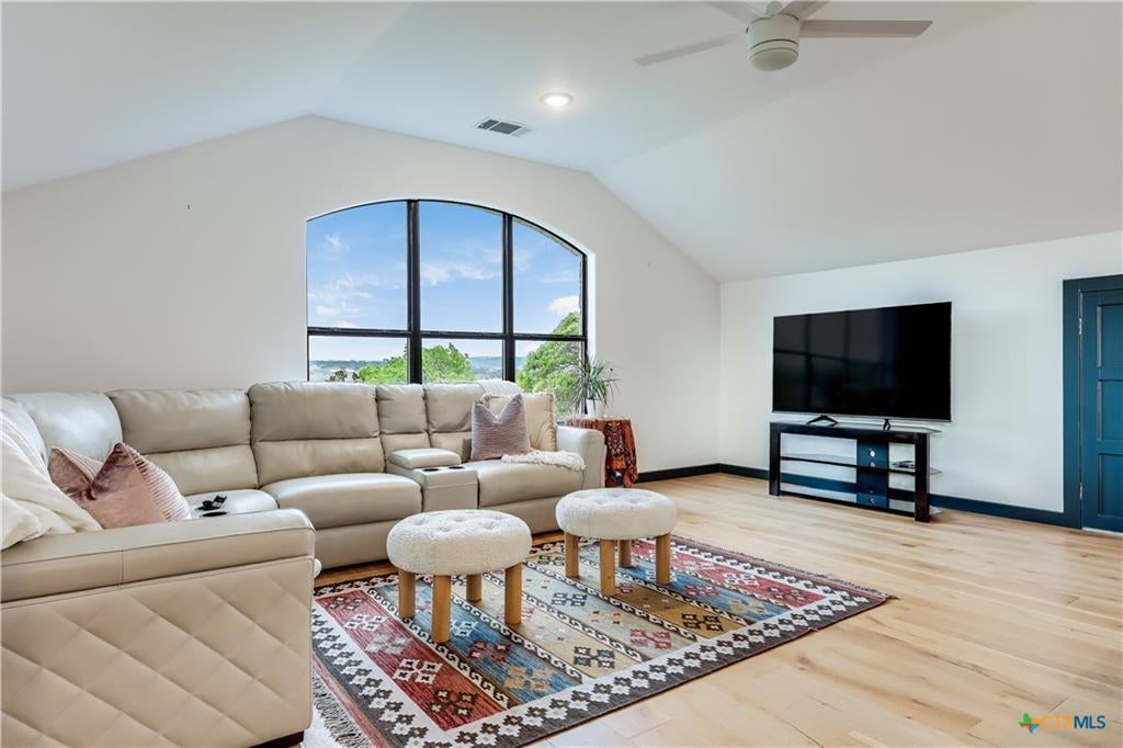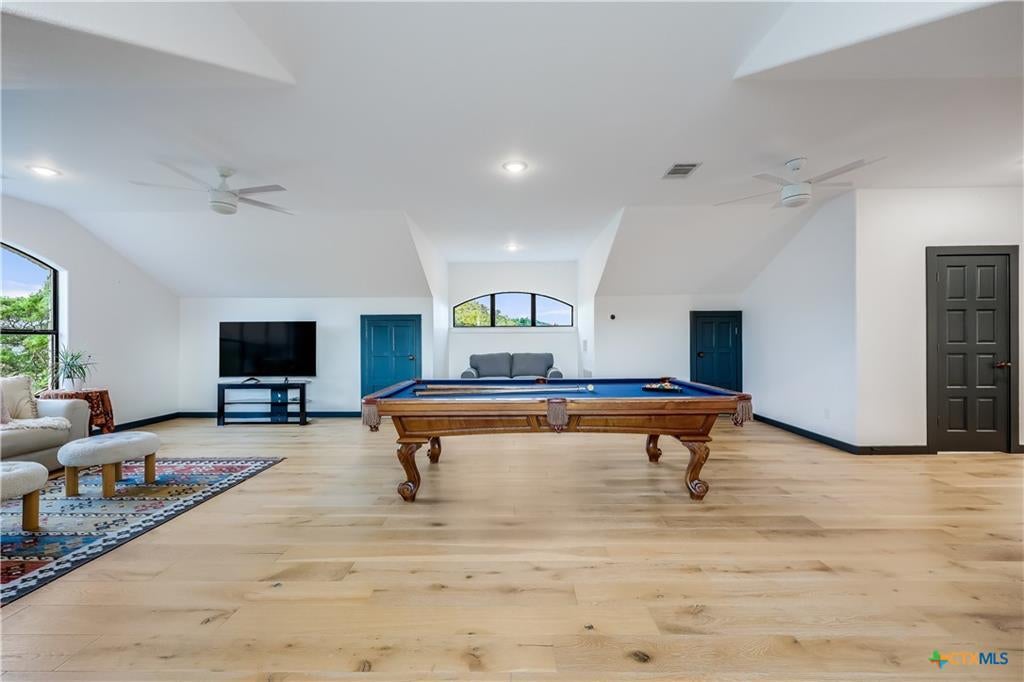**5+ acres on either side of the property can be yours as well!** Set on 5.53 acres of prime land in the gated Lone Mountain community, just north of Jonestown, this estate offers panoramic views and an unrivaled sense of privacy. Elevated on a high plateau, the home enjoys breathtaking vistas from every angle. The villa’s design combines modern luxury with natural materials, including earth tones and warm finishes. The home features spacious living areas with vaulted ceilings and multiple fireplaces, ideal for both everyday living and entertaining. A chef's walnut kitchen is at the heart of the home, and expansive outdoor spaces with a large pool, spa, and multiple lounge areas make this property perfect for hosting gatherings and enjoying year-round. A private trail leads to additional flat acreage with a fire pit and enough space to create private guest accommodations for multiple families, add another pool, pond, you name it! The main-level primary suite is a true retreat, complete with its own fireplace, dual walk-in closets, separate vanities, and even a hidden escape room beneath one closet. The upper level offers even more versatility with a bedroom, full bath, huge game room with a wet bar, office, and fully finished attic closets - with stunning views from every window! Additional features include a 3-car garage with updated flooring, a heated/cooled workshop, and a secondary fence surrounding the perimeter with 5 access gates, two of which are 14 feet tall for larger vehicles. Recent upgrades include a 2,500-gallon water storage tank, a 2Hp water pump, new pool equipment, and upgraded electrical systems, ensuring peace of mind and efficiency! This property is a rare find, offering a perfect balance of luxury, seclusion, and modern convenience, all within a coveted location. **Financing incentives available!**