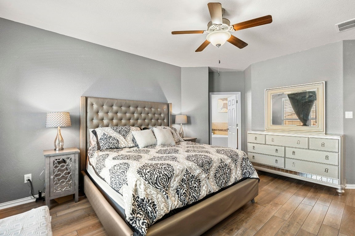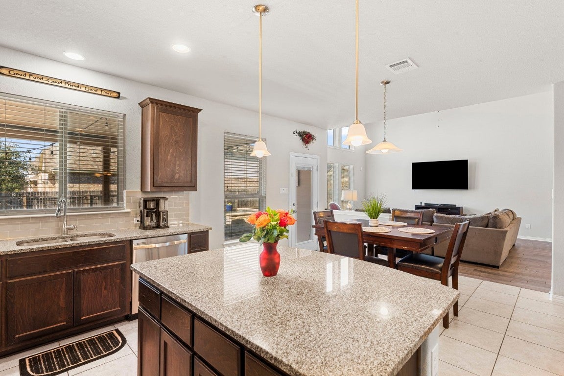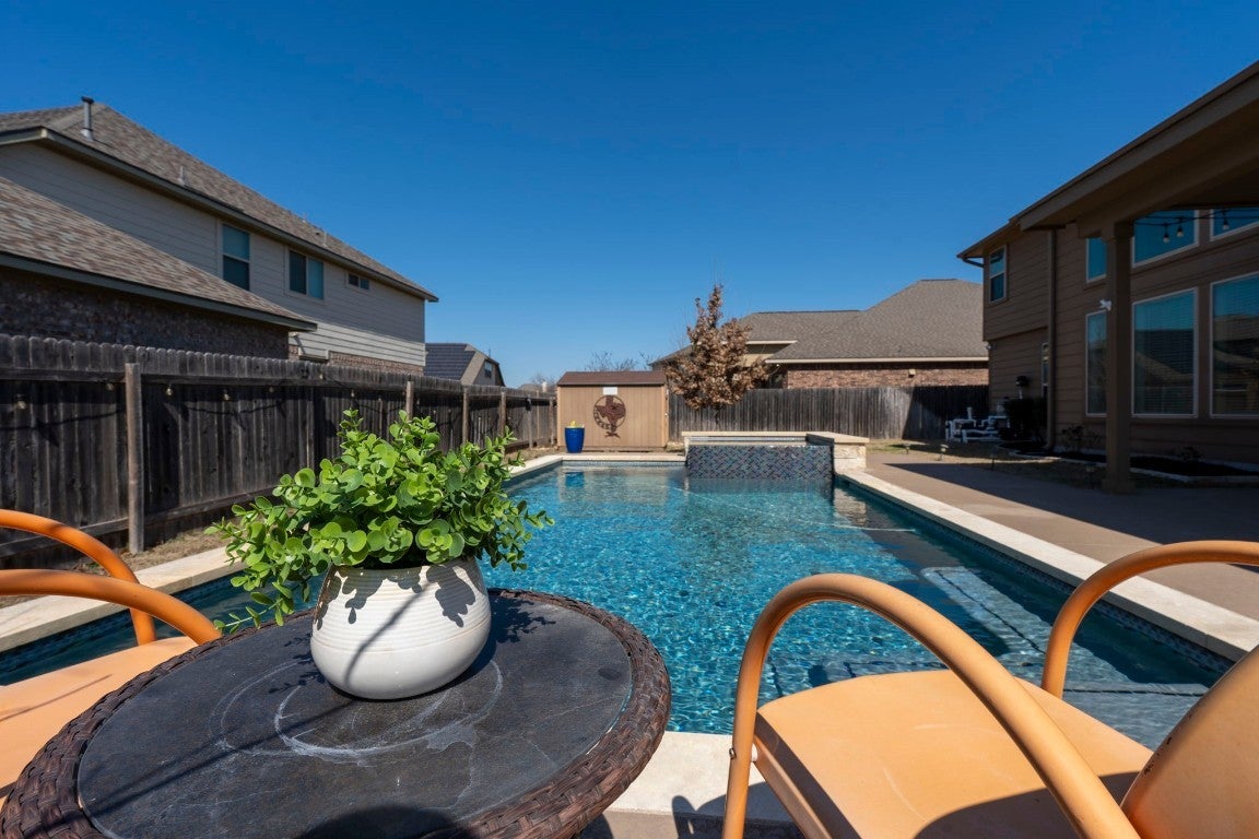 Sought after Wilshire St. Charles floor plan with 2 Full bedrooms with baths, perfect for multi-generation families. Nestled in the highly sought-after Black Hawk community. This 6-bedroom, 4.5-bath home spanning an impressive 4,489 square feet, designed for comfort, entertainment, and effortless living. Built in 2016, this exquisite residence offers a thoughtfully designed layout with multiple living spaces, including a spacious game room, a secondary play/TV room, a dedicated office downstairs, and an additional built-in office space upstairs—perfect for working from home or managing a busy household. Primary bedroom downstairs, additional bedroom with full bathroom downstairs perfect for extended families. The heart of the home flows seamlessly into an extended covered patio overlooking a breathtaking backyard oasis, complete with a sparkling pool and relaxing hot tub, ideal for unwinding or hosting unforgettable gatherings. A spacious three-car garage, complete with a Tesla charging station, adds to the home’s modern convenience. Every detail of this home has been crafted for both function and luxury, making it the perfect retreat for families, entertaining guests, or simply enjoying the best of Texas living. Enjoy all the amenities Blackhawk has to offer including resort like pool, fitness center, clubhouse, sport courts, walking trials, pickleball court coming soon. Located in a prime Pflugerville location with excellent schools, shopping, and easy access to major highways, this home is a rare gem you won’t want to miss. 1ught after Wilshire St. Charles floor plan with 2 Full bedrooms with baths, perfect for multi-generation families.