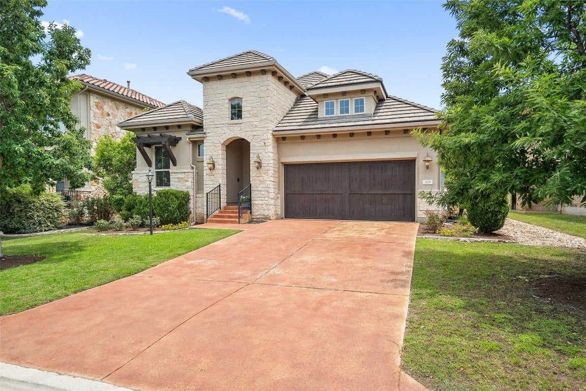 Experience the ultimate lifestyle with unparalleled amenities in Lakeway's sought after Rough Hollow community. 209 Maxwell Way is privately tucked away in a secluded enclave on a large level lot with backyard views of nature. Well cared for and barely lived in, this stunning single story home was designed with both elegance and functionality in mind. Featuring a seamless floorplan, enhanced by high ceilings and abundant natural light, this low maintenance property offers a large open concept chef's kitchen, living and dining space that comfortably encourages gathering of friends and family. The kitchen anchors the home with a large granite-topped working island / breakfast bar, custom cabinetry, built-in double ovens, large pantry, propane cooktop, stainless appliances and ambient lighting. Options abound with a formal space (currently utilized as a billiards room), private foyer hallway entry, four bedrooms and three full bathrooms and an oversized laundry room. Hardwood flooring, recess can lighting, large windows with blinds, stone accents throughout and an overall feel of elevated luxury surrounds you in this home. Stepping outside, the backyard is truly an extension of the interior; a deep covered back patio boasting a Texas size custom stone fireplace, outdoor kitchen with extras and an established native landscape package with hardscapes including pavers, rock accents and a full sprinkler system. Rough Hollow is renowned for its amenities including Lake Travis access, marina, yacht club, state-of-the-art fitness facility, Rough Hollow Grill (dining), community pools, playscapes, pavillion, tennis and pickleball courts, extensive hike and bike trails and a welcome center. Lakeway offers golf courses, clubs, activity center, neighborhood markets, marinas, shopping, dining and Texas nature experiences. 209 Maxwell Way is beautiful and is perfect as a primary residence or seasonal retreat. Come and experience a luxurious and effortless lifestyle.