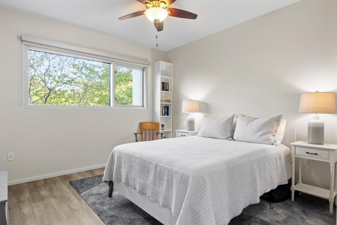 The Jewel at Barton Place earns its name the moment you step inside. The heart of this home — a brilliantly redesigned, brass-accented kitchen — is the showpiece that sets this residence apart. A modern gem, it anchors the entire living space with warmth, sophistication, and a level of detail rarely found at this price point. Located just steps from the Butler Hike and Bike Trail, this 2-bed, 2-bath condo delivers the kind of Austin living people wish for: a private perch surrounded by trees with the city’s best dining and entertainment minutes away. A coveted east-facing balcony tucked into the canopy sets the tone. From the sun-drenched living room, views of the trail and treetops frame the warm, inviting space. Inside, every detail feels intentional, from smart-home lighting to contemporary fixtures and updated hardwood-style LVP flooring. The kitchen features a waterfall quartz island with deep seating, professionally refinished two-tone cabinetry, brass hardware, a metallic honeycomb backsplash, under-cabinet lighting, a Kraus Workstation sink, and stainless appliances, including a gas range and vent hood. The dining and living areas flow easily around the island, creating a bright, social layout. A newer stacked LG washer and dryer and an updated water heater add everyday convenience. The primary suite feels calm and welcoming with designer paint tones, blackout roller shades, and an ensuite bath with a dual vanity, walk-in shower, and deep soaking tub. The second bedroom works perfectly for guests or a home office. Barton Place elevates daily living with a saltwater pool, fitness center, community garden, rooftop terraces, concierge, and secure underground parking (two large side-by-side spots). The guest suite and gym are conveniently one flight down, and an Urban Storage Unit is included. Modern, connected, and surrounded by nature — The Jewel at Barton Place is a rare find above the trees.