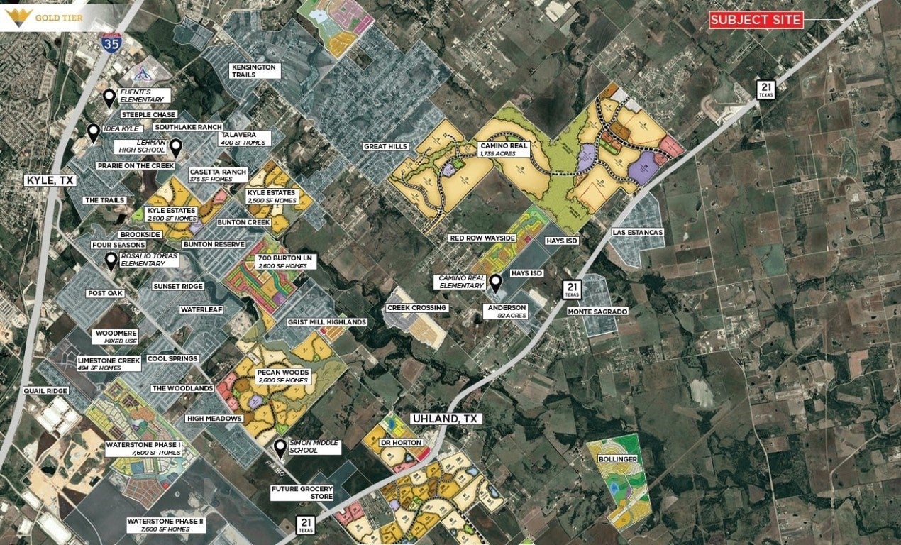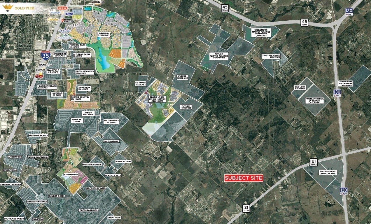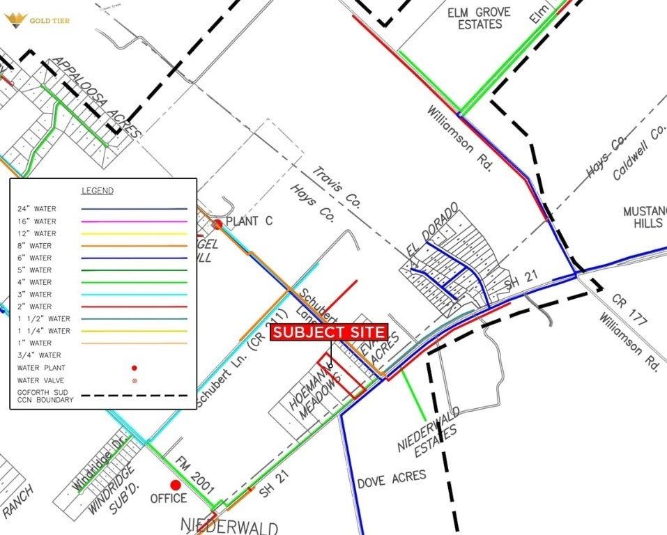 Gold Tier Real Estate is pleased to present a prime 10-acre property located along the highly traveled Highway 21 in Kyle, Texas. With approximately 330 feet of frontage and a daily traffic count of 19,178 vehicles according to TXDOT, this site offers excellent visibility and accessibility. Utilities include 3-inch and 6-inch water lines provided by Goforth SUD, though prospective buyers should note that no sewer lines are available in the area, and a septic system will be required. The property’s zoning and jurisdiction enhance its development potential, with the frontage zoned as Light Industrial and the remainder situated in the City of Niederwald’s ETJ. This strategic combination provides flexibility for a variety of uses, including light industrial, manufacturing, storage, retail, and residential. Whether you're looking to develop or invest, this site is ideally positioned for success in one of Texas's growing regions. **Prospective purchasers are advised to conduct independent analyses of the property. The broker does not warrant the accuracy of any information provided.**