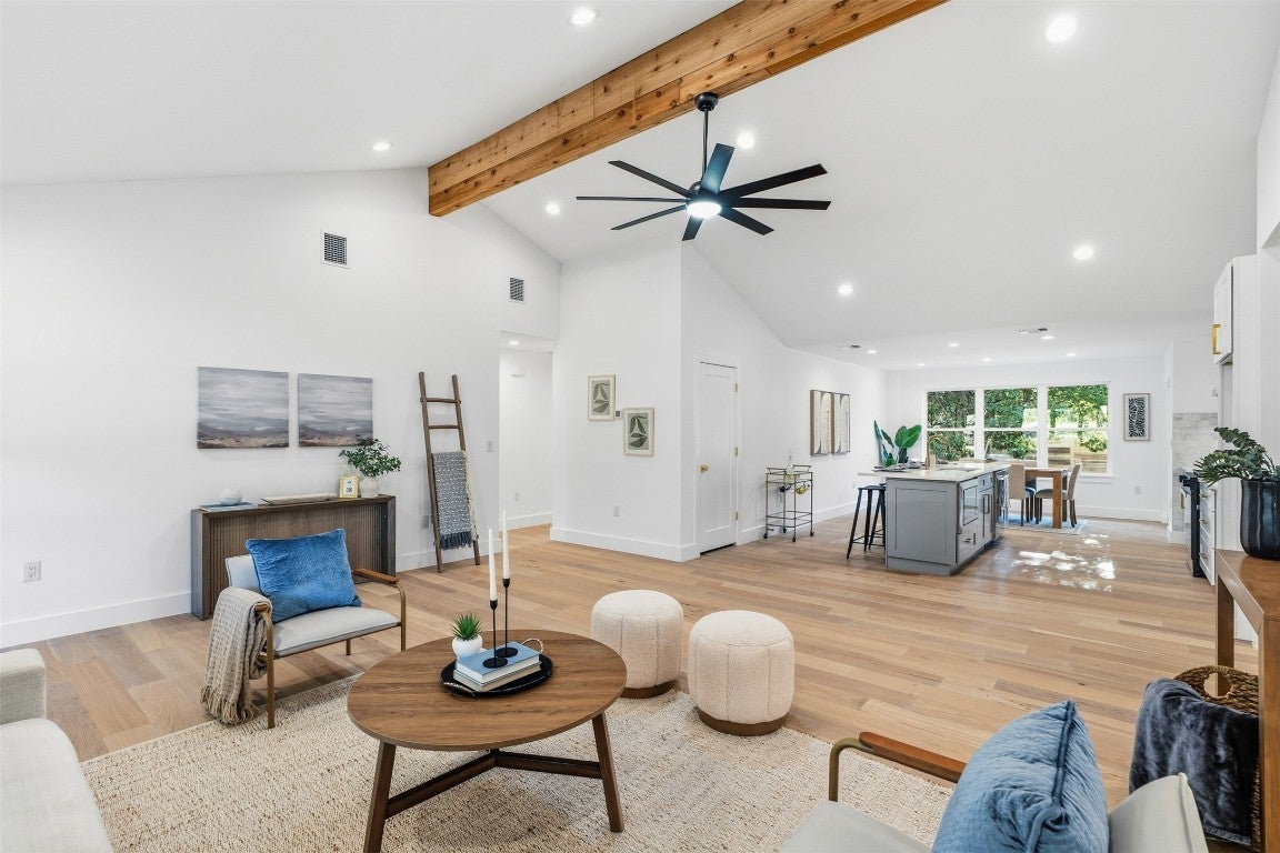 This 5 bedroom, 3 bathroom home has been completely reimagined from the ground up with a fully permitted, down-to-the-studs remodel—nothing was left untouched :: Step inside to a gorgeous great room, complemented by a vaulted primary suite along with 3 other bedrooms on one side of the home and an en suite with a full bath on the adjacent side of the home for visitors :: Every system has been updated with all new electrical, plumbing, roof, insulation, drywall etc :: Enjoy a beautifully large landscaped yard featuring a new driveway and fresh sod :: This home offers the sophistication of new construction with the character of a thoughtfully reimagined property :: Buyer to verify all measurements and mls details