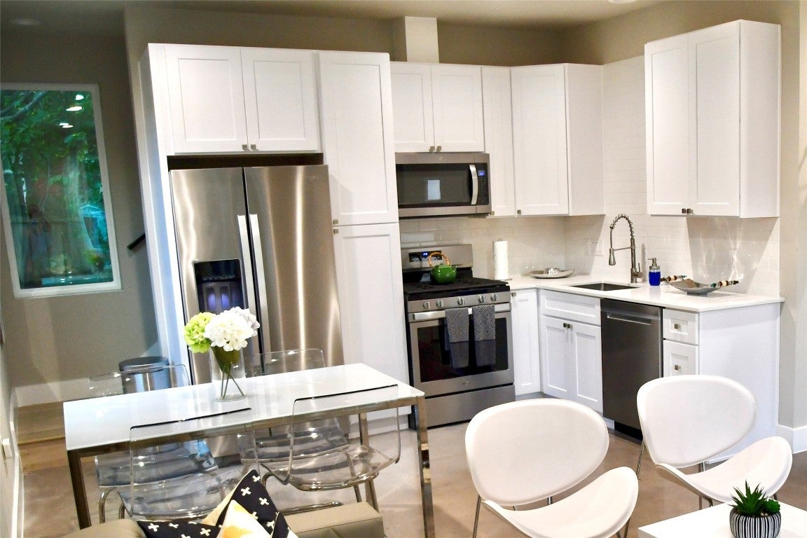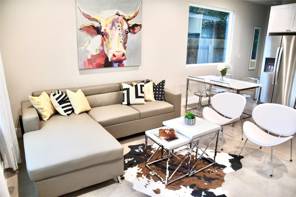 FURNISHED RENTAL. This gorgeous modern home is available to rent month to month. The owner pays HOA dues, fiber speed internet & lawn maintenance. All utilities are included. The broker is related to the Property Owner. Live just 10 minutes away from UT. Gorgeous modern stylish-modern house. Downstairs main suite with walk-in shower. Upstairs are 2 additional bedrooms, perfect for family or guests. All bedrooms have blackout draperies, & ceiling fans. Home is fully furnished: Fridge, washer/dryer in unit, all linens & kitchenwares, incl. a Nespresso coffee machine. The main suite has a queen bed, a queen-sized bed in the guestroom, 2 twin beds in the second guest room, and a Sectional cough (that expands to a queen bed). Stream away with LED television downstairs—lounge furniture on the patio. The exterior has a ring camera. 2 driveway parking. Grocery stores, gas stations, pharmacies, restaurants, Starbucks, etc., are just a few minutes away.