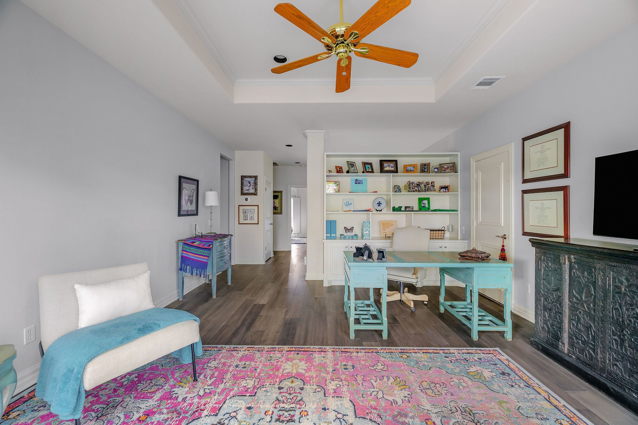 Located within the gated community of Davenport West, 3705 Dogwood Creek offers refined privacy, thoughtful upgrades, and access to top-rated Eanes Independent School District schools and walking distance to Bridge Point Elementary. Set on a lushly landscaped .31-acre homesite, this residence is surrounded by mature trees and features a resort-style pool and spa completed in 2020. The flexible floor plan includes two bedrooms on the main level, including a privately situated primary suite overlooking the backyard. Upstairs, you’ll find two additional en-suite bedrooms along with an expansive game or media room. A comprehensive kitchen renovation completed in 2020 showcases premium Wolf appliances, Taj Mahal quartzite countertops, and an oversized center island. Additional recent improvements include wood flooring throughout the main level (2020) and Pella windows and doors installed between 2024–2025. The primary bathroom was reimagined in 2024 with imported Moroccan tile, Taj Mahal quartzite surfaces, and a statement soaking tub. All secondary bathrooms are connected to bedrooms and have also been tastefully updated within the past five years. An oversized garage, generous storage throughout, and a spacious laundry room further enhance the home’s functionality. This is a rare opportunity to own an extensively updated home in one of Westlake’s most desirable gated communities.