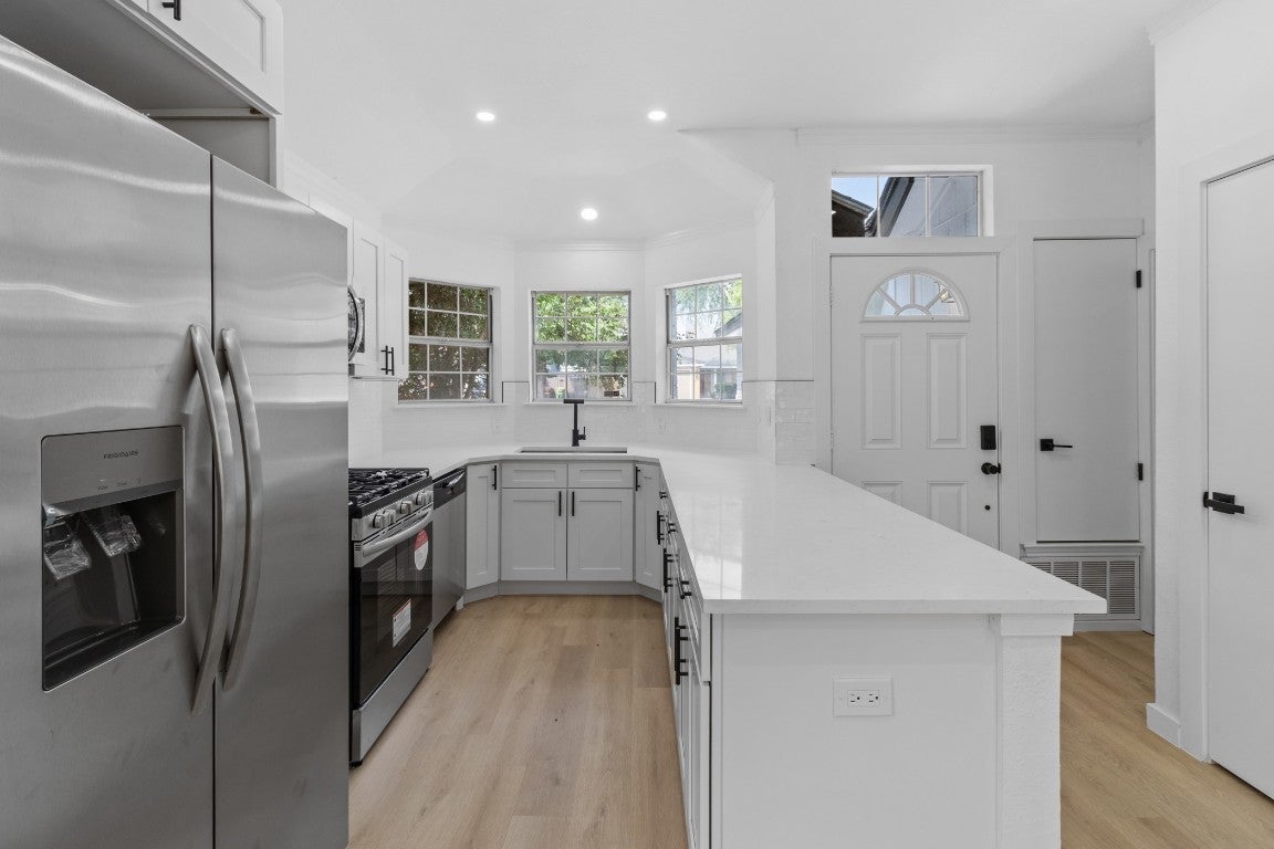 Modern Elegance Meets Comfort in Round Rock Welcome to 1701 Southwestern Trl—a beautifully renovated 3-bedroom, 2-bathroom home nestled in the heart of Round Rock. This residence seamlessly blends contemporary design with everyday functionality, offering an inviting space for both relaxation and entertainment. Step inside to discover an open-concept layout adorned with luxury vinyl plank flooring and abundant natural light. The gourmet kitchen boasts quartz countertops, shaker-style cabinets, and stainless steel appliances, making it a chef's dream. Retreat to the spacious primary suite featuring a walk-in closet and a spa-inspired bathroom with dual vanities.