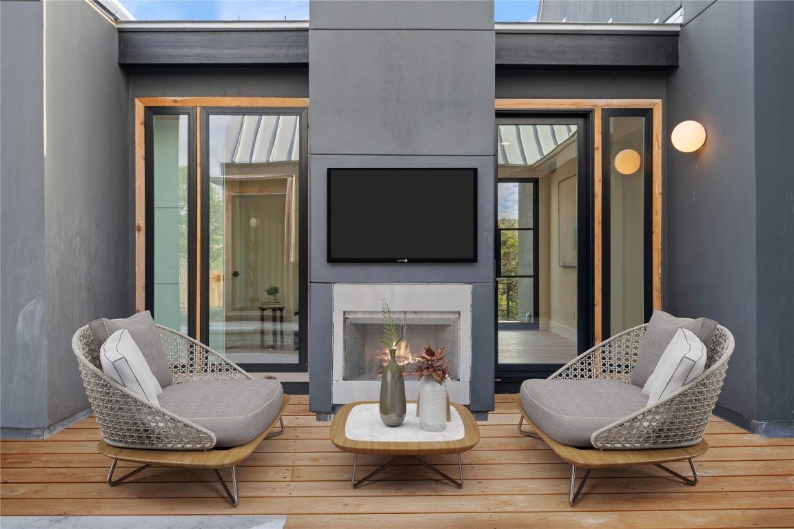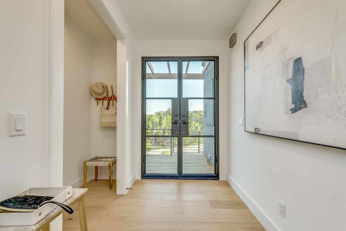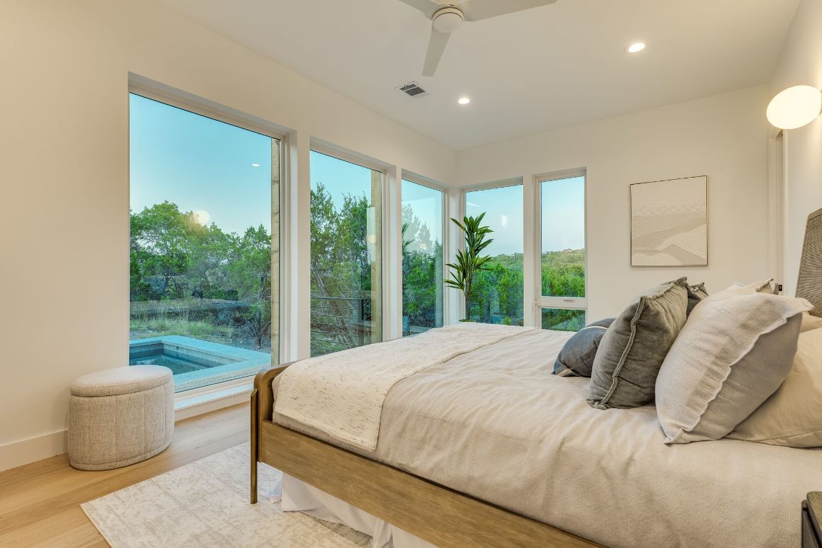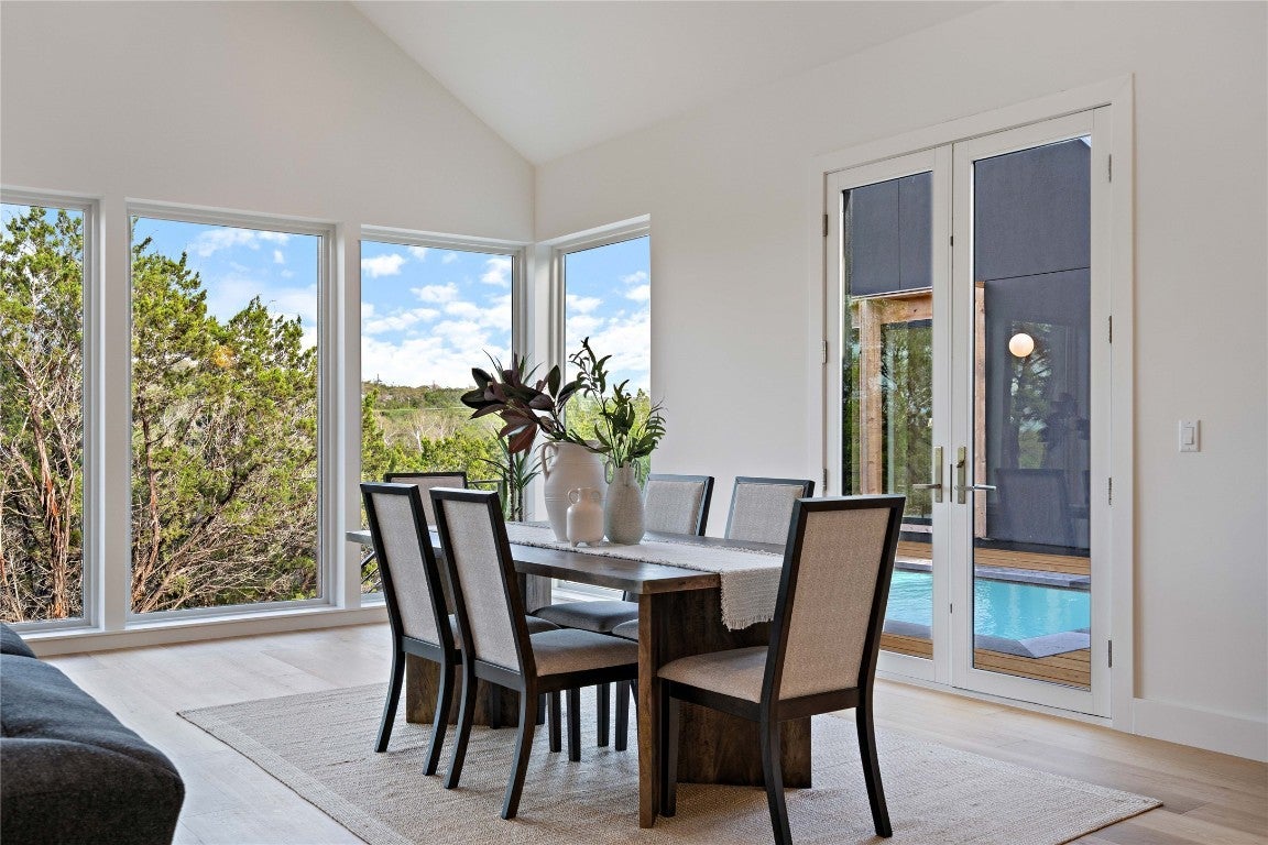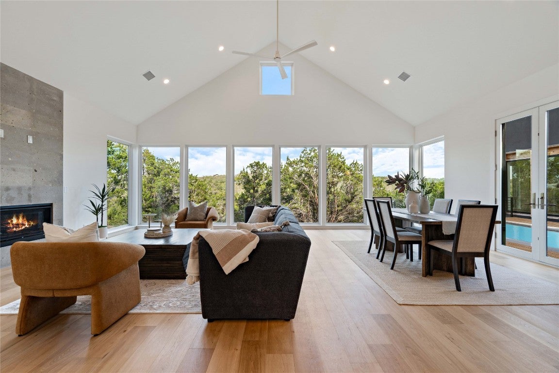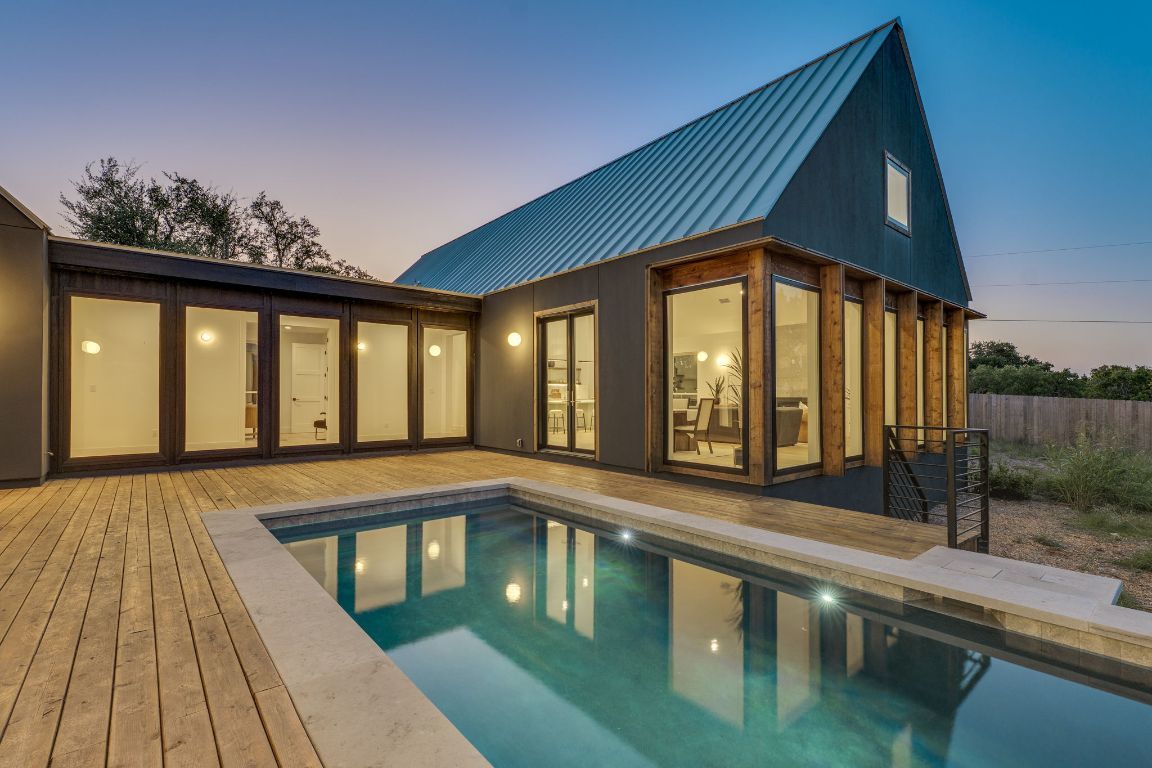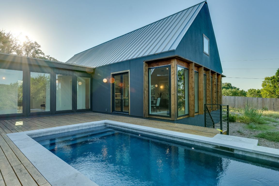 Welcome to this Mid-Century modern home, an impressive example of new construction that beautifully blends contemporary design with classic farmhouse elements. This single-story home features dramatic walls of windows that flood the interior with natural light, complemented by a sophisticated stucco exterior and sleek metal roof. Inside, you'll find four spacious Bedrooms &/0r Study and three and a half Bathrooms arranged in a thoughtful, open floor plan. The property boasts an oversized three-car Garage, providing ample space for vehicles and storage. Step outside to discover a private oasis with a sparkling pool, outdoor fireplace and private yard, perfect for both relaxation and entertaining. Site plan to add Guest House at end of driveway is an optional addition. This exceptional residence is one of just four homes in an exclusive and secluded private enclave, offering the prestige of an Austin address with close access to S. Austin, Belterra and the Fitzhugh corridor, while being served by the highly-rated Dripping Springs schools. Homeowners will appreciate the financial benefits of a low tax rate and connected to MUD water. With no HOA restrictions, you're free to personalize this extraordinary property to your exact preferences, making it truly your own Retreat. Can have 1 horse/1.5 acres. Additional 3 acre parcel can be purchased. Standard Texas Builder Warranty 1-2-10 conveys.