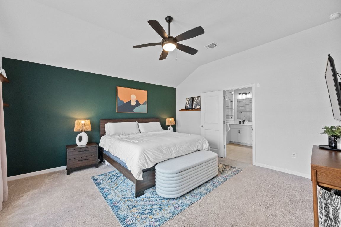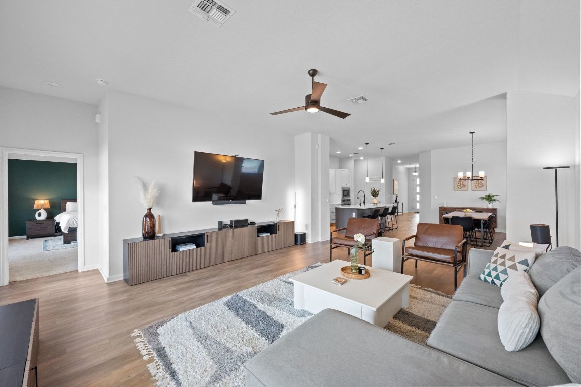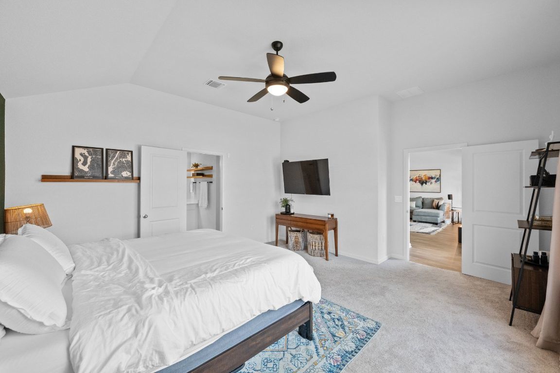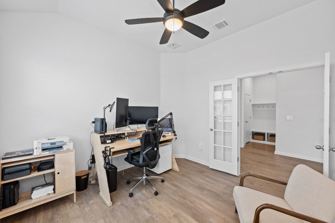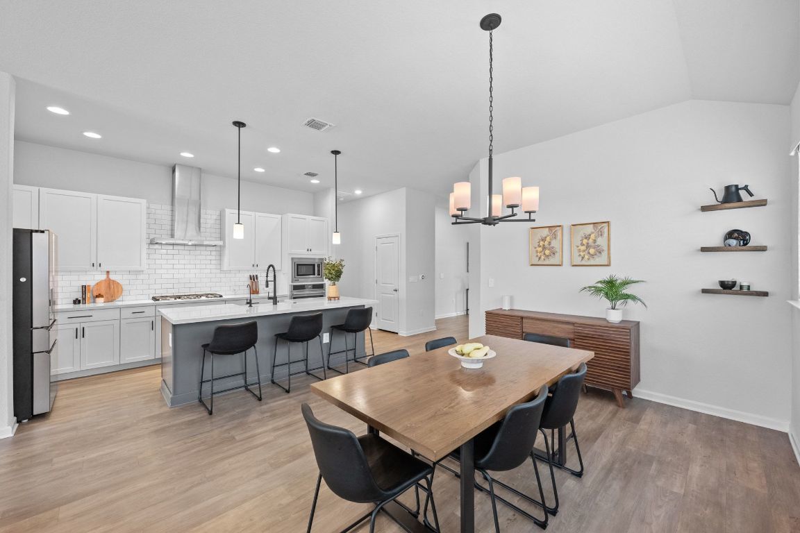 Move-in ready, this upgraded single-story home in Easton Park boasts a 50-foot lot and nearly $60K in design center upgrades. A chef’s kitchen with GE Cafe appliances and a quartz-clad island anchors the open-concept layout. The private, extended owner’s suite features a spa-like super shower, dual vanities, and a generous closet, while three additional bedrooms and a dedicated study/flex space provide flexibility for kids, guests, and your home office. Practical upgrades include a tankless gas water heater, gas stub on the patio, water softener loop, bidet toilets, and structured wiring. Durable luxury vinyl plank flooring spans the main living areas, and native landscaping frames the covered patio and fenced yard. Enjoy Easton Park’s resort-style amenities—clubhouse, pool, parks, trails, and community events—just moments away.