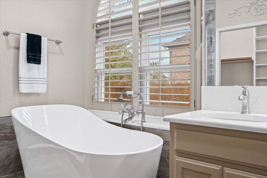Rare opportunity in one of the most desirable sections of Shady Hollow. This gorgeous single-story home sits on a .42 acre lot and features a sparkling pool and spa. Offering 3 bedrooms, 2 bathrooms, plus a dedicated office, the open-concept layout provides flexible living with 2 living areas and 2 dining spaces. Soaring ceilings welcome you into the foyer, where the formal living and dining rooms showcase crown molding, wood-like flooring, and plantation shutters that fill the home with natural light. The floor plan flows seamlessly into the gourmet eat-in kitchen, complete with a center island, granite countertops, and abundant cabinet and counter space. Off the kitchen, the spacious family room features a cozy fireplace and views of the stunning backyard oasis. A dedicated office sits just off the family room, enhanced with built-ins and its own fireplace—perfect for work or relaxation. The large primary suite offers a wall of windows and a beautifully updated en-suite bath with dual vanity, custom tile work, walk-in shower, and a modern soaking tub for a spa-like experience. Two secondary bedrooms and a full hall bath are privately tucked away on the opposite side of the home. The backyard is an entertainer’s dream, featuring pool, spa, a large covered patio, expansive deck, generous yard space, and a new privacy fence under the comfort of mature shade trees. Additional highlights include recent mechanical updates, a whole-home generator, and a parking pad behind a double gate—an exceptional combination of comfort and convenience. Shady Hollow residents enjoy access to four amenity centers offering Capistrano pool, playgrounds, nature preserve, hiking trails, dog park, pickleball, tennis, and basketball courts. Zoned to top trio Baranoff Elementary, Bailey Middle School, and Bowie High School.