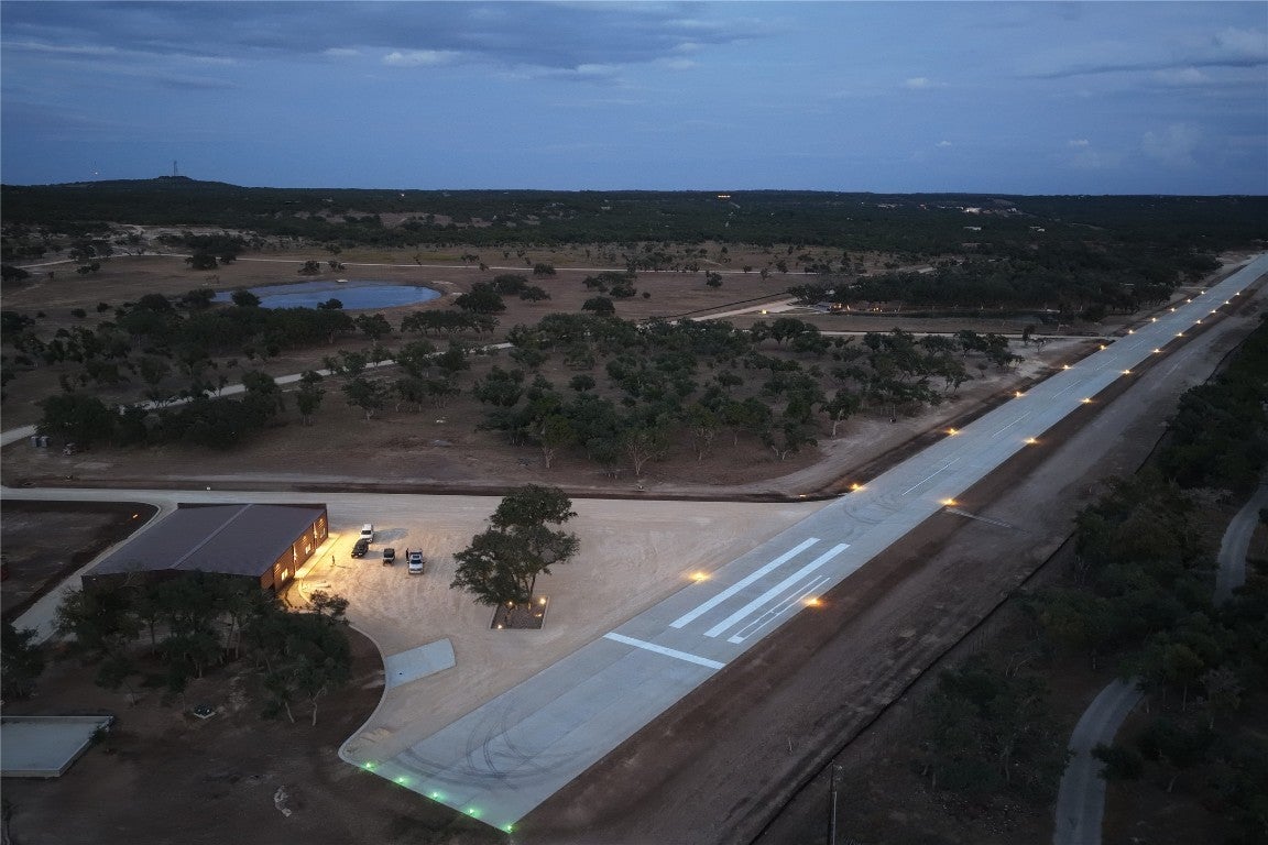 Welcome to a truly rare opportunity in Central Texas: a private airpark community set against the stunning backdrop of the Hill Country. This exclusive neighborhood offers a lifestyle unlike any other, built around a 4,700-foot concrete runway equipped with lighting. Designed for maximum flexibility, the runway accommodates everything from light aircraft to high-performance jets, with direct taxi access to your personal hangar or the expansive 80’ x 100’ community hangar. Lot sizes range from 1.5 acres up to 37 acres, providing generous space for custom homes, hangars, and outdoor living. The entire neighborhood features aircraft-friendly ribbon curb asphalt roads, allowing you to taxi straight to your doorstep. A spring-fed creek winds through the property, complemented by a tranquil 1.5-acre lake ideal for fishing, kayaking, or enjoying evenings by the fire pit. Enjoy over two miles of scenic running trails and a peaceful creekside gathering area. The fully equipped community hangar includes guest aircraft parking, a lounge, conference room, fitness area, and an on-site flight instructor. AV gas and jet fuel are available on-site. Entry to the neighborhood is private and secure, featuring a charming covered bridge and gated access. Annual dues include concierge and security services, landscaping, common area maintenance, and runway upkeep—ensuring a worry-free, aviation-centered lifestyle. This is more than a place to live—it’s a destination for those who live to fly.