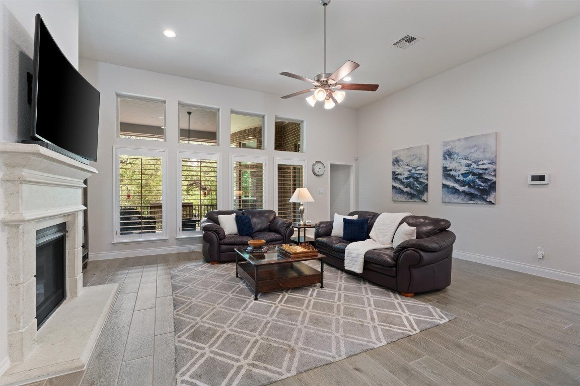 This lightly lived in, move-in ready, single-story home in the highly desirable Bryson community truly has it all! Offering 3505 sq ft with 4 spacious bedrooms and 3 full baths, the thoughtful layout also includes a dedicated study, a separate game room, a formal dining room, and a breakfast area—plenty of flexible spaces for work, entertaining, and everyday living. The open kitchen is fully functional, with the refrigerator conveying for added convenience. Step outside to your private back patio overlooking a serene greenbelt where you’ll enjoy peaceful views of birds and wildlife, no neighbors behind you! Inside, you’ll love the easy-care tile and hardwood flooring throughout (no carpet anywhere) and the spacious 3-car garage for vehicles and storage. The Bryson neighborhood is known for its resort-style amenities, year-round community events, and access to highly sought-after Leander ISD schools. Don’t miss this rare chance to own a large, single-story floorplan with every feature on your wish list in one of Leander’s most vibrant communities! The new Costco and Target are less than 5 minutes away!