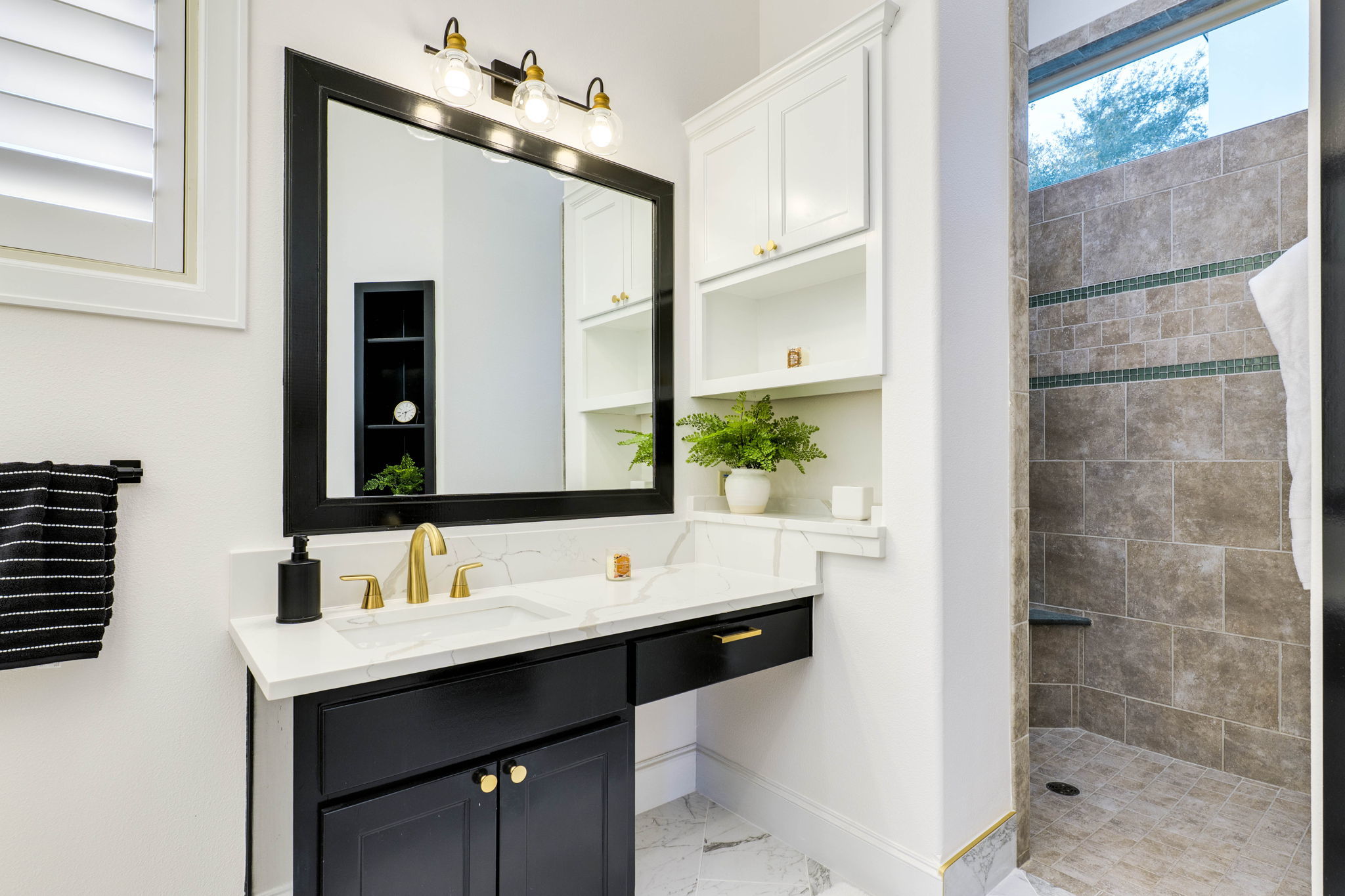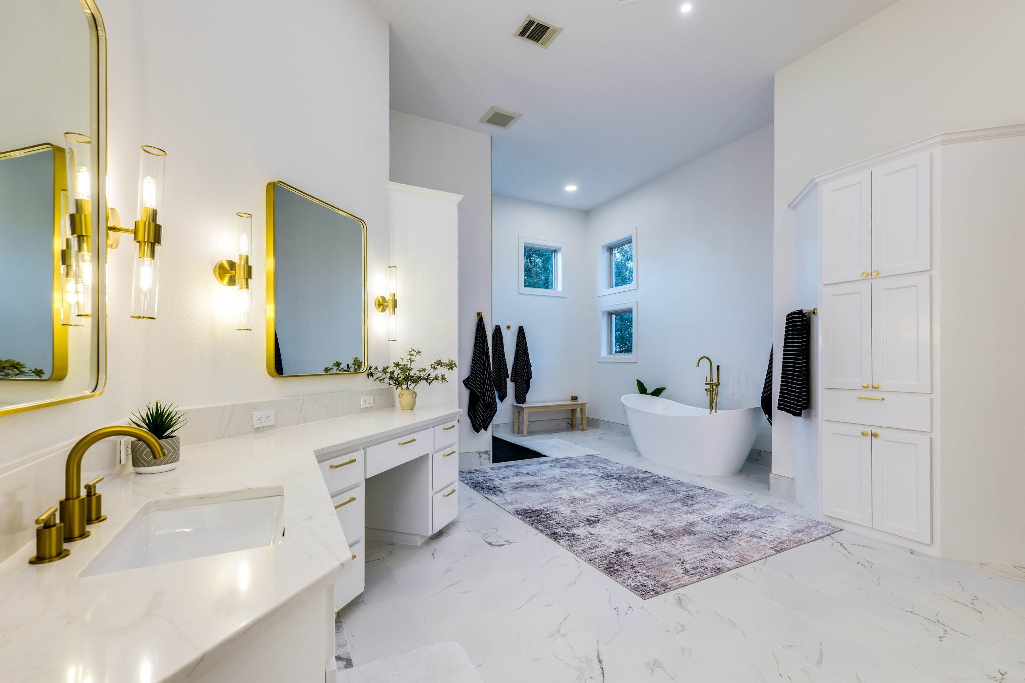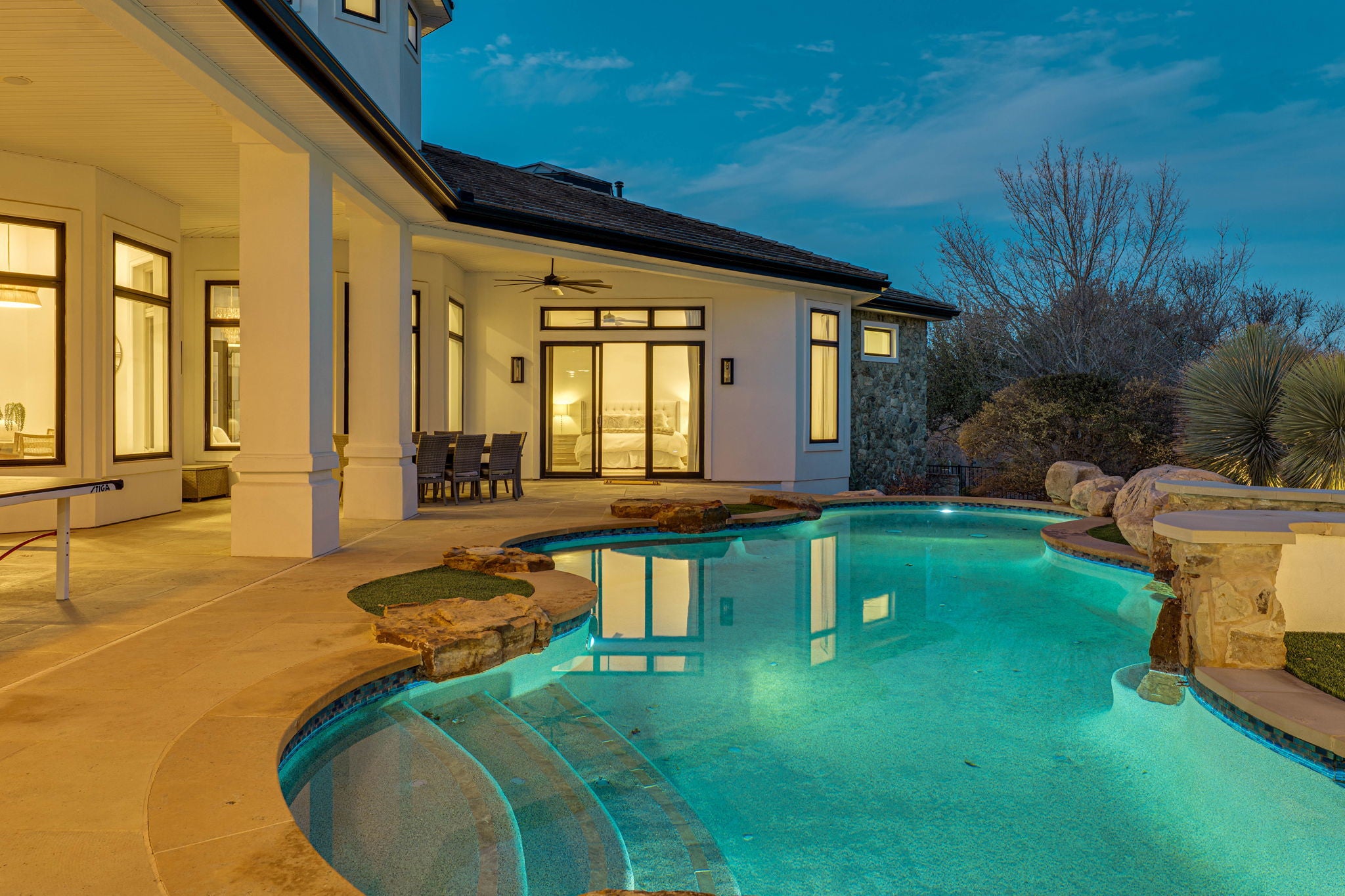 Welcome to refined elegance in this exceptional luxury residence located in the gated and exclusive Sierra Vista neighborhood of Steiner Ranch.A complete whole-home transformation delivers elevated modern living,with a luxury renovation touching nearly every major system and space,including insulation,HVAC,kitchens,baths,lighting,flooring,and outdoor amenities.Designed with uncompromising attention to detail,the home balances grand-scale entertaining with everyday comfort across 4 bedrooms,4 full baths,2 half baths,a private office,and a large media/game room.A grand foyer with custom chandelier opens to formal living and dining spaces with a tile-surround bar and serving area.The open-concept kitchen and family room feature a structural counter redesign,upgraded quartz countertops,wet bar,and a cozy gas fireplace with designer tile surround.The reimagined primary suite offers new flooring,structural enhancements,and a spa-inspired bath with upgraded fixtures and two expansive walk-in closets.A dedicated office provides an ideal work-from-home space,while a downstairs guest suite with renovated pool bath offers excellent flexibility.Upstairs includes two additional en-suite bedrooms and a spacious media/game room with wet bar and new carpet.Exceptional storage is found throughout.Step outside to a resort-style backyard featuring a custom 30’ x 30’ pool,outdoor kitchen,and entertainment pavilion with quartzite counters,steel roof,and wood tongue-and-groove ceiling.Amenities include,two refrigerators,heaters,electric fireplace,LED-lit pool,pickleball/sport court,playground,premium turf,eight-person hot tub,and gas fire pit.Additional highlights include a restored attic with spray-foam insulation,two new Carrier HVAC systems,Ecobee thermostats,full Cat5 wiring,tankless water heater installed in 2021,award-winning Steiner Ranch amenities,and top-rated Leander ISD.