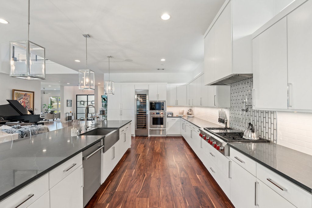 Built-In Oven, Dishwasher, ENERGY STAR Qualified Appliances, Exhaust Fan, Gas Cooktop, Disposal, Gas Water Heater, Microwave, Refrigerator, Water Softener, Tankless Water Heater, Wine Refrigerator, Convection Oven
