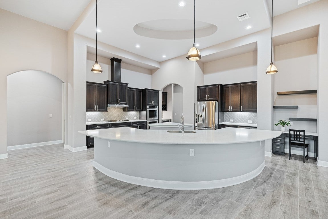 Located within the highly sought-after, gated Gabriel’s Overlook community in Georgetown, this light-filled custom estate offers exceptional space and flexibility. Built in 2018, the property features 6,000 total square feet with 7 bedrooms and 6.5 bathrooms across two residences. The main home offers 4,584 square feet with 5 bedrooms, 4.5 bathrooms, and a 3-car garage. A separate guest house provides an additional 1,416 square feet with 2 bedrooms, 2 bathrooms, and a 2-car garage- ideal for guests, extended family, or multigenerational living. Situated on a 4.172-acre lot with abundant wildlife and room to expand, the property makes a striking first impression with a majestic two-story entrance welcoming you home. Inside, thoughtfully designed spaces include a dedicated study and formal dining room with a coffered ceiling. At the heart of the main home is an expansive gourmet kitchen featuring a large center island, stainless steel appliances, double ovens, and a gas cooktop ideal for the culinary enthusiast. Just beyond, the spacious breakfast area overlooks the family room with a floor-to-ceiling stone fireplace, creating an inviting setting for casual dining and effortless entertaining. Abundant natural light fills the home, enhancing the sense of space and warmth throughout. The primary suite is a true sanctuary with a spa-like bath featuring a walk-through shower, separate tub, and double vanities, as well as a massive walk-in closet. The guest house features its own full kitchen, laundry room, living room, and living areas with newly installed carpet, creating comfortable and independent living quarters for guests or extended family. A rare blend of luxury living, natural surroundings, and everyday convenience makes this an ideal choice for those who appreciate wide-open spaces while remaining close to shopping, dining, and top-rated schools like Rancho Sienna Elementary. Schedule a private tour today to experience it for yourself.