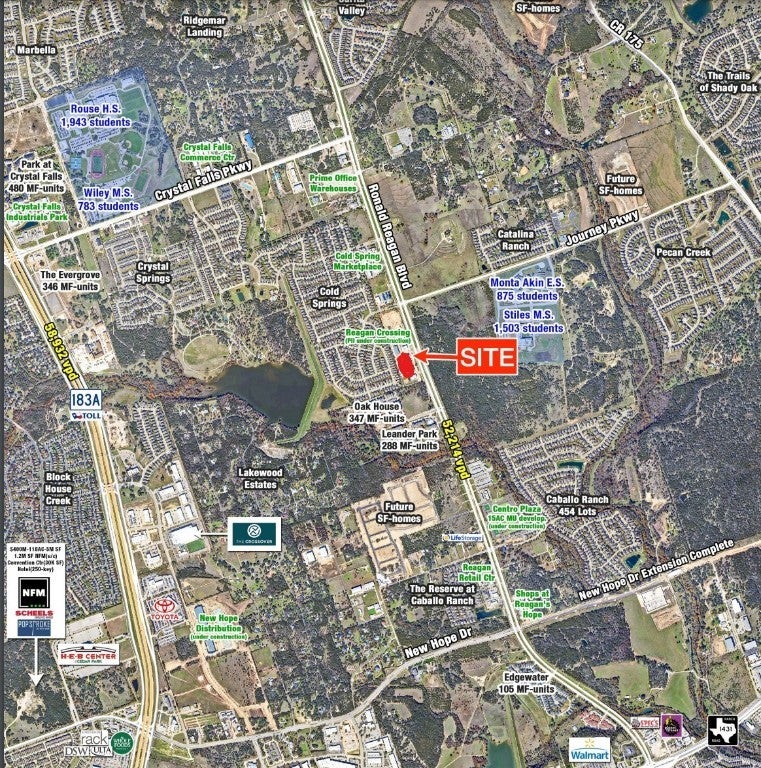 Prime Location for Office Leasing - Just 8 Miles North of the Apple Campus in Leander, TX Discover an exceptional office space in a thriving area ideal for businesses like Medical office, Insurance agencies, Real Estate firms, law practices, title companies, startups, tax professionals, IT consultants, or any service-oriented enterprises. Located on Ronald Reagan Blvd, this site boasts over 20,000 vehicles passing daily, ensuring maximum visibility and a business-friendly environment. Part of the Ronald Reagan Crossing development, this mixed-use, modern construction offers a dynamic blend of: 37,000 Sqft of medical and professional office space 45,000 Sqft of retail space 6,000 Sqft for drive-through businesses 10,000 Sqft daycare facility Situated in a high-density residential area with 2,500+ homes within 1.5 miles, this prime location sits at a signalized hard corner with a strong AM traffic flow. Ronald Reagan Blvd is also slated for expansion to six lanes, promising even greater accessibility. The project includes contemporary buildings with interior construction already underway, making this the perfect time to secure your spot in one of the most rapidly growing neighborhoods. Adjacent unit 504 is also available for lease with a total sqft of around 1890sqft. NNN is $13 per sqft