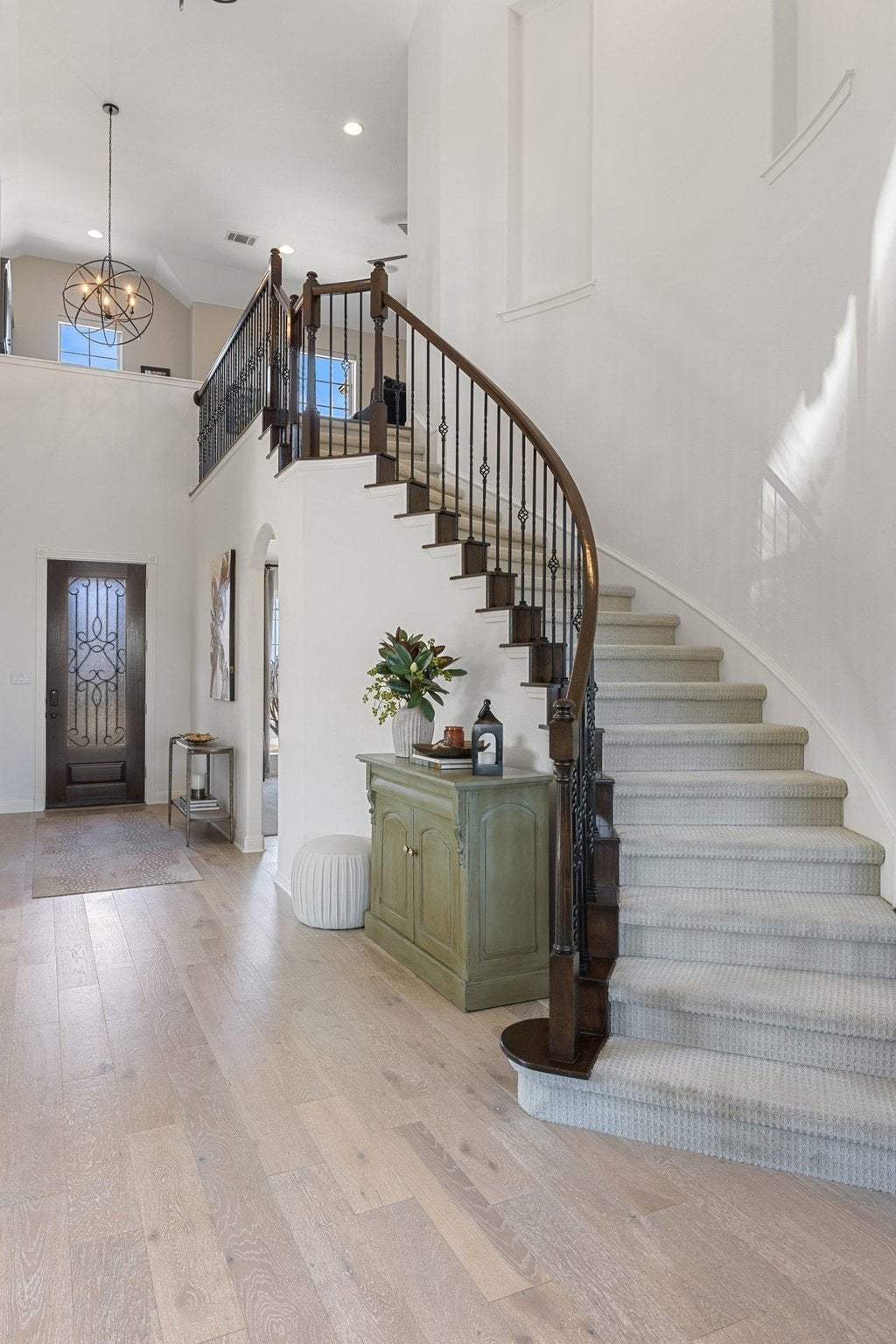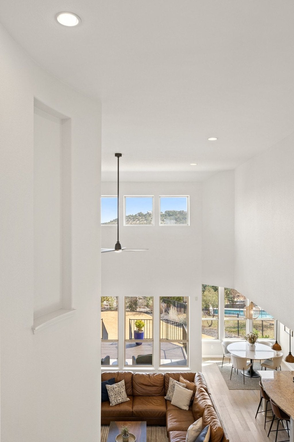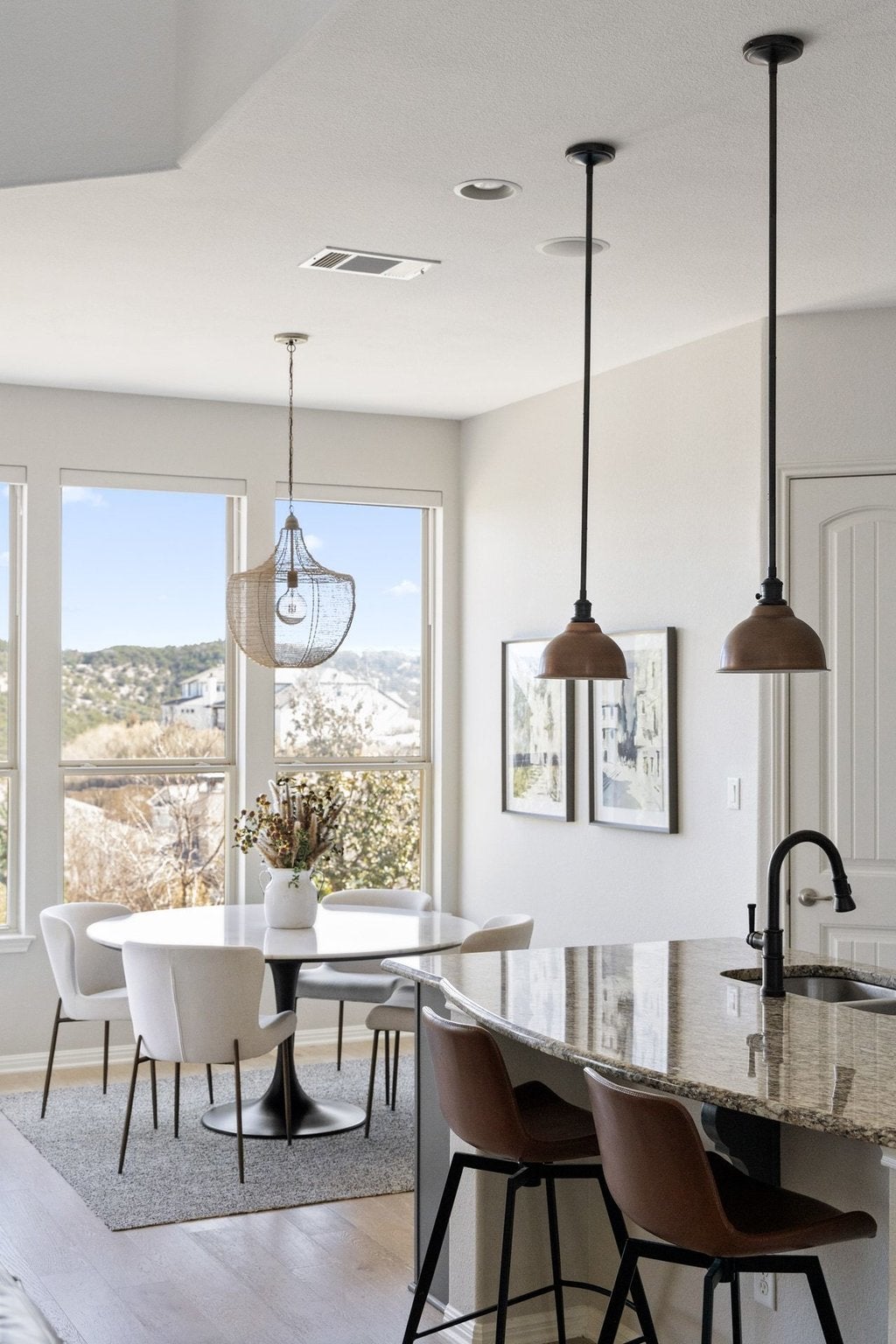 Hill Country views. Main-floor primary bedroom. Mother-in-law floor plan with only one step to enter! Welcome to 405 Baldovino Skyway in the heart of Rough Hollow. Thoughtfully designed and beautifully appointed, this 5-bedroom home plus dedicated office, with one bedroom currently used as a secondary office, offers 3.5 baths and nearly 4,000 square feet of refined living space filled with natural light, architectural detail, and sweeping vistas that define Lakeway living. The main level blends comfort and sophistication, featuring a serene primary suite and a private mother-in-law suite with full bath and walk-in closet, creating effortless flexibility for guests or extended family. A dedicated office provides a polished work-from-home setting without sacrificing bedrooms. The open-concept kitchen, dining, and living spaces are framed by expansive windows and soaring ceilings, creating an airy, elevated atmosphere that feels both grand and welcoming. Every gathering is set against the backdrop of rolling Hill Country views. Premium automatic shades for the primary bedroom are just some of the elevated finishes you'll find in this home. Upstairs, an expansive bonus living area with wet bar offers a refined retreat for media nights, entertaining, or relaxed evenings at home. Step outside and take in the views. The backyard offers ample space to design a custom pool overlooking the hills, creating the opportunity for a private resort-style escape tailored to your vision. Covered patio with automatic screens allow you to enjoy your outdoor space all year round regardless of the temperature! Living in Rough Hollow means access to premier amenities including multiple pools, splash areas, fitness facilities, hike and bike trails, tennis and sport courts, community events, and the Rough Hollow Yacht Club and Marina with Lake Travis access. Scenic. Elevated. Effortlessly functional. This is Lakeway living at its finest.