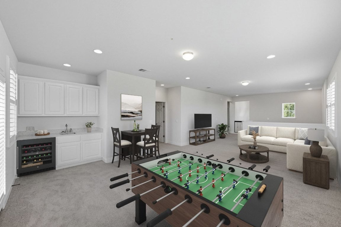 Spacious 4-Bedroom Home with Media Room, Wet Bar & Outdoor Living Spaces: Welcome to this beautifully designed 4-bedroom home that blends comfort, functionality, and style, (newly painted and new carpet installed). Featuring 2 full baths and 2 convenient half baths, this home offers plenty of space for both daily living and entertaining. Step into the dedicated office with elegant glass French doors—perfect for remote work or a quiet retreat. The open-concept floor plan connects the main living areas seamlessly, creating a bright and airy atmosphere ideal for gatherings. Upstairs, you'll find a generous second living area complete with a wet bar, perfect for entertaining guests or relaxing with family. A separate media room provides the ultimate space for movie nights or game days. Enjoy outdoor living year-round with a large covered back porch and a spacious second-level balcony—perfect for morning coffee or evening sunsets. This home is perfectly situated in a vibrant and convenient neighborhood, offering easy access to an array of local amenities. Just minutes away, you’ll find popular restaurants, H-E-B for all your grocery needs, and a variety of child daycares—making daily errands and routines a breeze. The area also boasts parks, fitness centers, and other essential services, providing a well-rounded lifestyle for families and professionals alike. Don’t miss your chance to own this versatile and inviting home with thoughtful upgrades throughout.