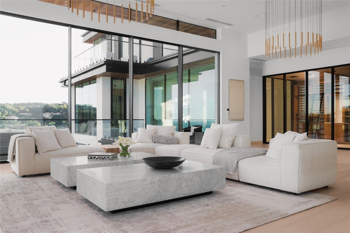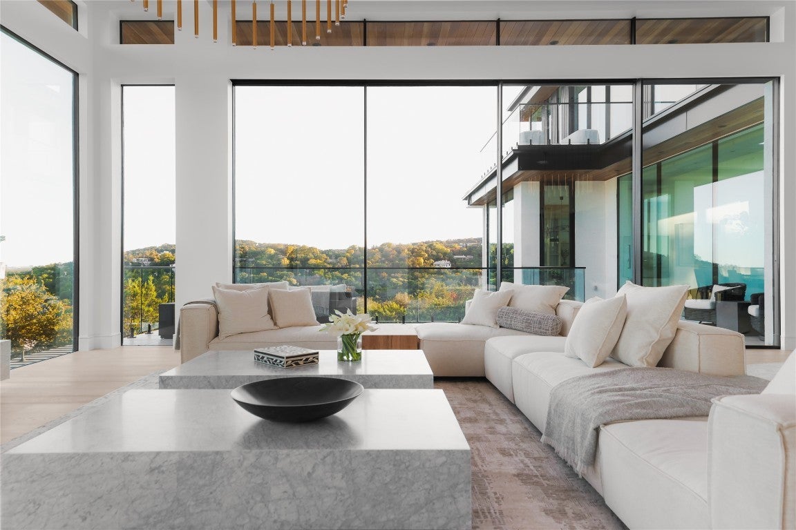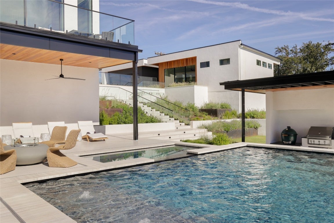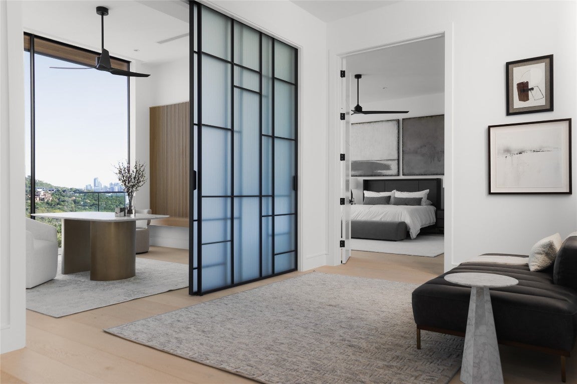 Newly completed, The Onyx is among the most significant residential offerings ever brought to market in Westlake Hills. Defined by rare elevation, sweeping downtown Austin views, and exceptional execution, this architectural estate delivers scale, presence, and privacy at a level few homes achieve. A secure, gated, and privately walled arrival sets the tone for the residence. Spanning approximately 11,000 square feet on nearly an acre, the home was built by Paradisa Homes with an uncompromising focus on proportion, durability, and enduring quality. Walls of glass frame the living environment throughout, including a custom Fleetwood Edge sliding system—the largest of its kind—opening to uninterrupted city and Hill Country views. Interior volumes are striking, with ceilings reaching up to 18 feet and light moving intentionally throughout the day. The kitchen is anchored by a 12-foot Milano marble island with Gaggenau appliances, complemented by a fully equipped catering kitchen with Thermador appliances and a glass-enclosed wine vault with approximately 600-bottle capacity. An entire level is dedicated to the owner’s suite, featuring a private lounge, office, dual walk-in closets, safe room, and a spa-like bath with soaking tub, oversized rain shower, and floor-to-ceiling glass framing downtown views. Additional amenities include a private theater, fitness studio with steam shower, library, full bar opening to the pool, elevator, and a fourth-floor Sky Parlor designed for indoor-outdoor entertaining. Outdoor living includes a resort-style pool and spa, cabana with swim-up bar, outdoor kitchen, pool bath, and expansive lawns. A detached guest house offers a kitchen, living space, and en-suite bedroom. Garage parking accommodates 6–12 vehicles with lift capability. Located in Eanes ISD and minutes from downtown Austin.