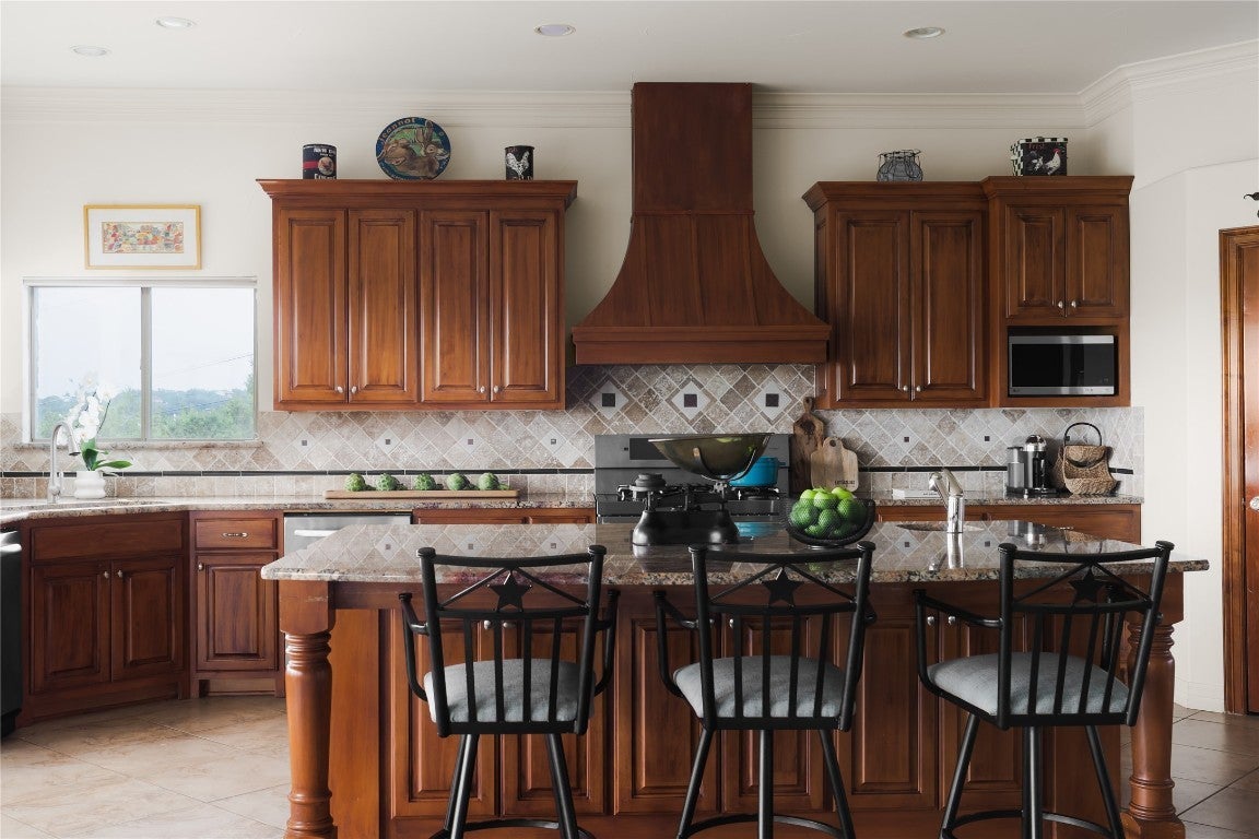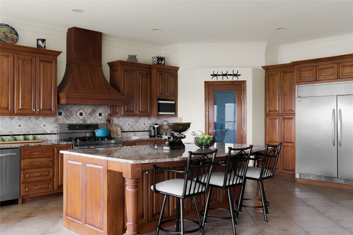 Built-In Refrigerator, Dishwasher, Disposal, Gas Range, Ice Maker, Microwave, Range Hood, Stainless Steel Appliance(s), Wine Cooler