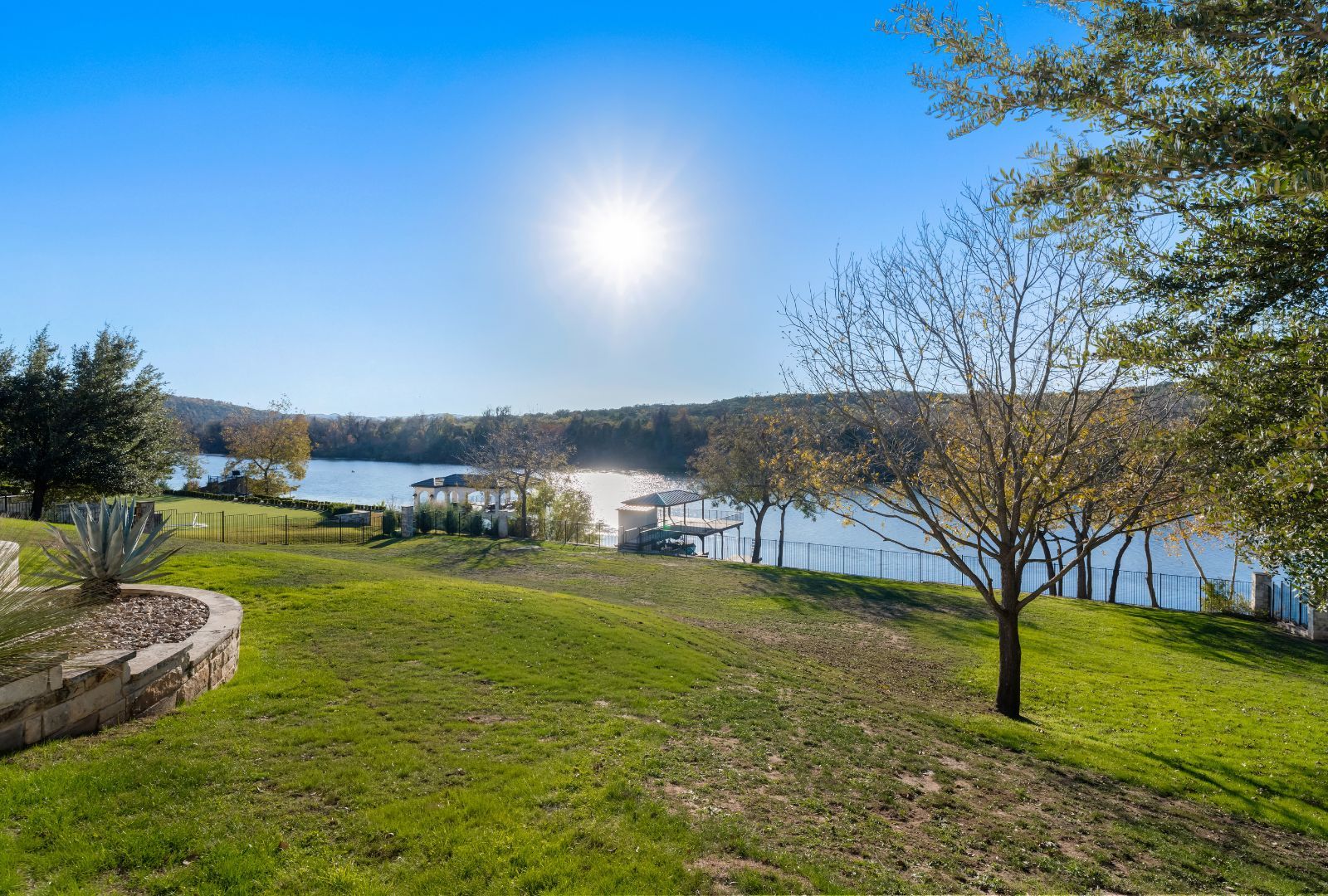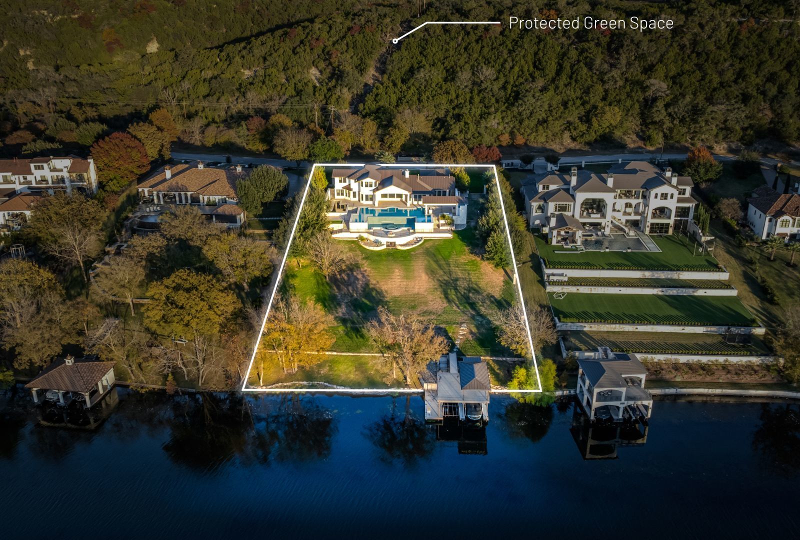 Set on over 2.5 acres with approximately 175 ft of Lake Austin waterfront, this exceptional property offers a rare combination of privacy, views, & lifestyle within the gated waterfront enclave of Bellagio in Steiner Ranch. Positioned near the end of the road, the home enjoys a uniquely peaceful setting, with the front of the property facing designated green space & the rear overlooking the lake and the protected Balcones Canyonlands Preserve across the water—creating a sense of openness & natural beauty that’s difficult to replicate. Steiner Ranch is one of Austin’s most sought-after communities, known for its top-rated schools, scenic trails, parks, & proximity to Lake Austin, while still offering convenient access to major employers, shopping, & dining. Bellagio sits among the most desirable sections of the neighborhood, prized for its gated privacy and direct waterfront access. The home features a highly functional and flexible floor plan with the primary suite, guest bedroom, and office on the main level, along with two living areas, including a spacious game room. Upstairs, you’ll find three additional bedrooms and two bathrooms, ideal for family or guests. Recently painted and lightly updated, the home presents a wonderful opportunity to personalize and tailor to your own style. Outdoor living is truly exceptional, highlighted by a large pool with swim-up bar, hot tub, fire pit, and multiple entertaining spaces. A koi pond and dramatic waterfall wall add visual interest & tranquility, while the manicured lawn gently slopes to the water, providing easy lake access. At the shoreline, a two-slip boat dock is topped by a covered party deck, perfect for enjoying lake days, sunsets, and views across the water to the preserve. With expansive lake views, protected natural surroundings, & a prime location within Steiner Ranch, this property offers a rare opportunity to enjoy true waterfront living in one of Austin’s most established & desirable communities.