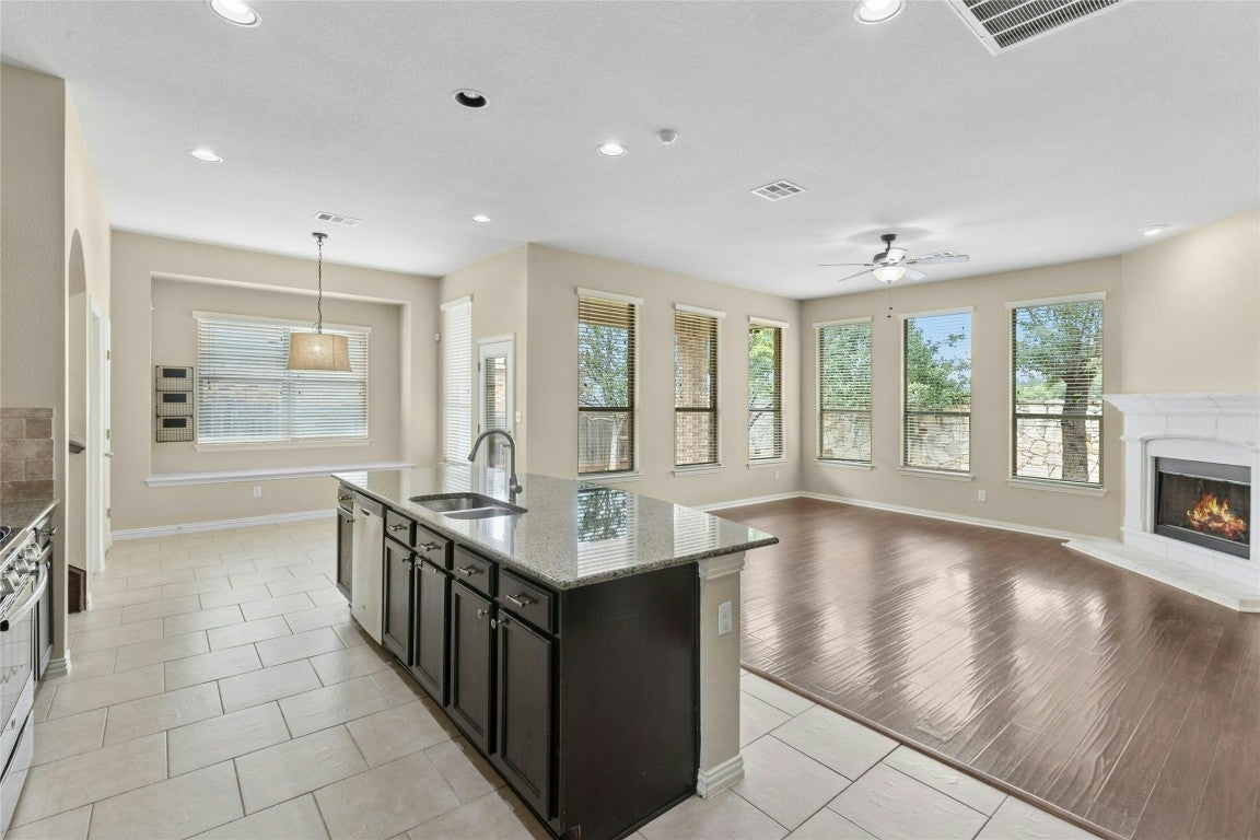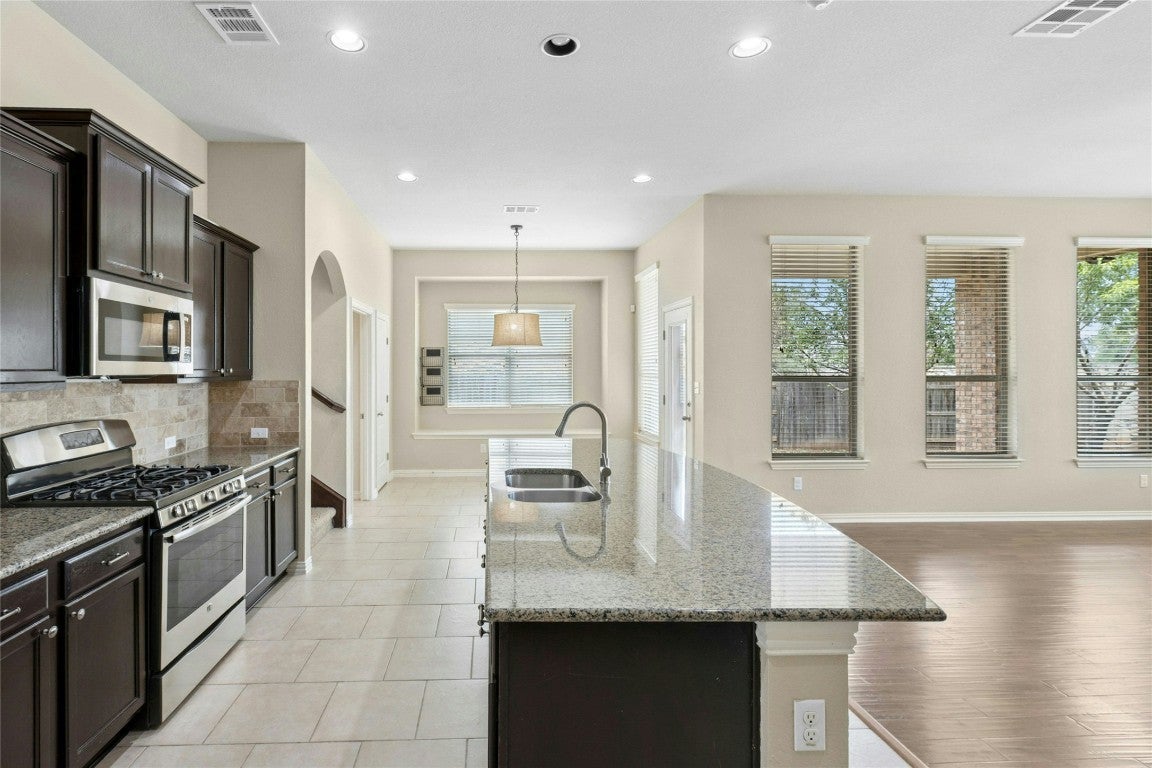 Stunning Home with 3-Car Garage, Multiple Living Spaces & Designer Touches! This spacious home truly has it all—featuring 3 living areas, 3.5 bathrooms, a dedicated office, and a media room. Thoughtfully designed with ample storage and oversized closets, it offers both functionality and comfort. Enjoy outdoor living on the covered patio, enclosed with a stone privacy fence, perfect for entertaining or relaxing. Inside, the open floor plan showcases upgraded flooring, elegant fixtures. The kitchen is a standout with granite countertops, stainless steel appliances, and a large center island that flows seamlessly into the family room—ideal for gatherings of any size.